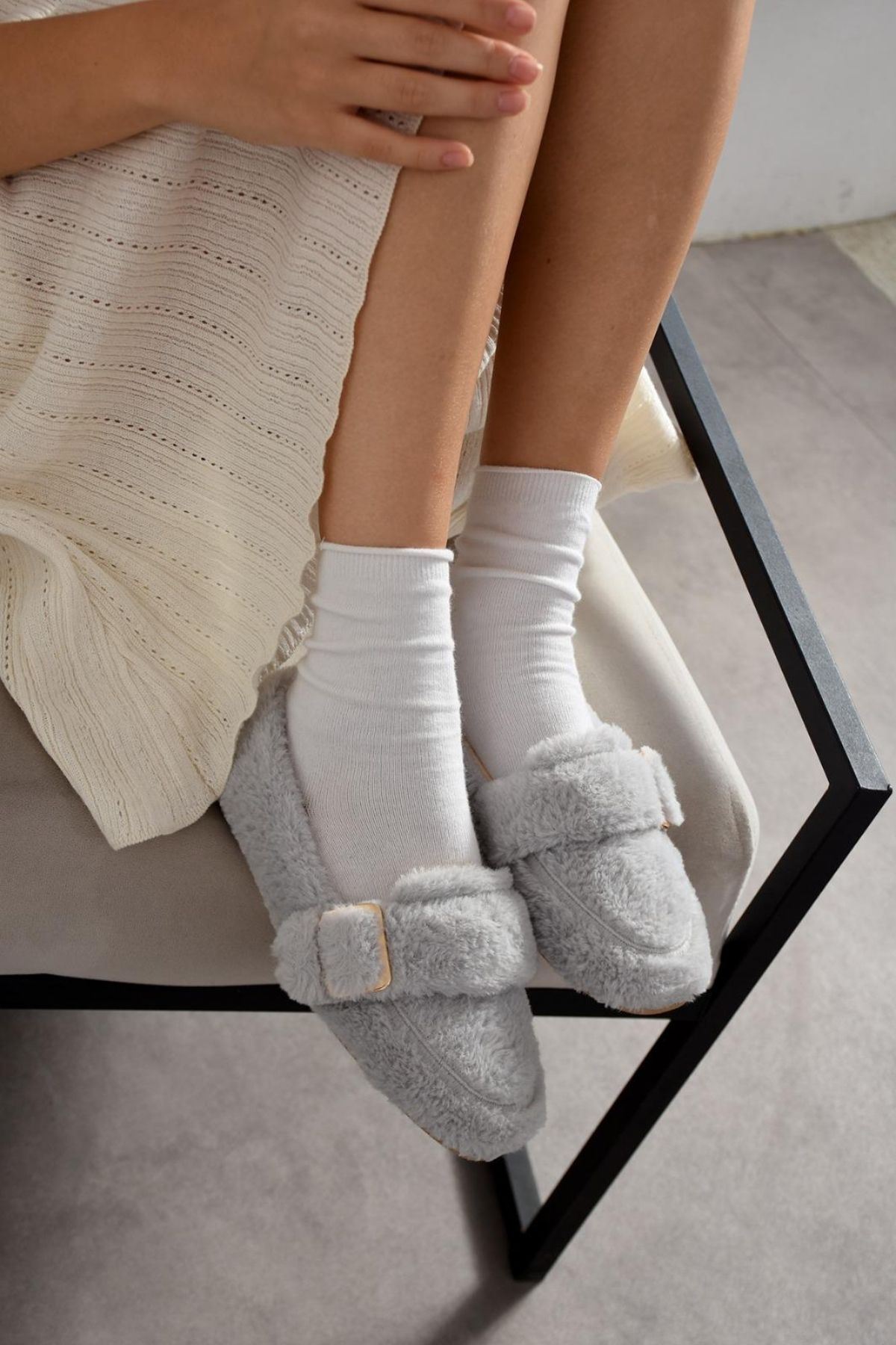 Yumuşacık dokusuyla konforu ve şıklığı bir araya getiren bu ev babeti, ev içi kullanımda sıcaklık ve rahatlık sunar. İç kısmında kullanılan sıcak tutan polibon astar, özellikle serin havalarda ayaklarınızı korur. Üst bölümdeki tokalı bant detayı ev stilinize zarif bir dokunuş katarken, hafif yapısı sayesinde gün boyu konfor sağlar. Sessiz tabanı ile her adımda huzurlu bir ev ortamı sunar.