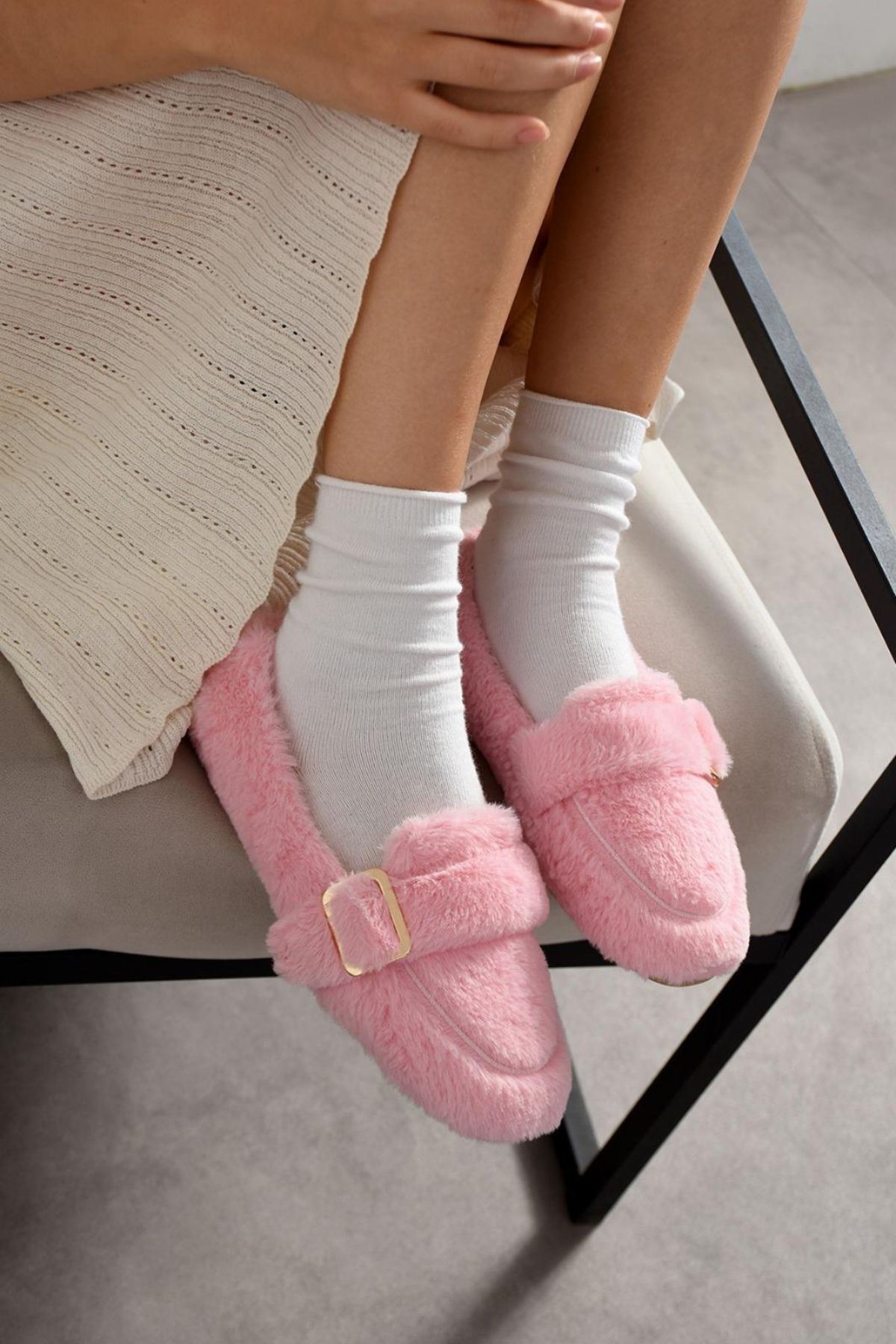 Yumuşacık dokusuyla konforu ve şıklığı bir araya getiren bu ev babeti, ev içi kullanımda sıcaklık ve rahatlık sunar. İç kısmında kullanılan sıcak tutan polibon astar, özellikle serin havalarda ayaklarınızı korur. Üst bölümdeki tokalı bant detayı ev stilinize zarif bir dokunuş katarken, hafif yapısı sayesinde gün boyu konfor sağlar. Sessiz tabanı ile her adımda huzurlu bir ev ortamı sunar.