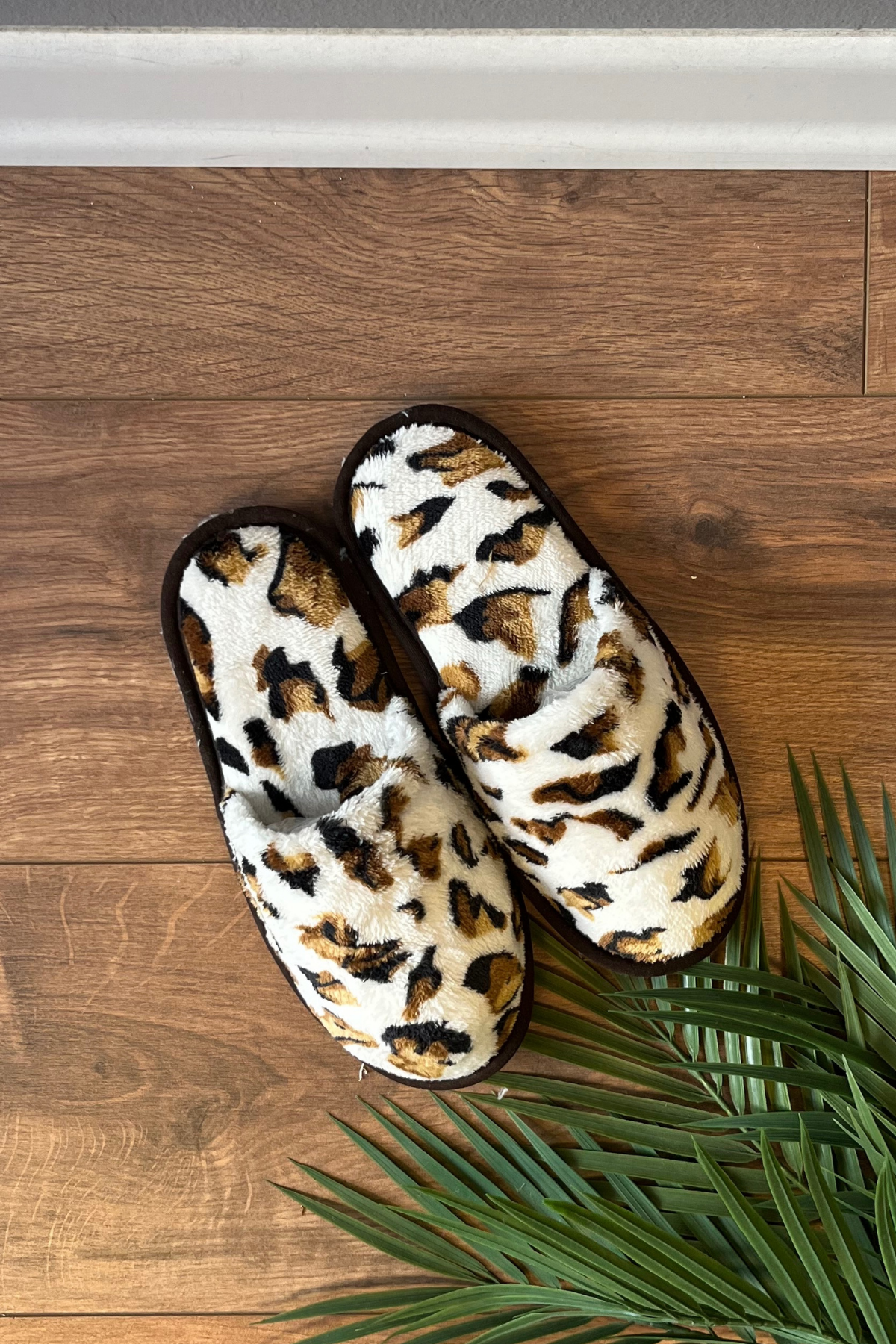 Alice Beyaz Leopar Desenli Önü Kapalı Ev Terliği