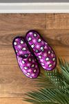 Alice Fuşya Kar Tanesi Baskı Desenli Önü Kapalı Ev Terliği