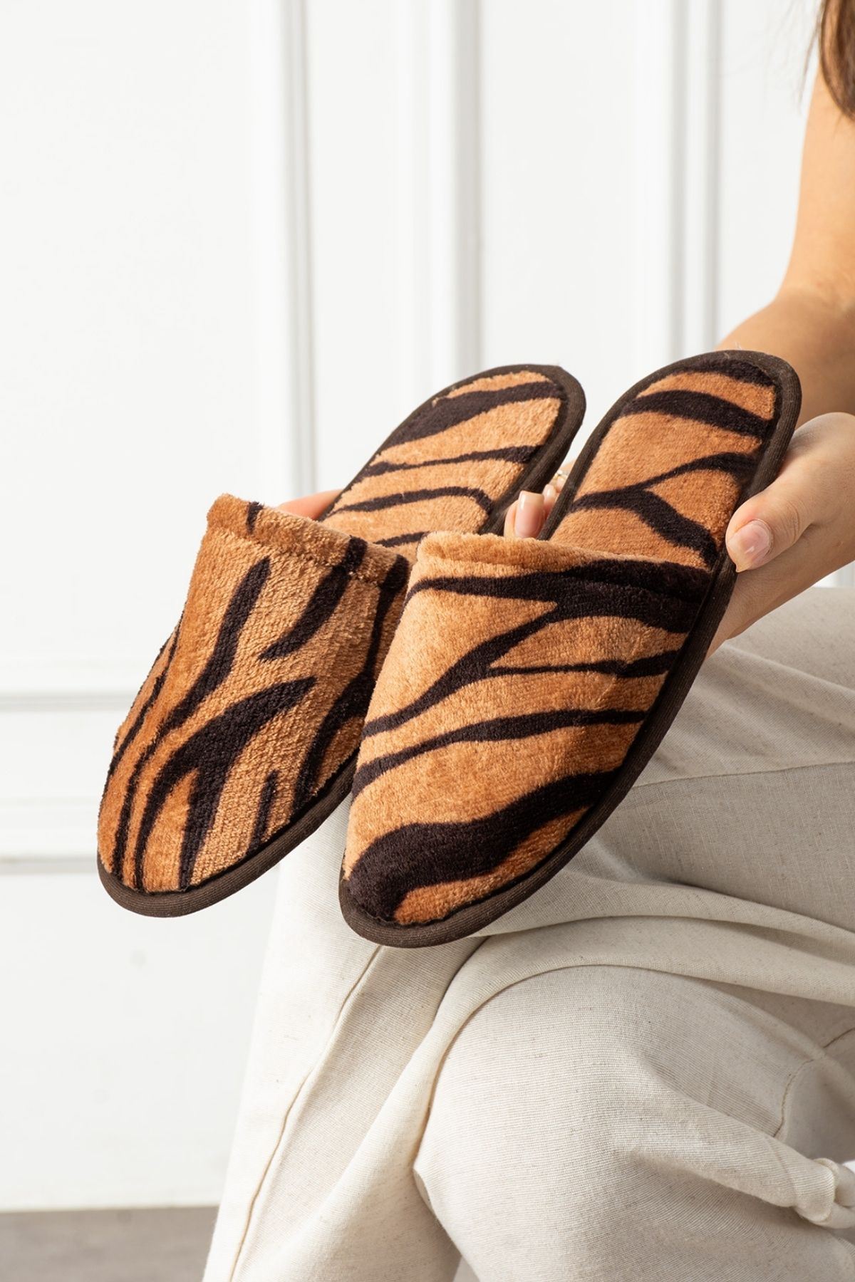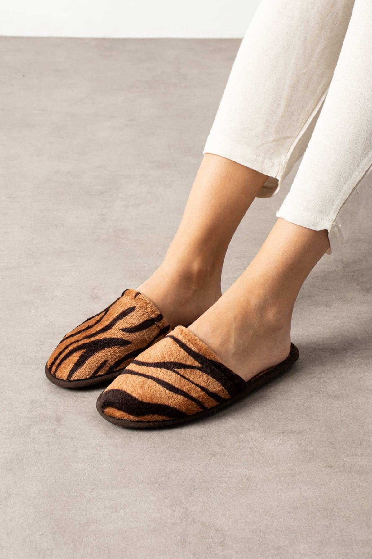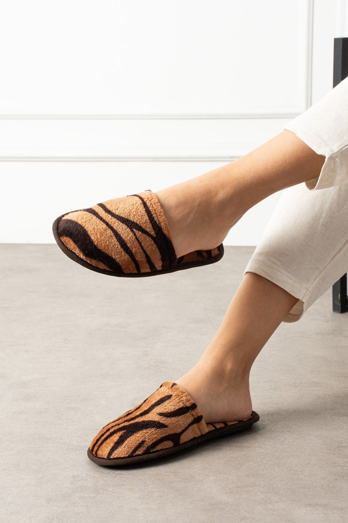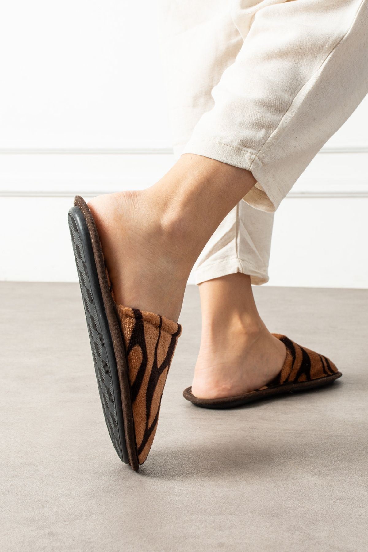 Alice Taba Siyah Yan Şerit Çizgili Önü Kapalı Ev Terliği
