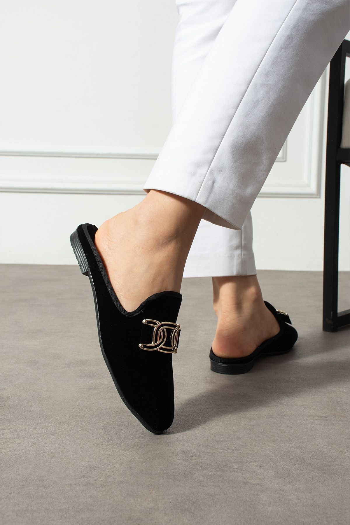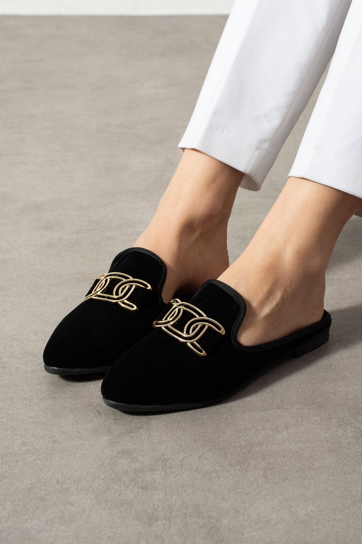 Alora Siyah Gold Tokalı Kadife Dokulu Elegant Nişan Çeyiz Bohça Misafir Ev Terliği