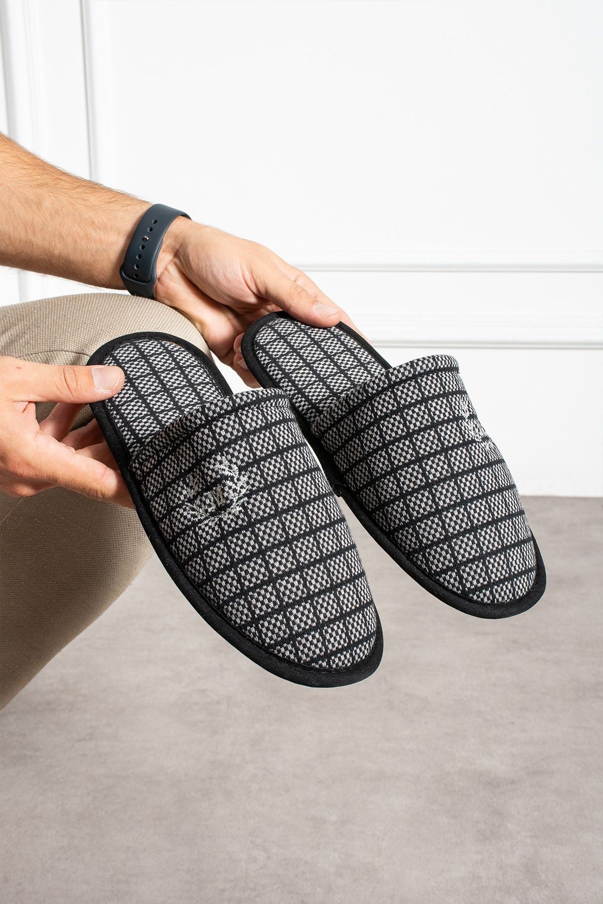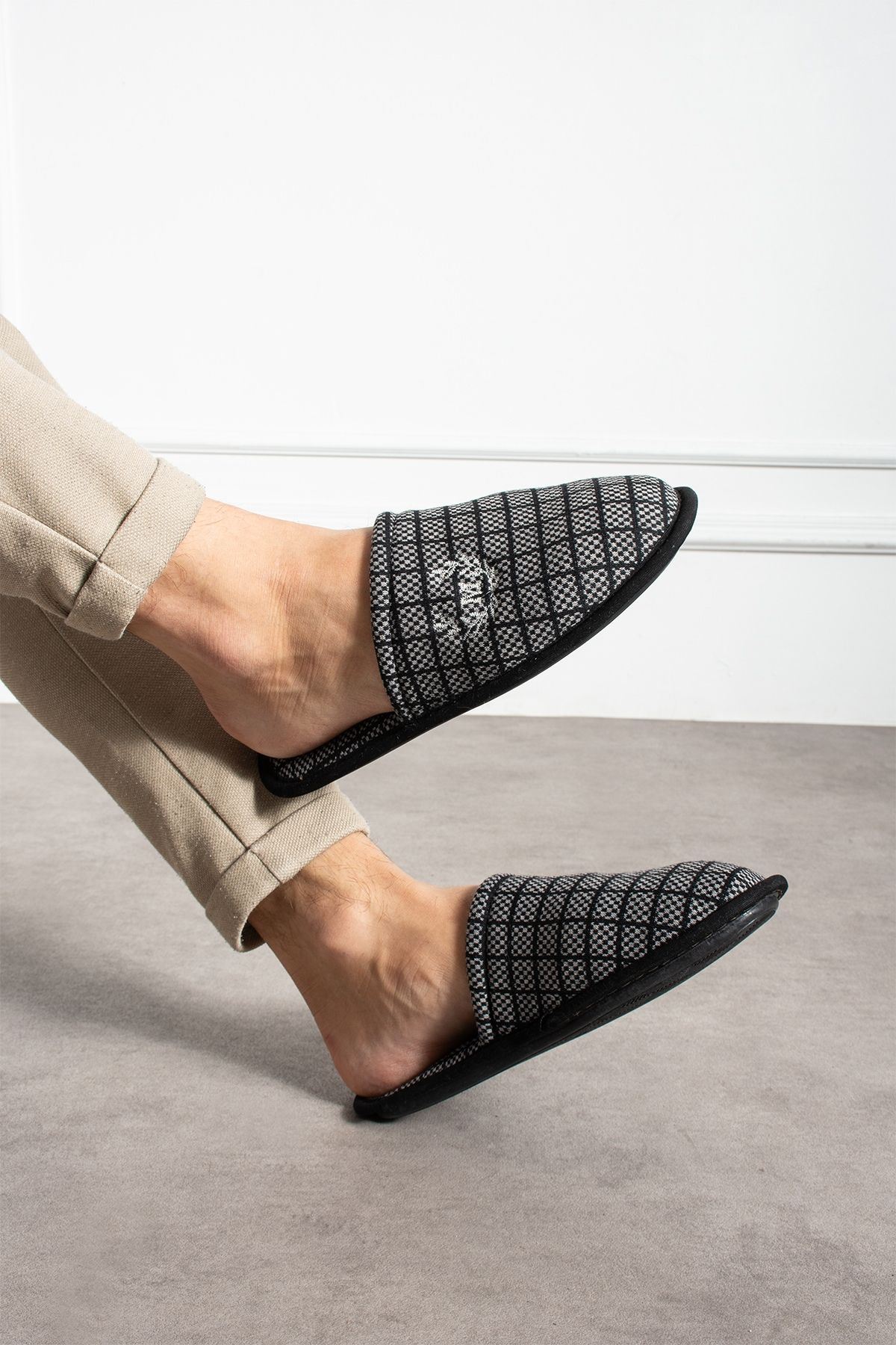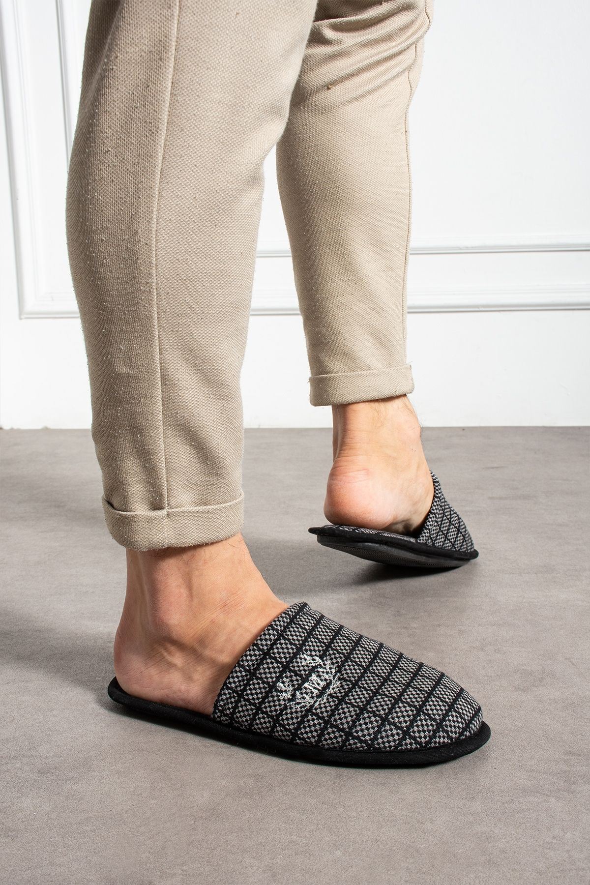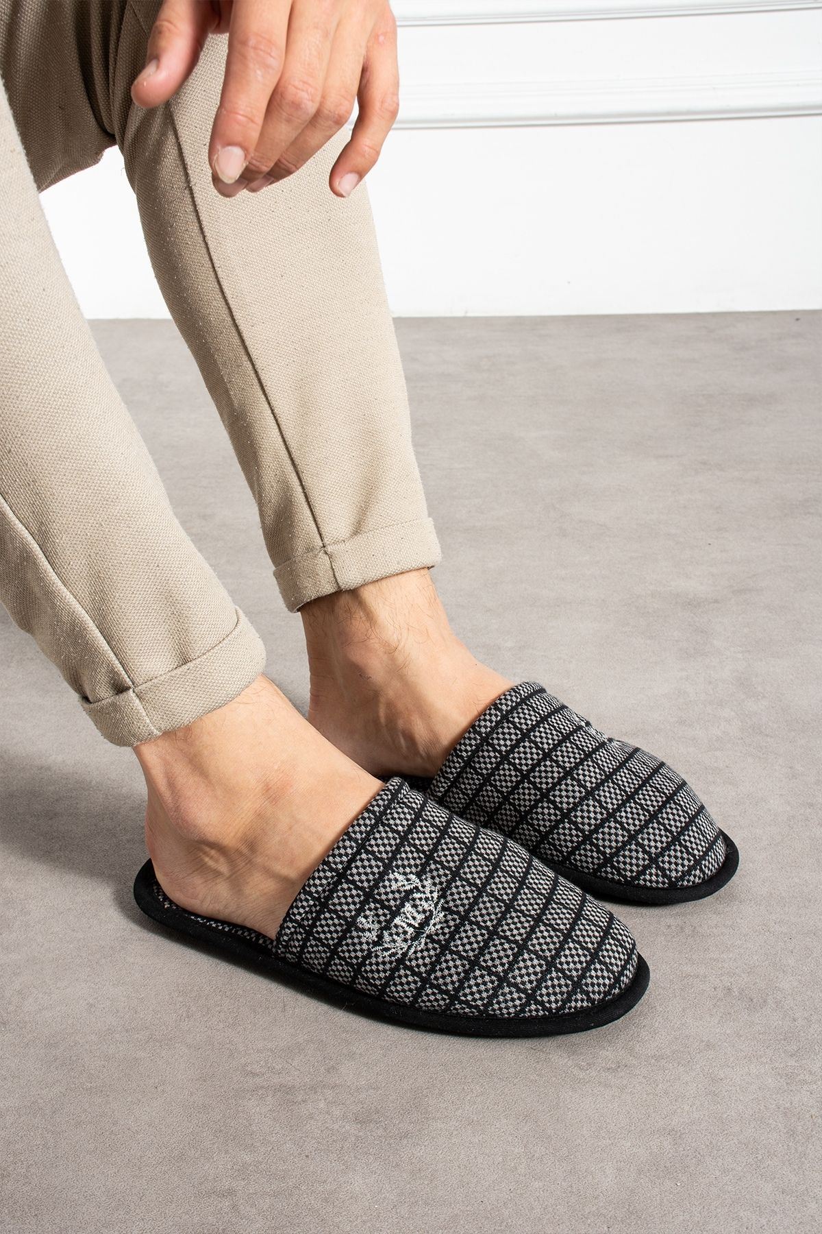 Astra Erkek Gri Kare Desenli Önü Kapalı Ev Terliği