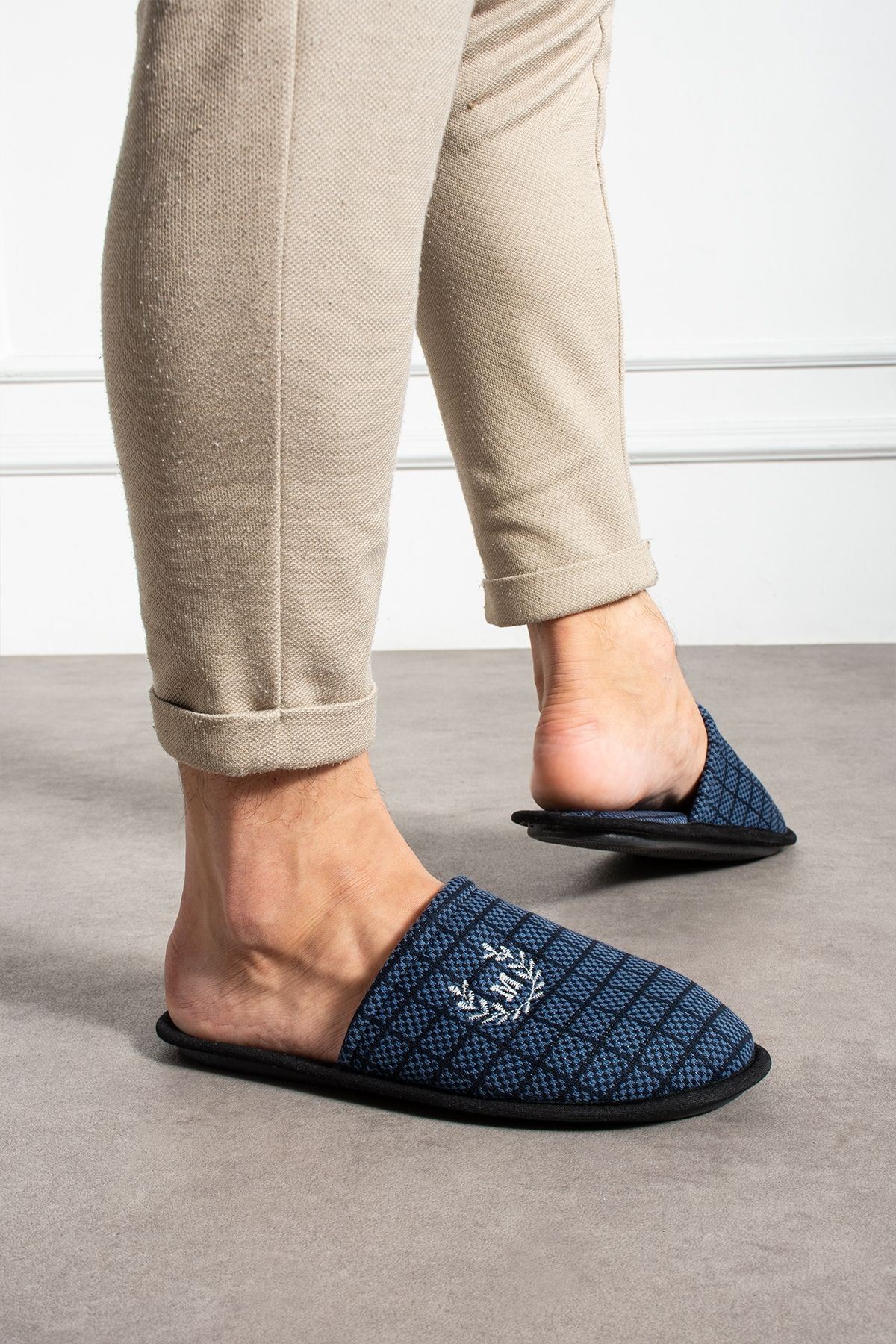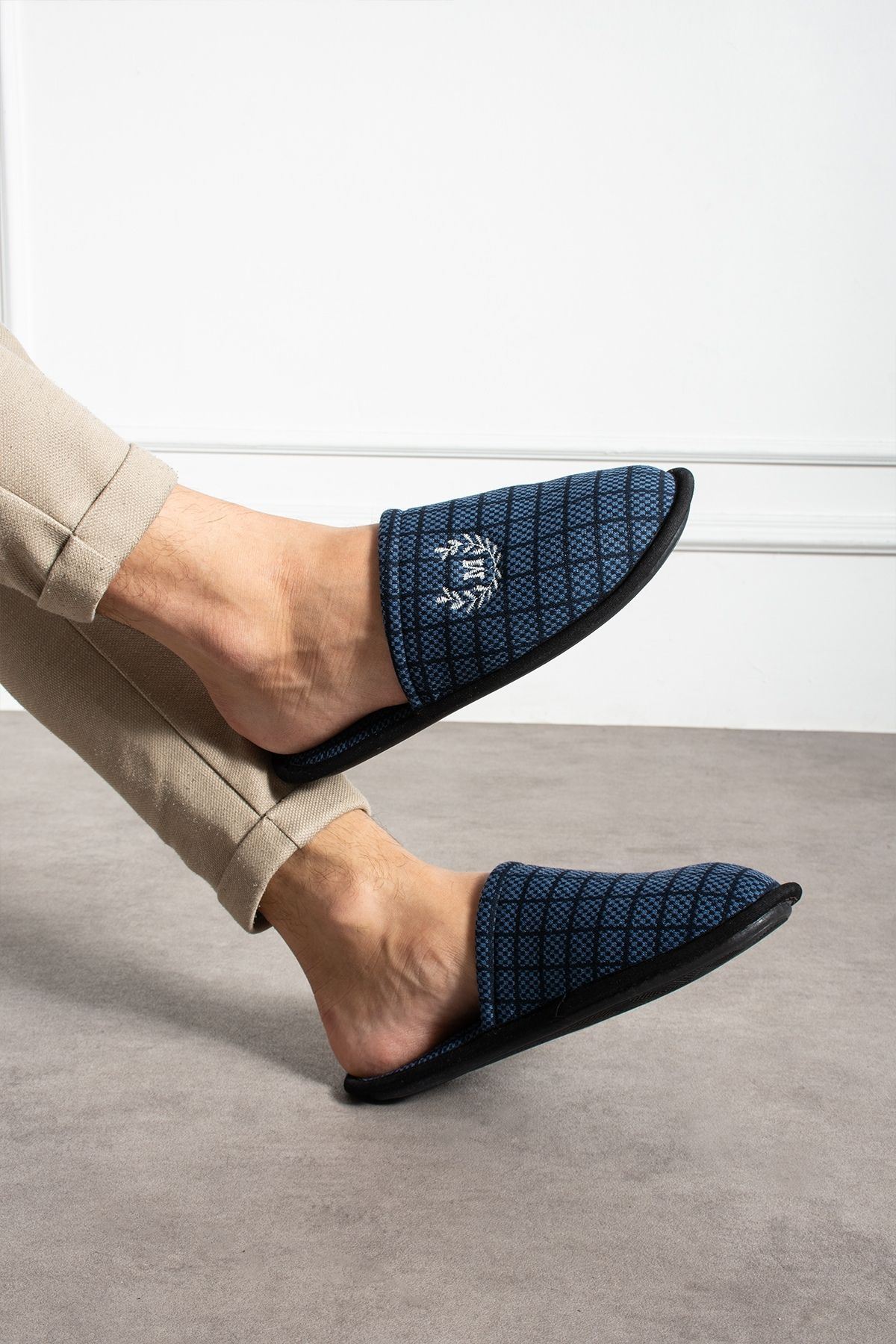 Astra Erkek Lacivert Kare Desenli Önü Kapalı Ev Terliği