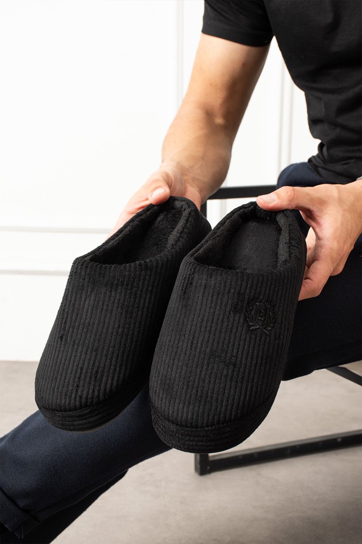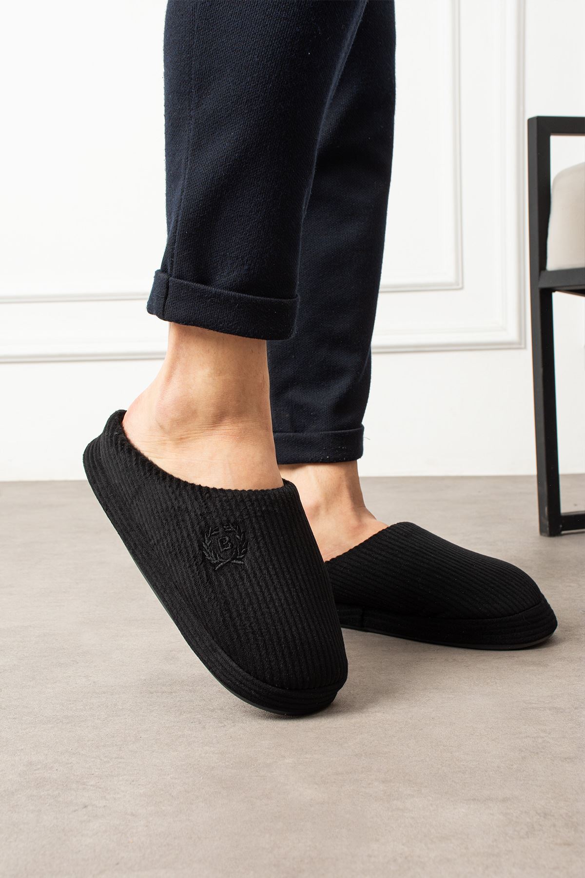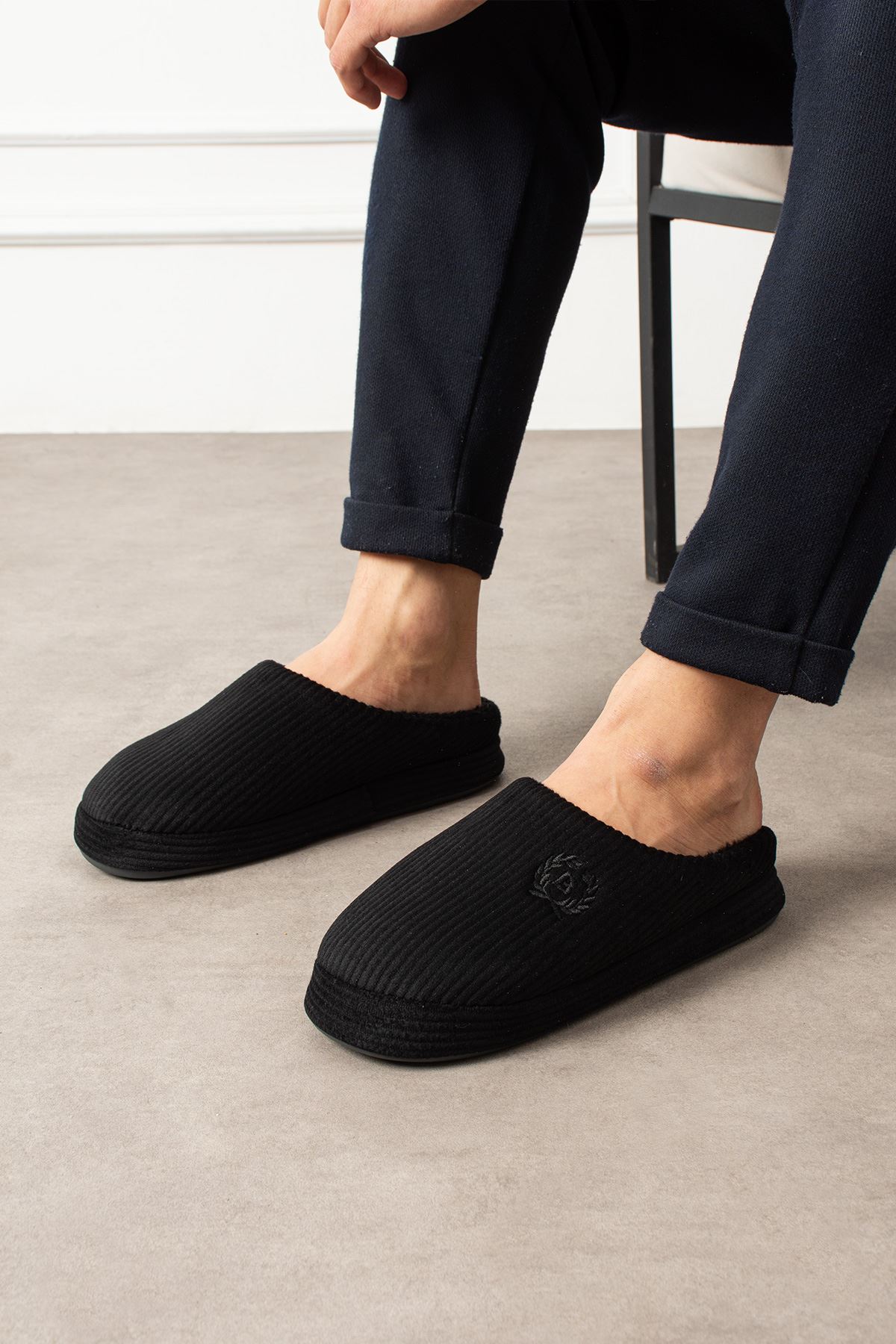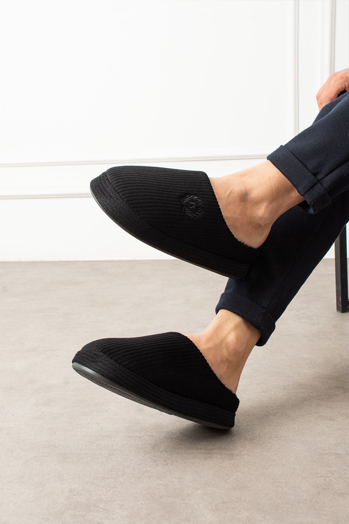 Atina Erkek Siyah Çizgi Şerit Desenli Önü Kapalı Ev Terliği