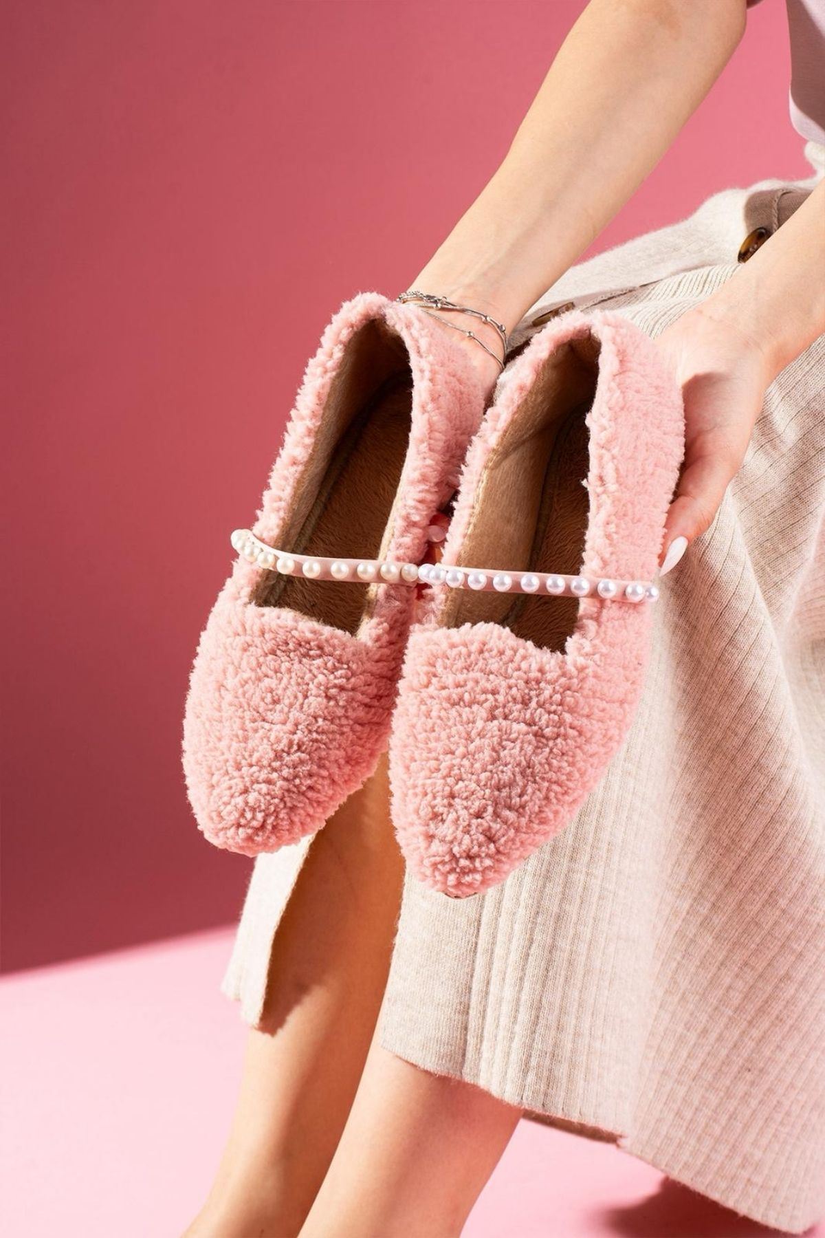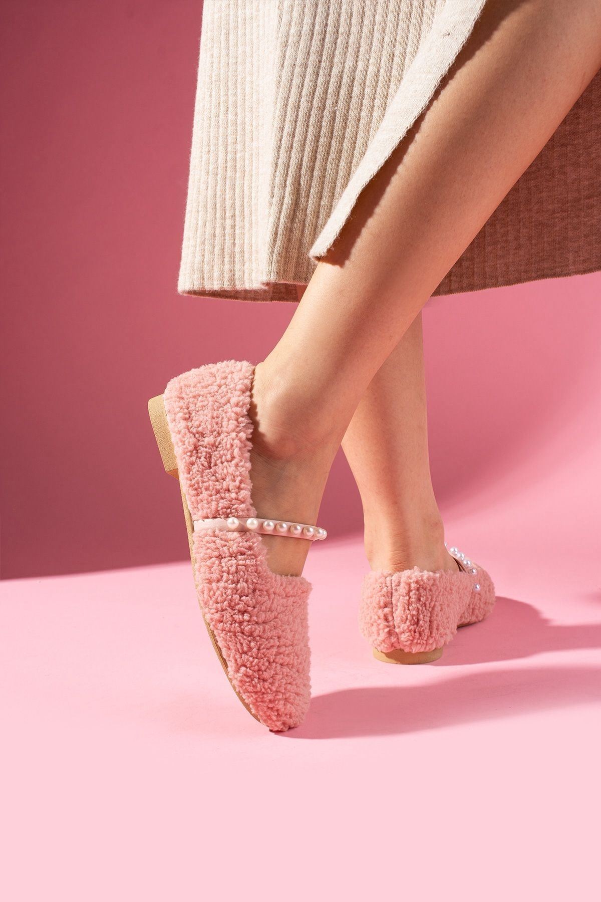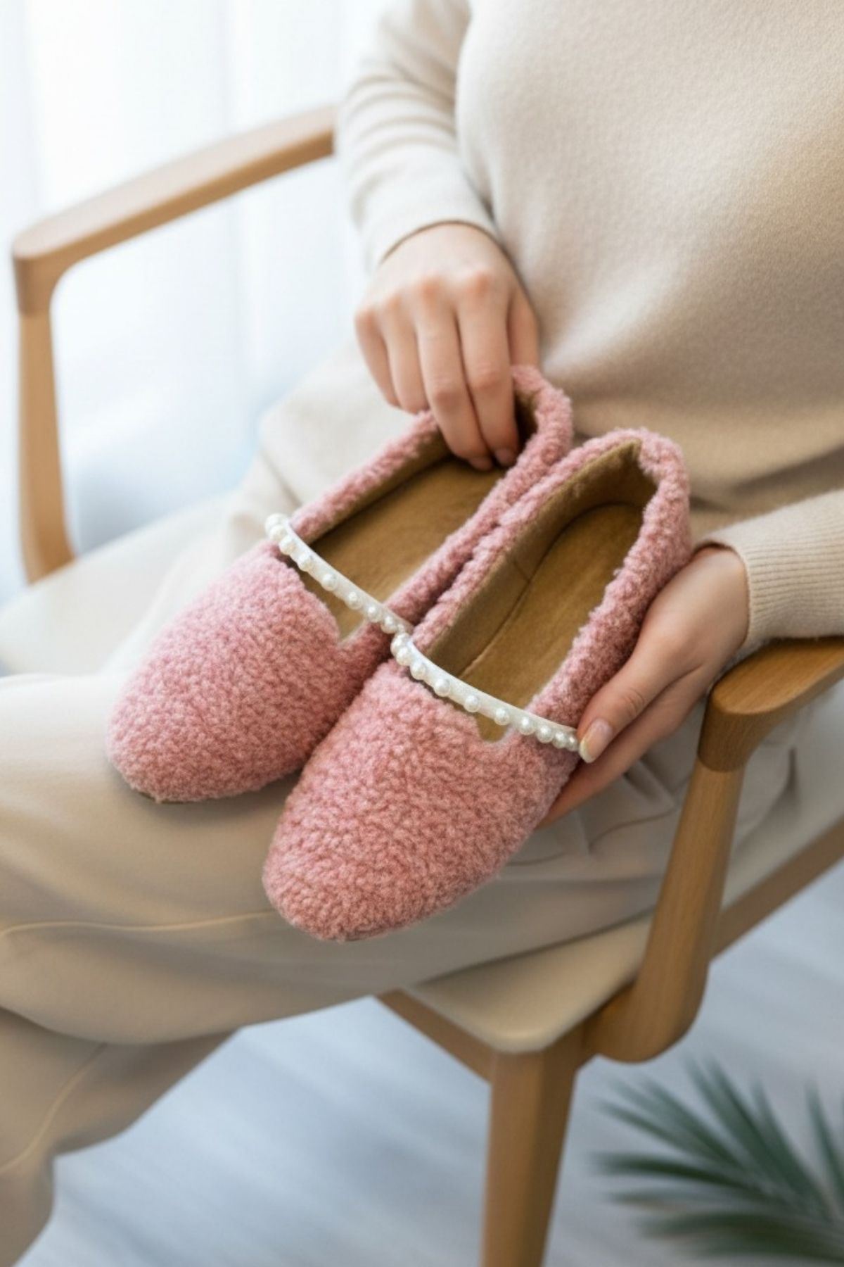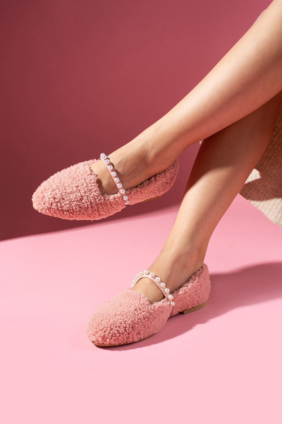 Holly Pudra Kapitone Desenli Pelüş Önü Kapalı Ev Terliği