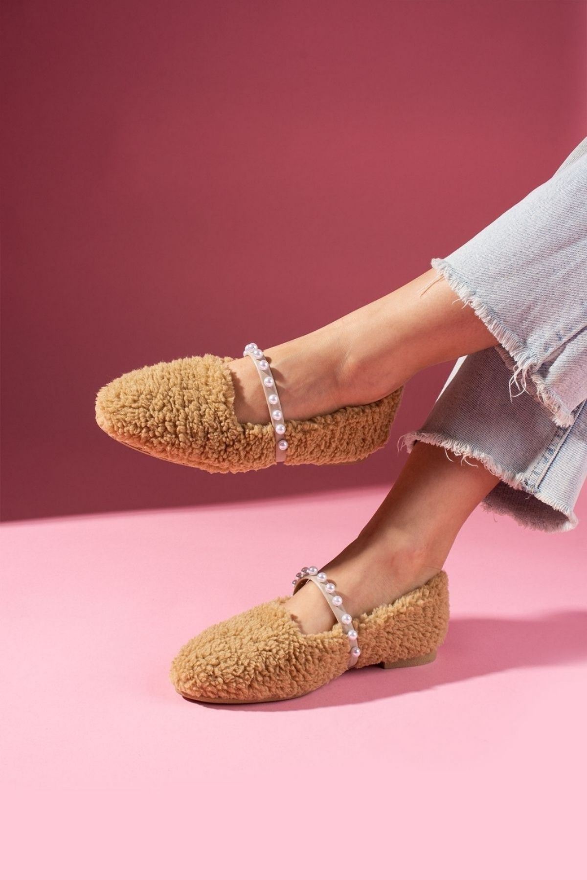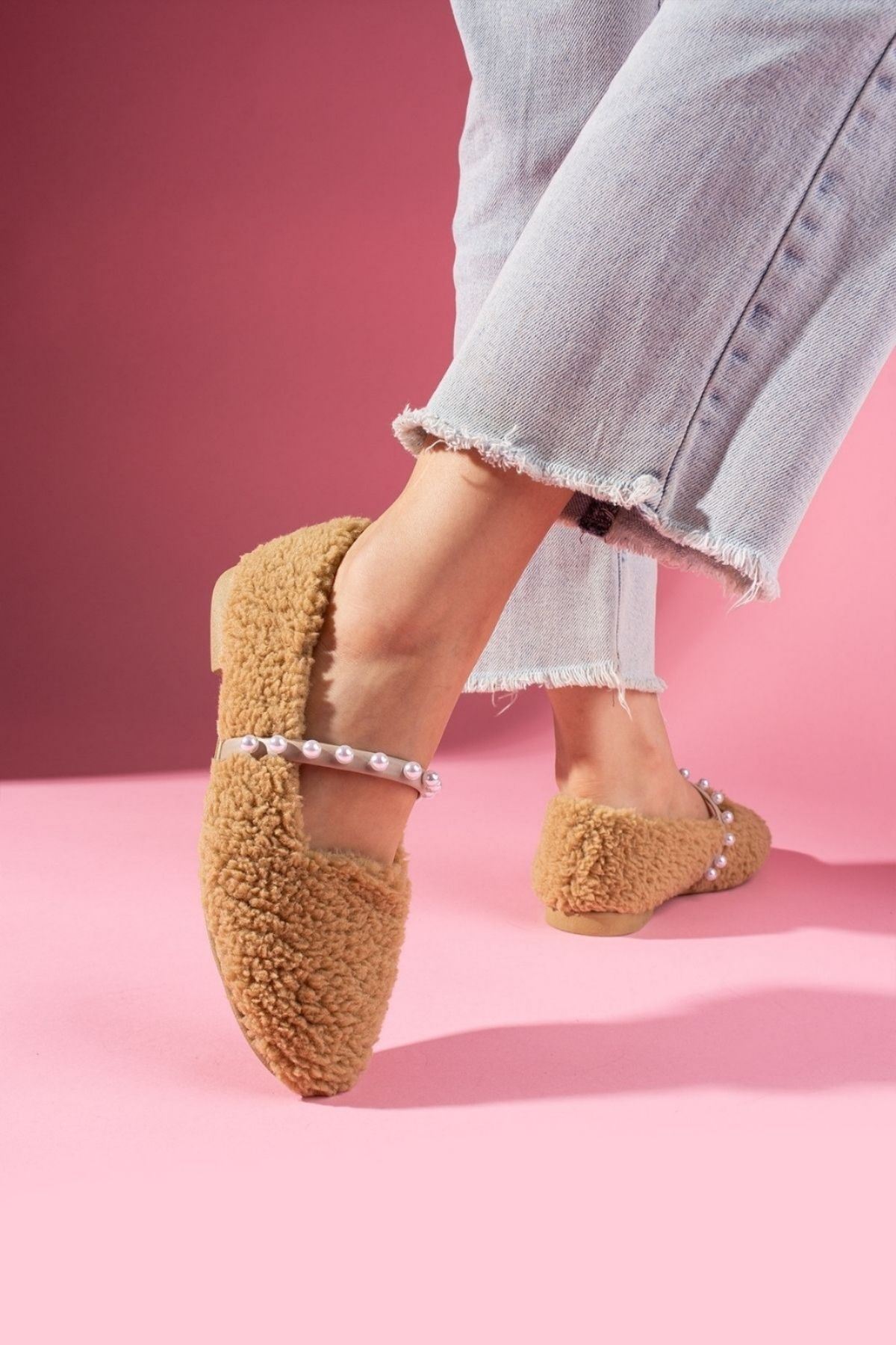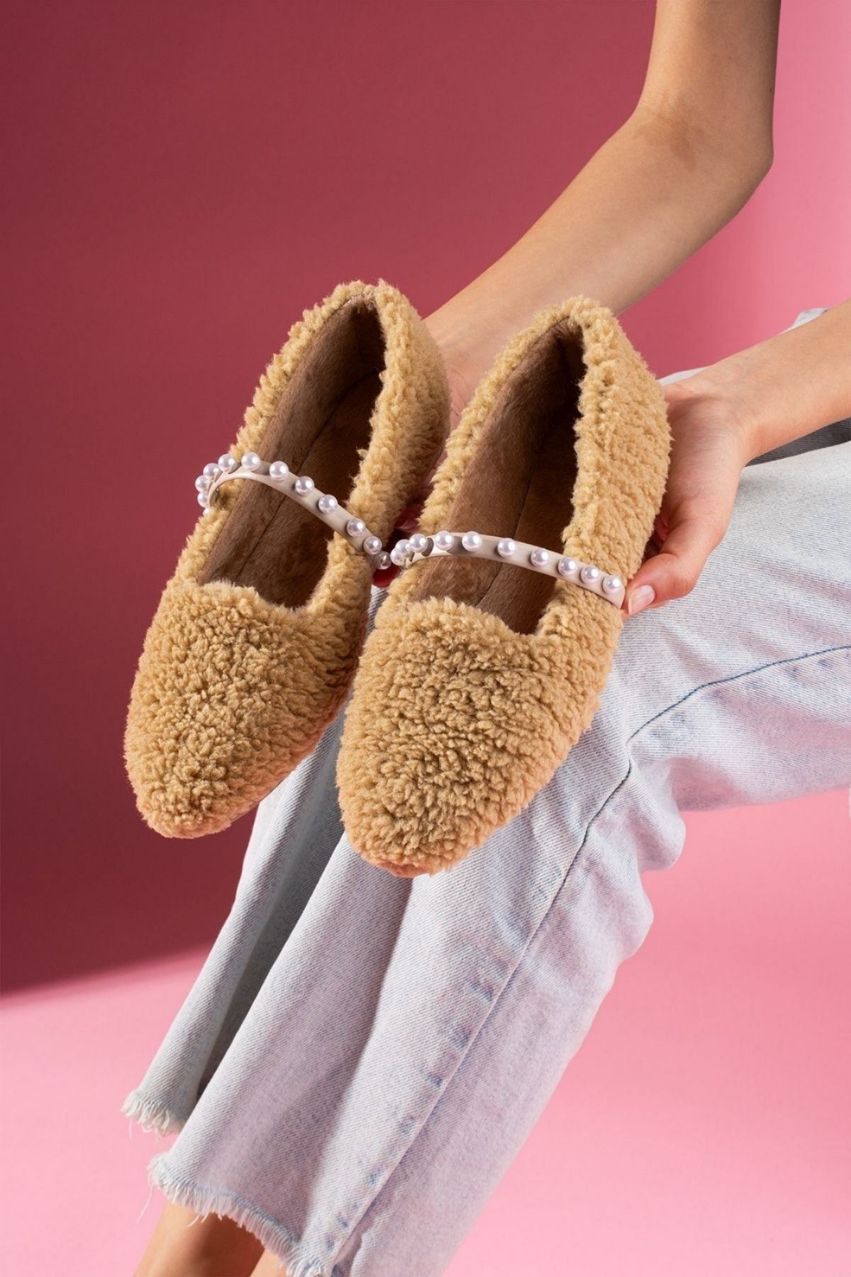Bekin Bej Yanı Açık Arkası Fiyonk Detaylı Örgü Triko Babet
