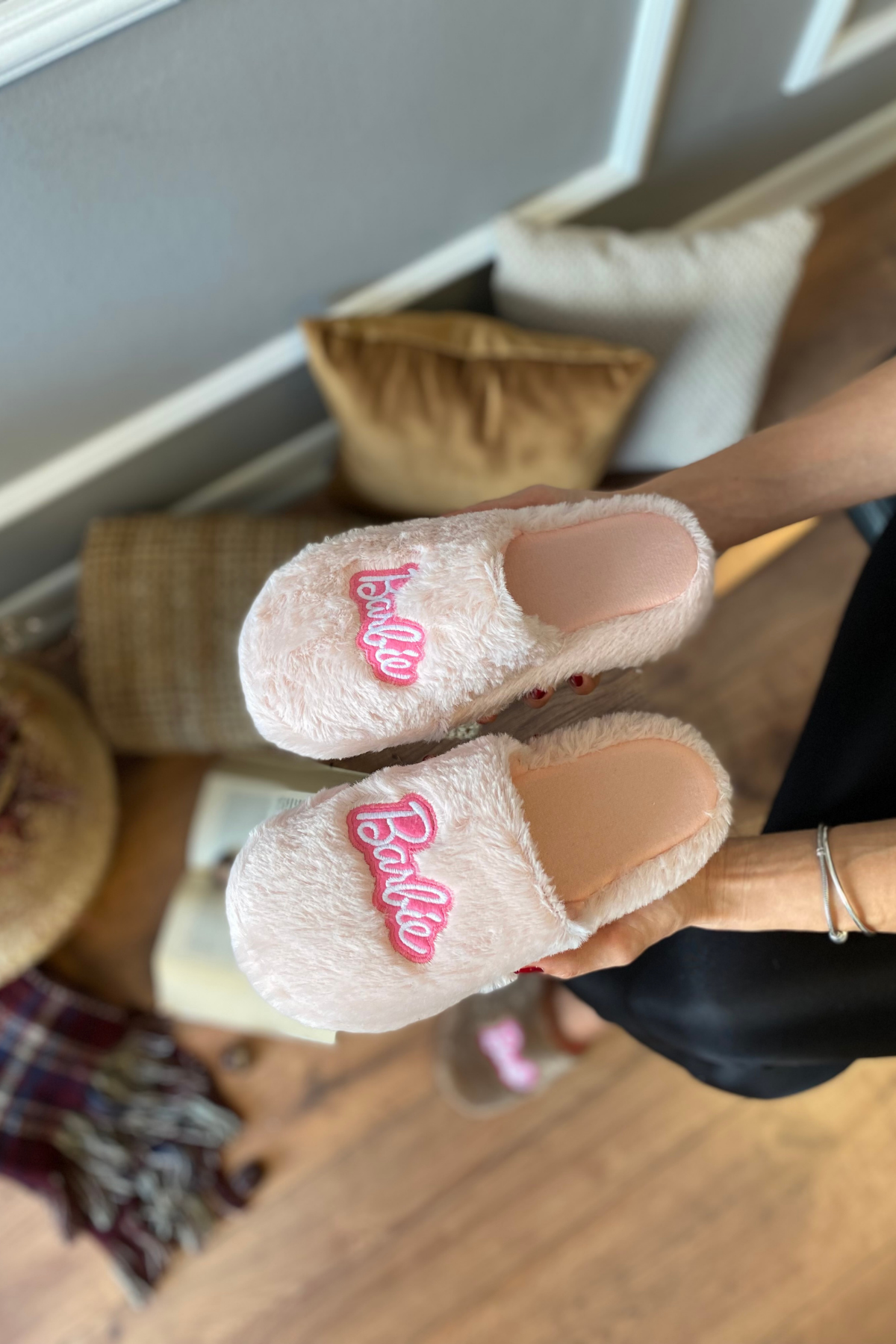 Barbara Pudra Yazı Nakışlı Tüylü Önü Kapalı Ev Terliği