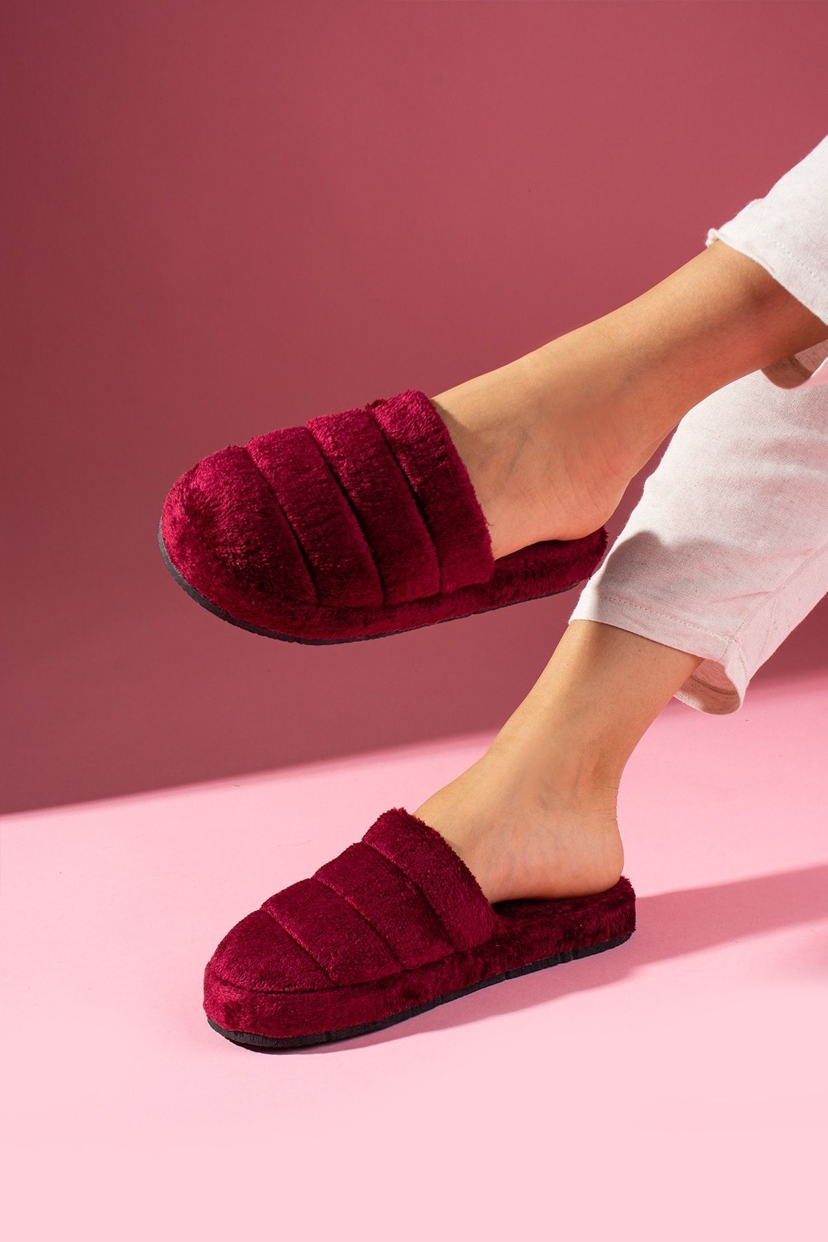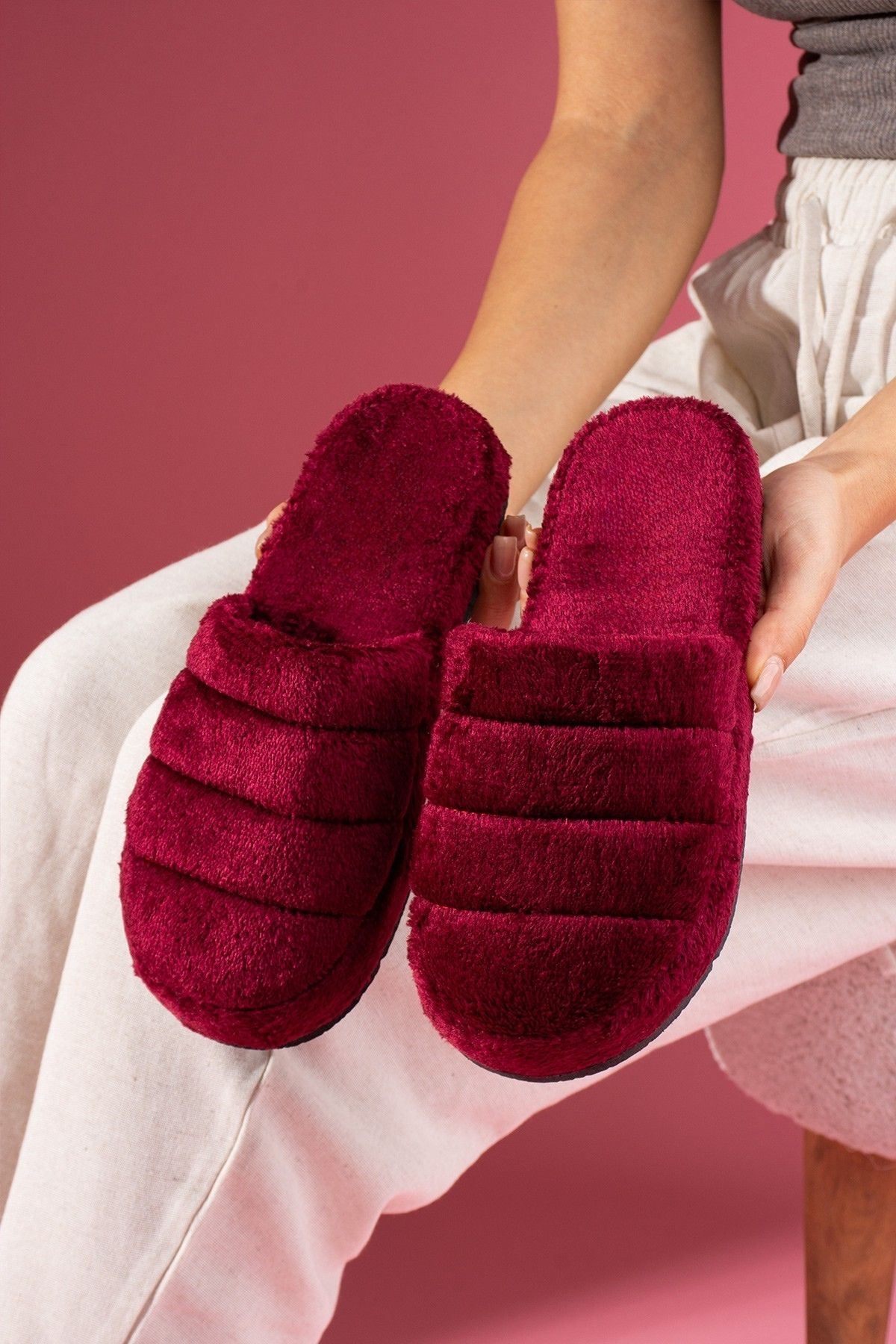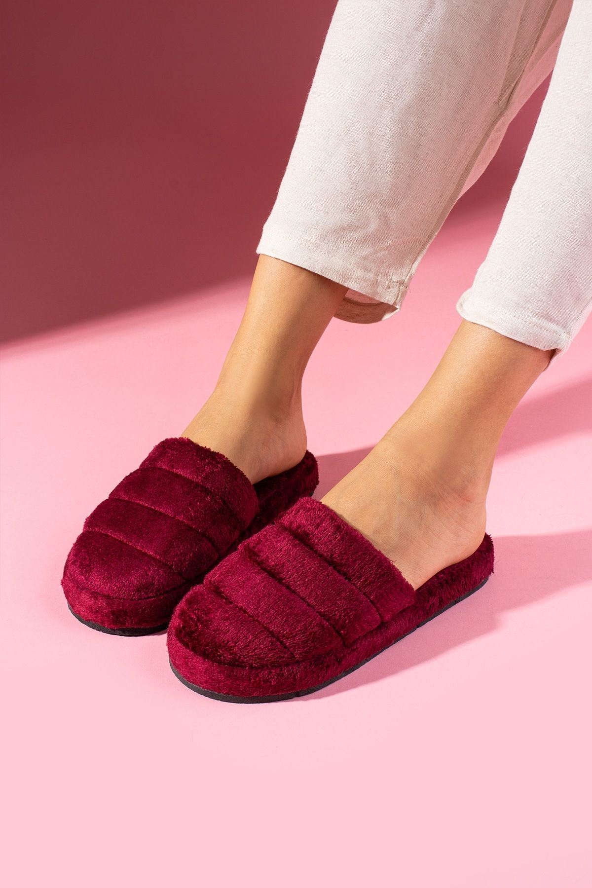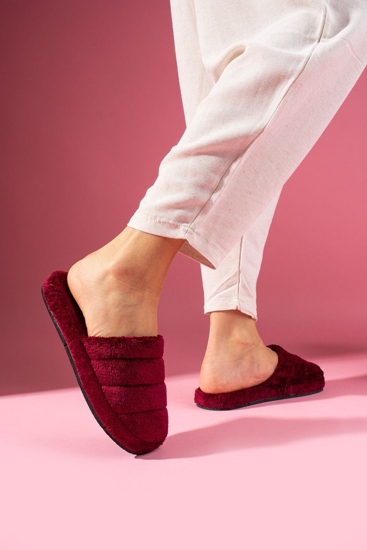 Bony Bordo Önü Kapalı Sarma Tabanlı Ev Terliği