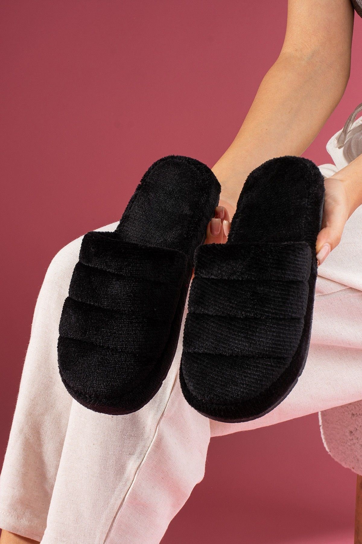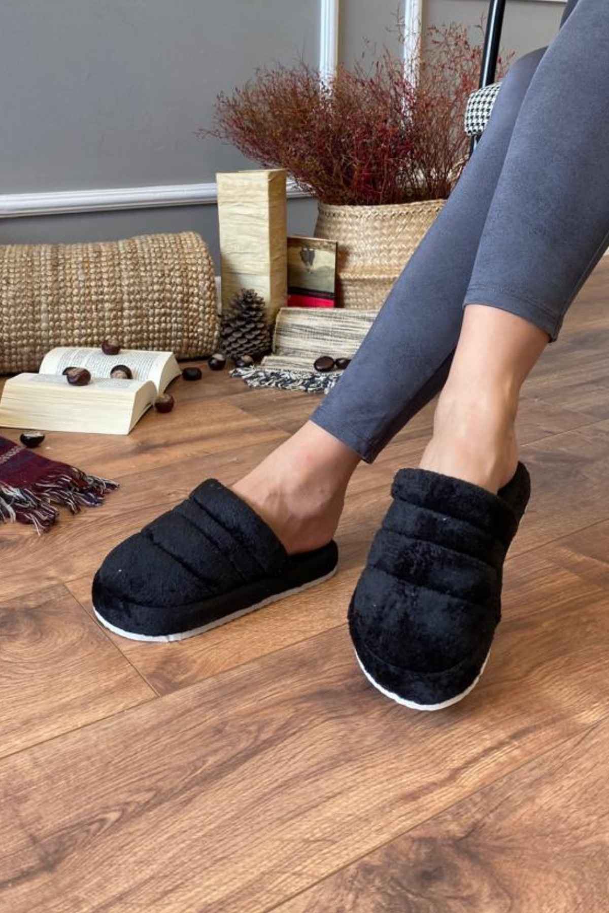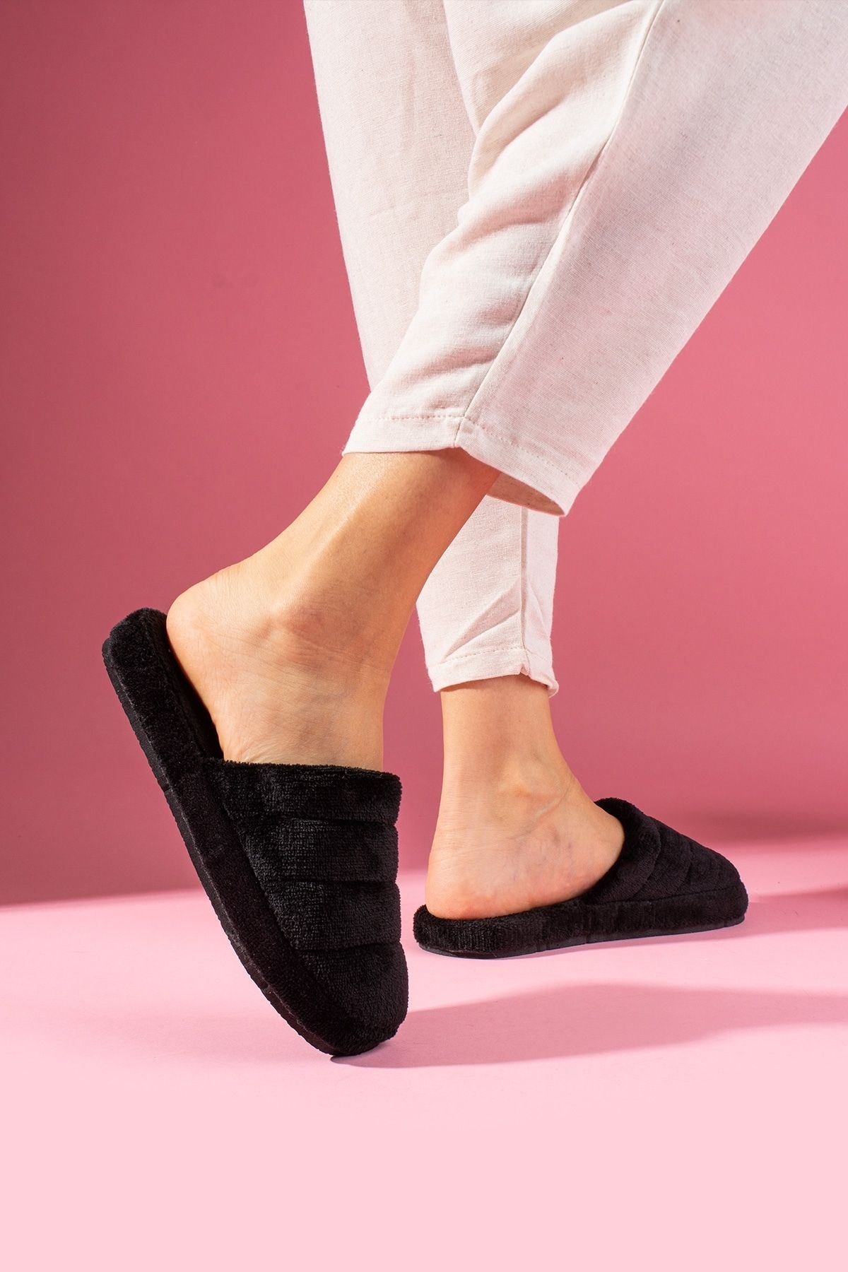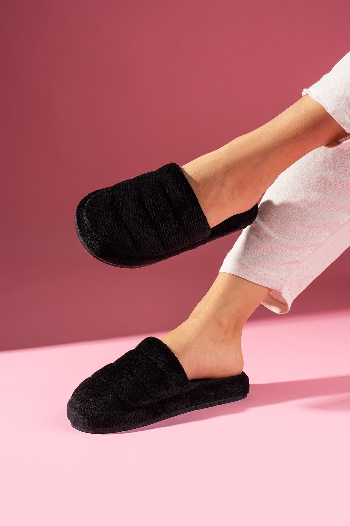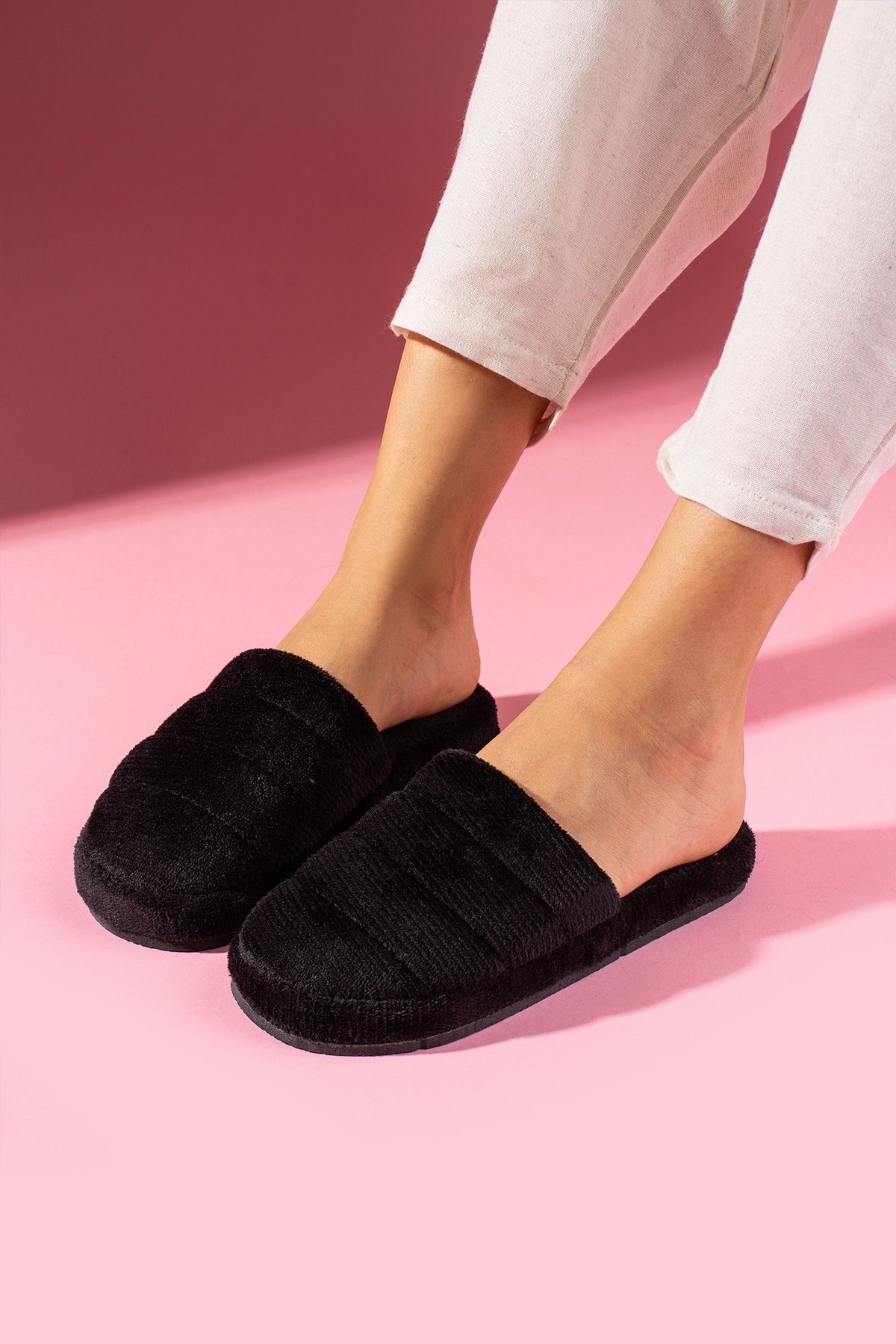 Bony Siyah Önü Kapalı Sarma Tabanlı Ev Terliği