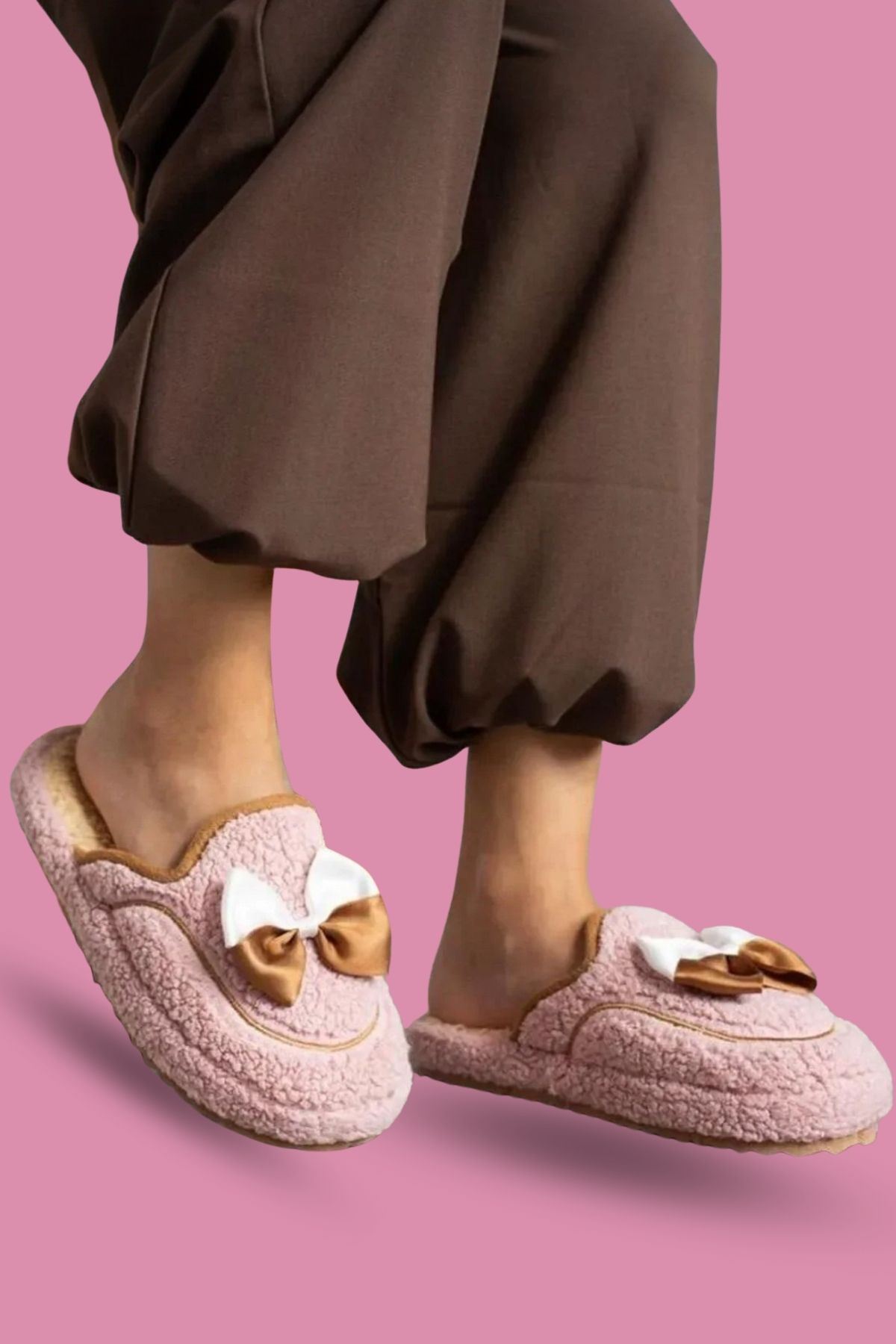 Curry Pudra Fiyonklu Saraç Detaylı Sessiz Taban Ev Terliği