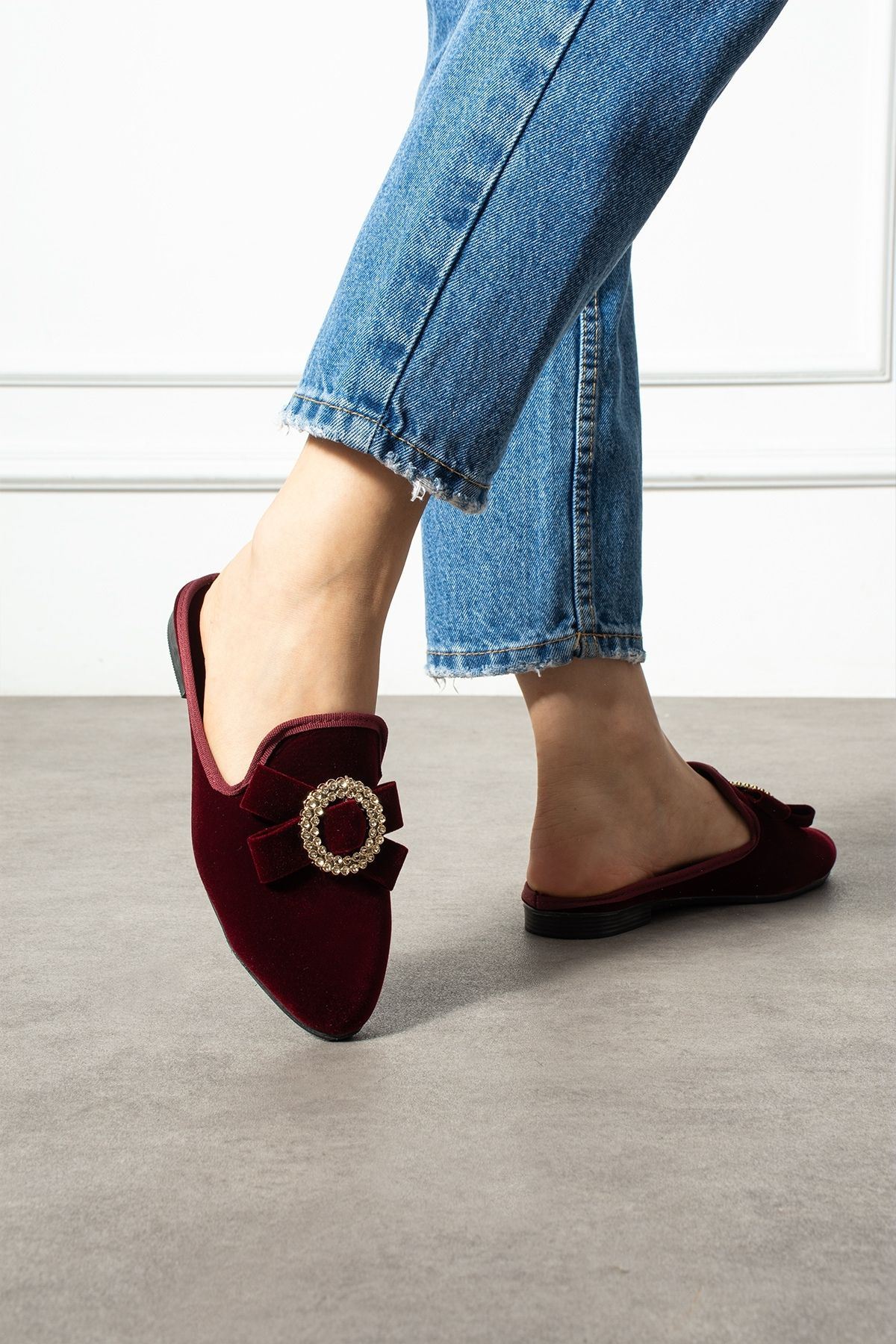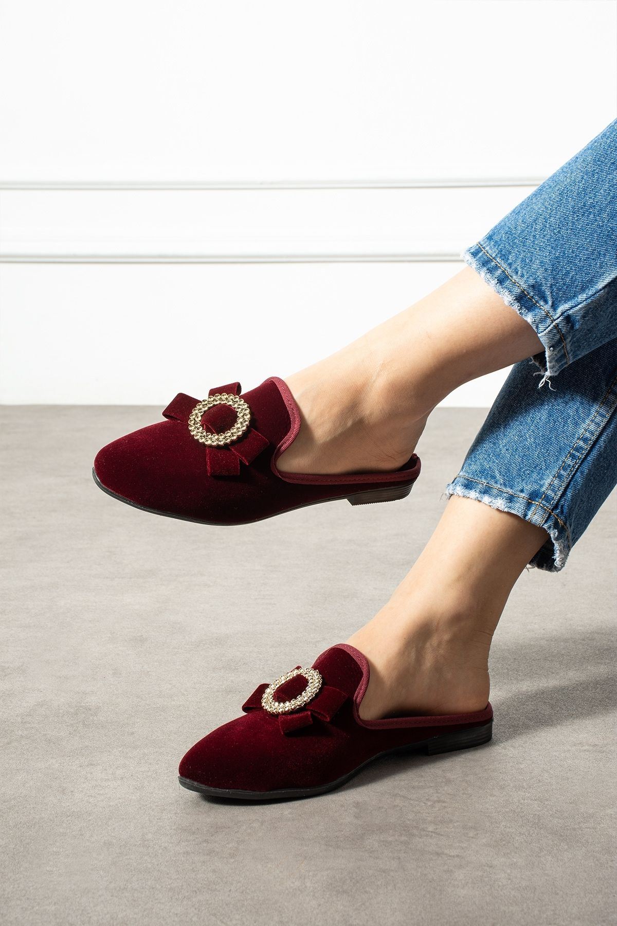 Dafi Bordo Gold Tokalı Kadife Dokulu Elegant Nişan Çeyiz Bohça Misafir Ev Terliği