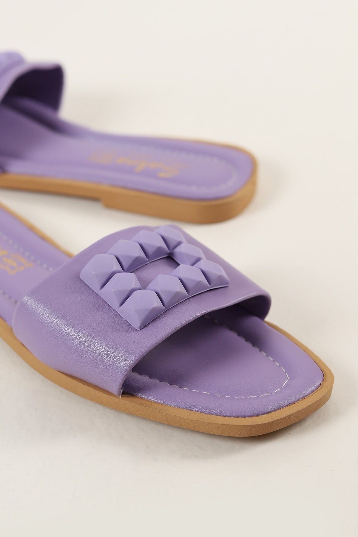 Daglıs Lila Dikdörtgen Plastik Tokalı Tek Bantlı Terlik