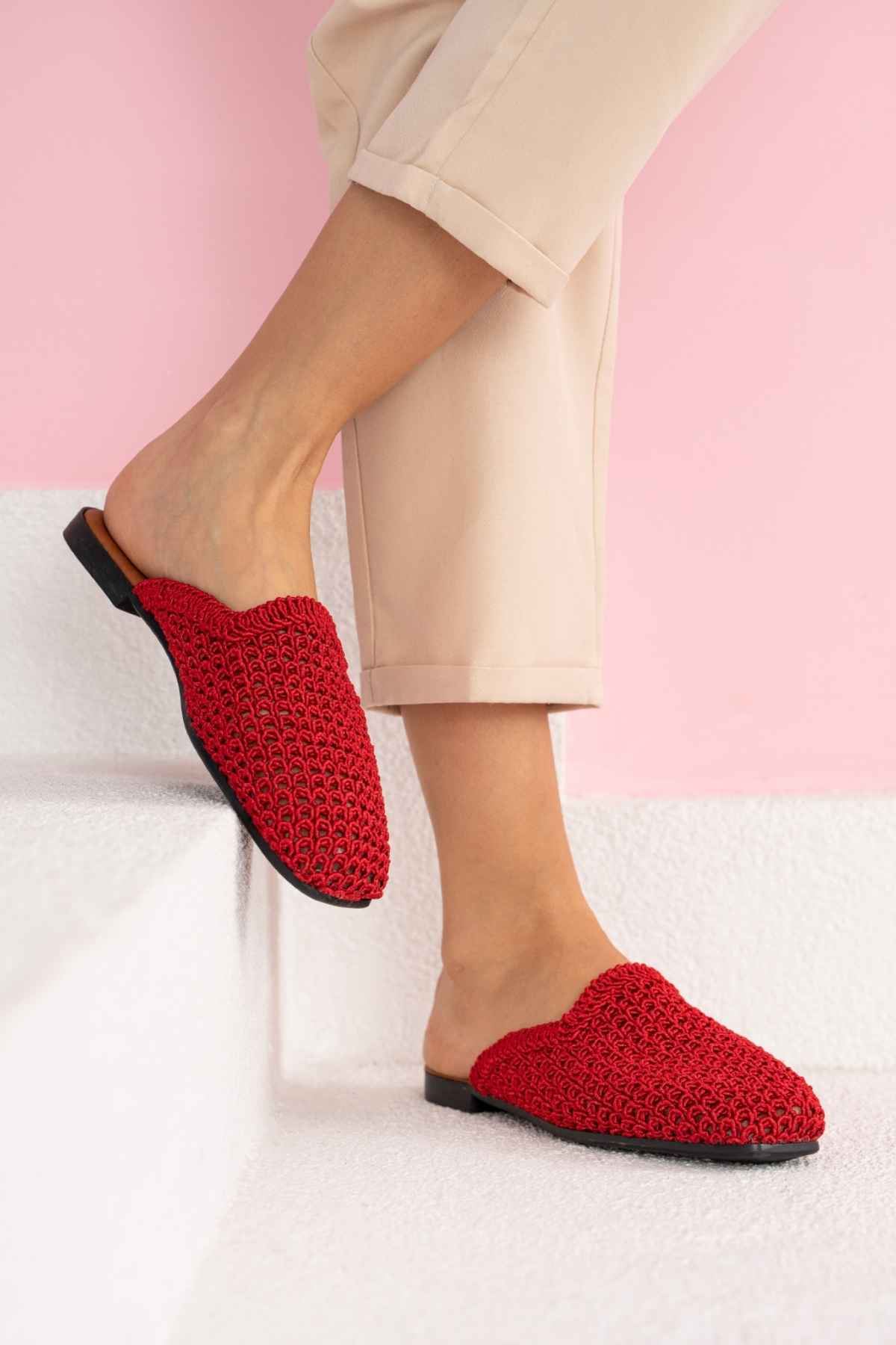Darian Kırmızı Kare İşleme Detaylı Önü Kapalı Terlik