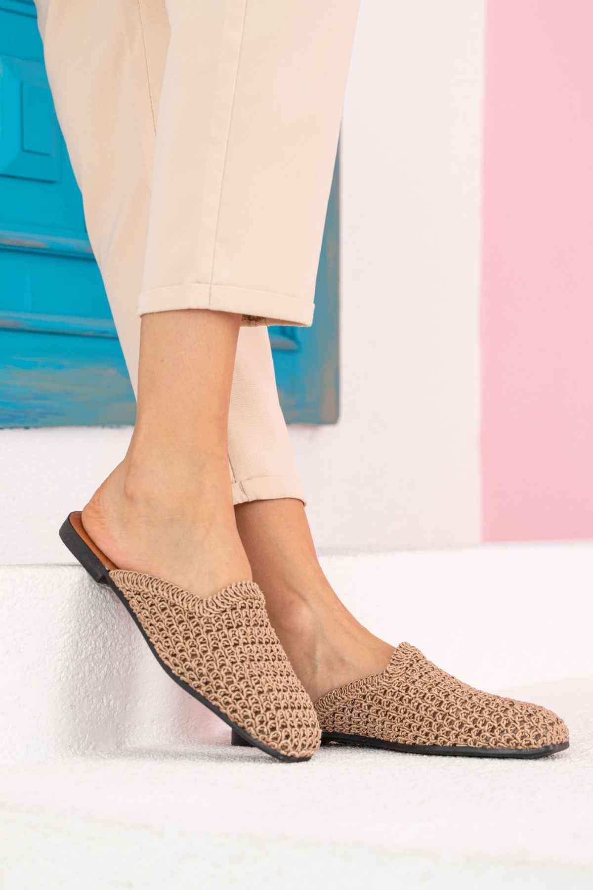 Darian Vizon Kare İşleme Detaylı Önü Kapalı Terlik