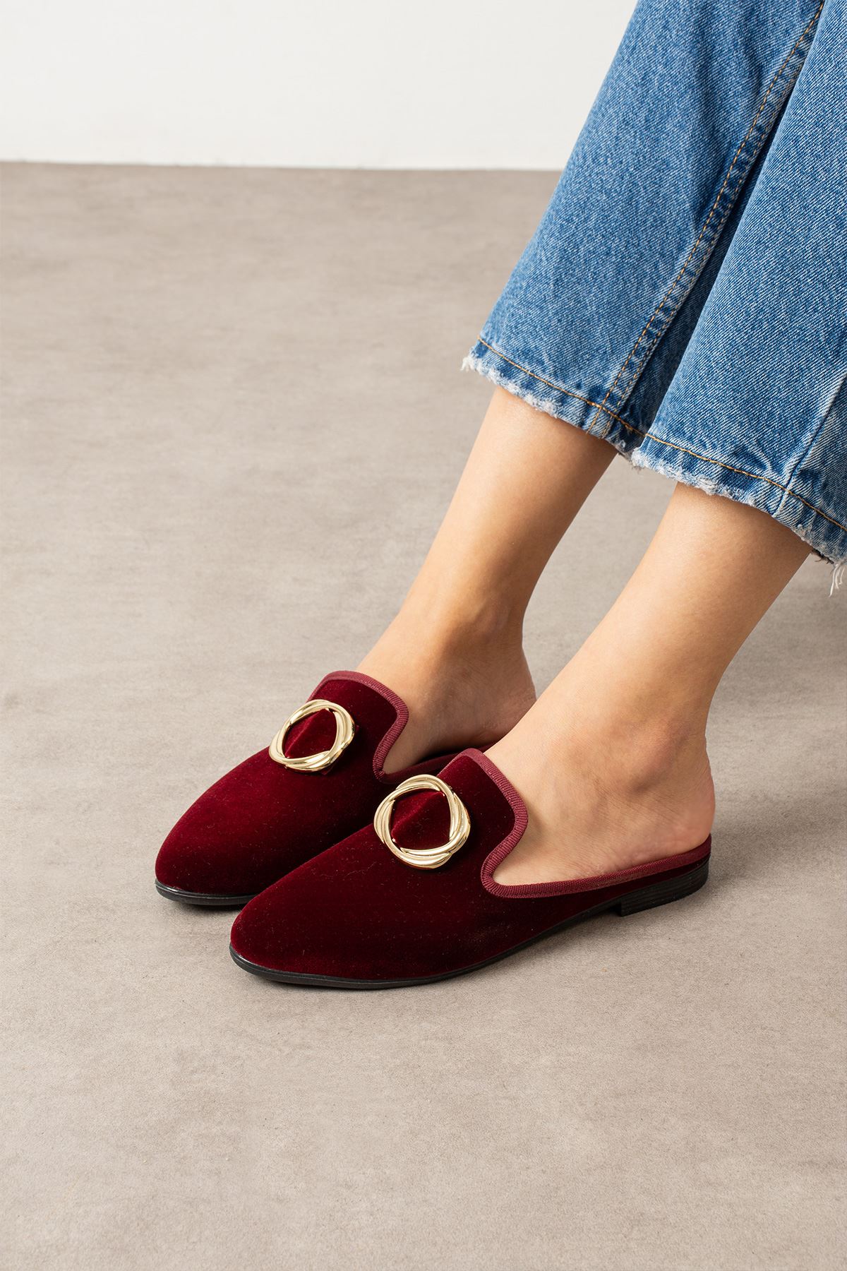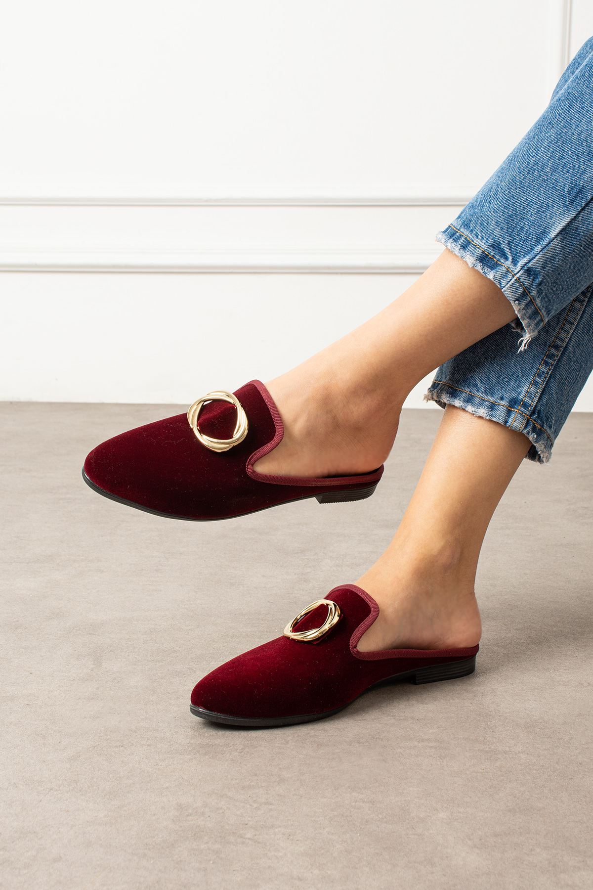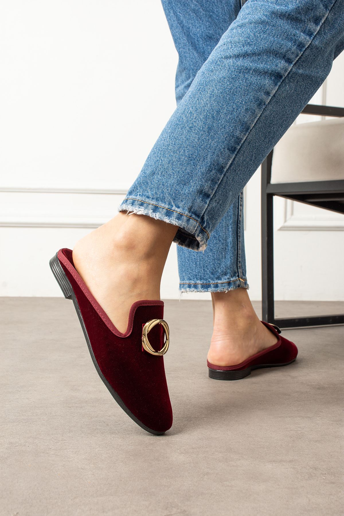 Dorya Bordo Gold Tokalı Kadife Dokulu Elegant Nişan Çeyiz Bohça Misafir Ev Terliği