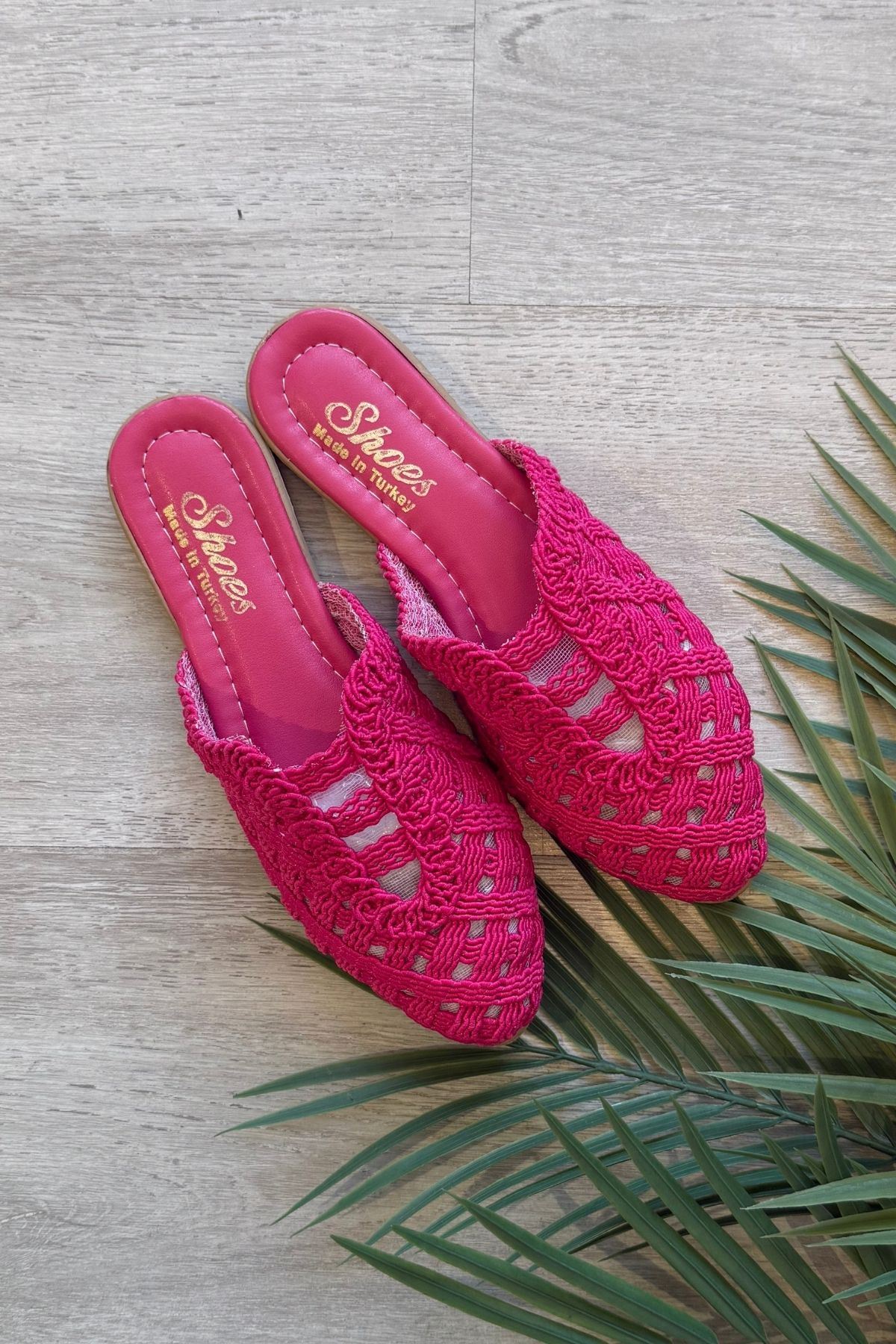 Elaris Fuşya Hasır İşlemeli Önü Kapalı Terlik