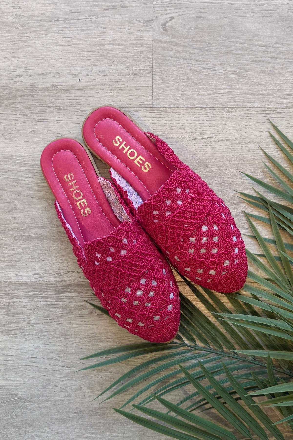 Elaris Fuşya Triko Örgü Detaylı Önü Kapalı Terlik