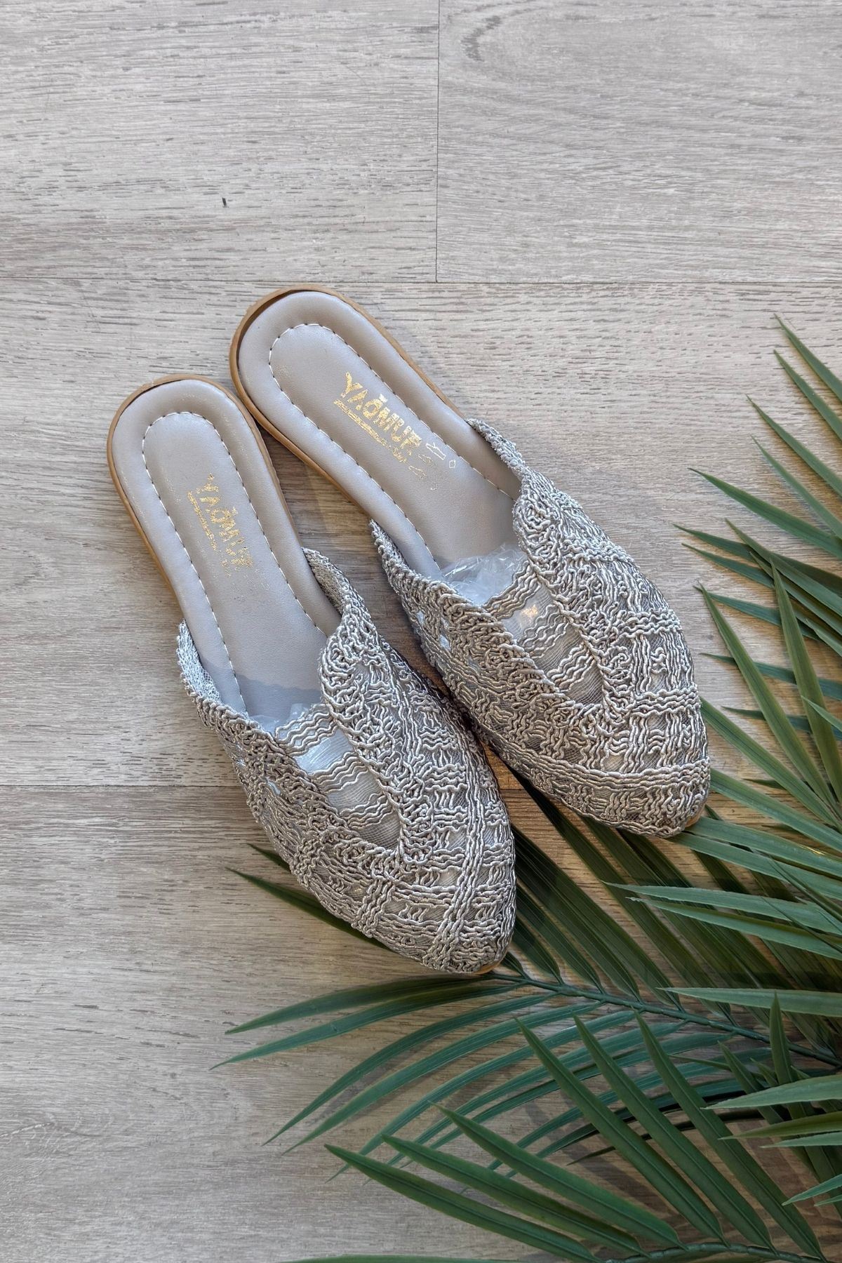 Elaris Gri Hasır İşlemeli Önü Kapalı Terlik