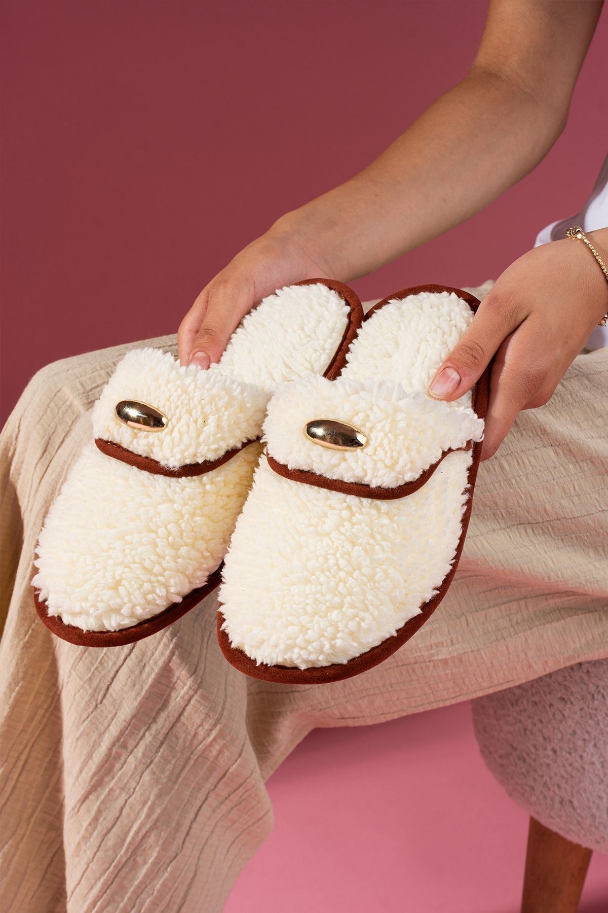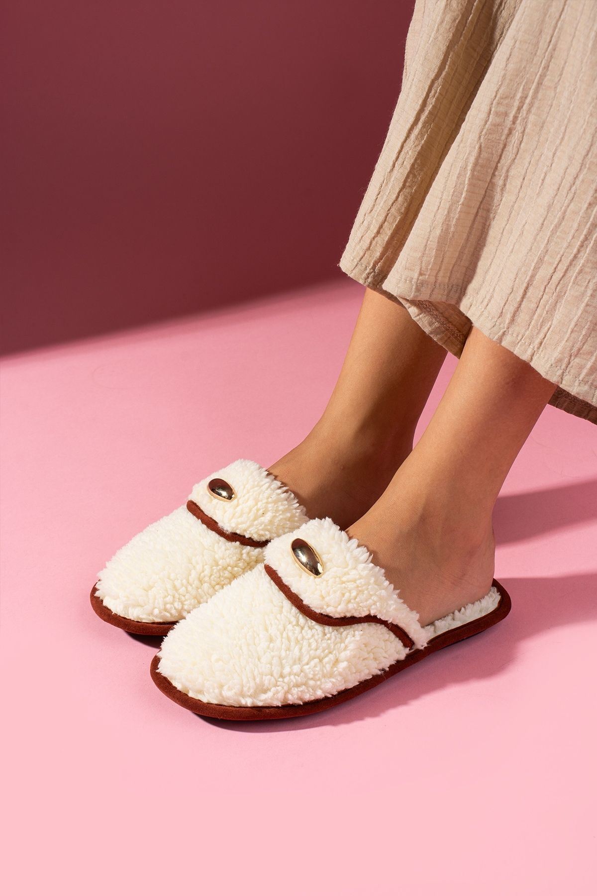 Evelis Beyaz Havlu Dokulu Damla Aksesuarlı Ev Terliği