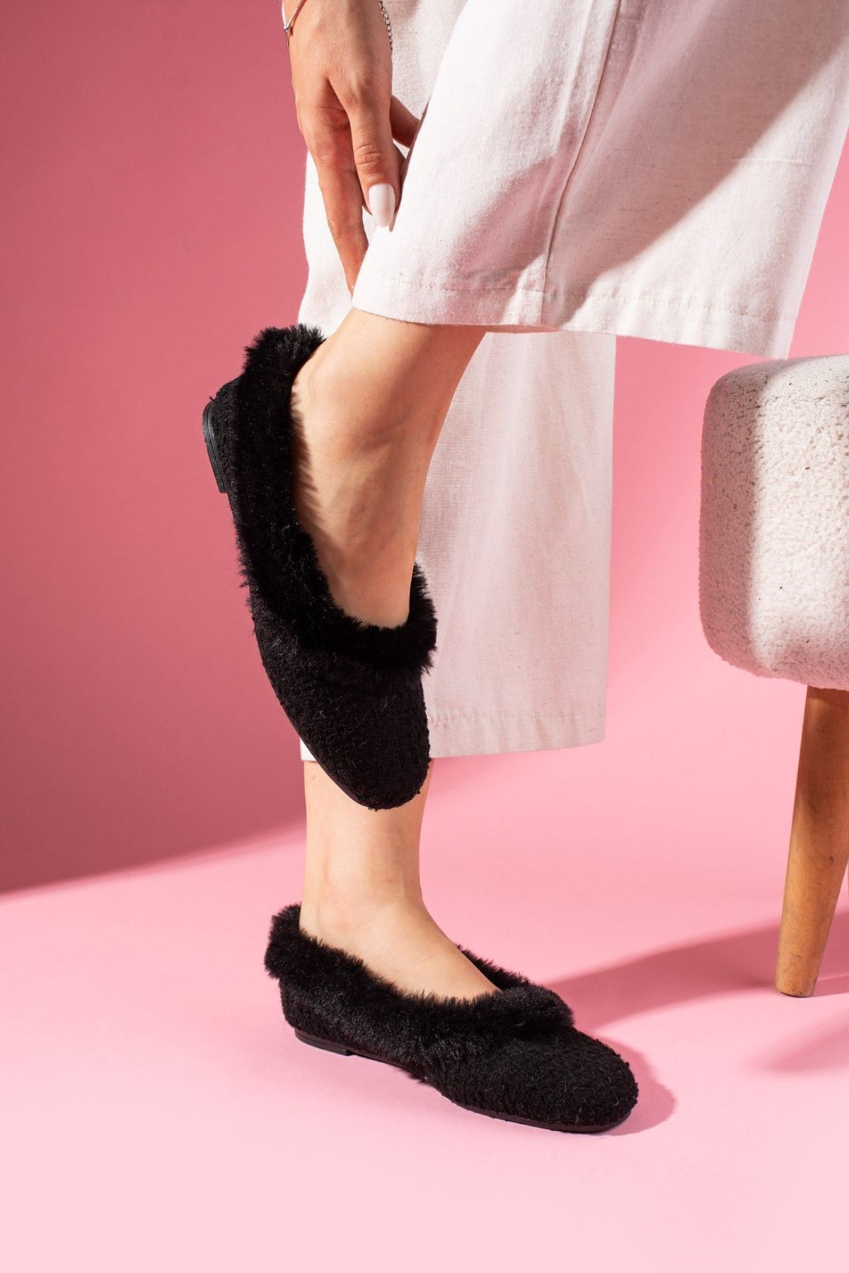 Haley Siyah Peluş Detaylı Kırçıl Kumaşlı Ev Babeti