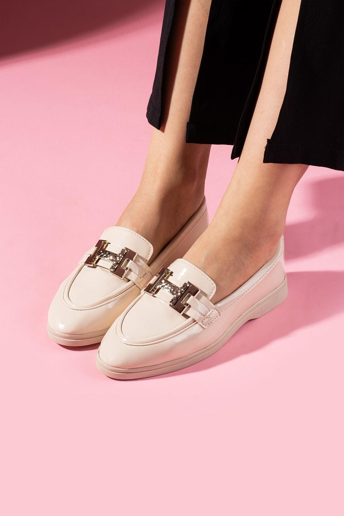 Herkon Bej Rugan Tokalı Loafer Babet Günlük Ayakkabı
