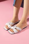 Jakson Beyaz Düğüm İp Kemer Detaylı Terlik