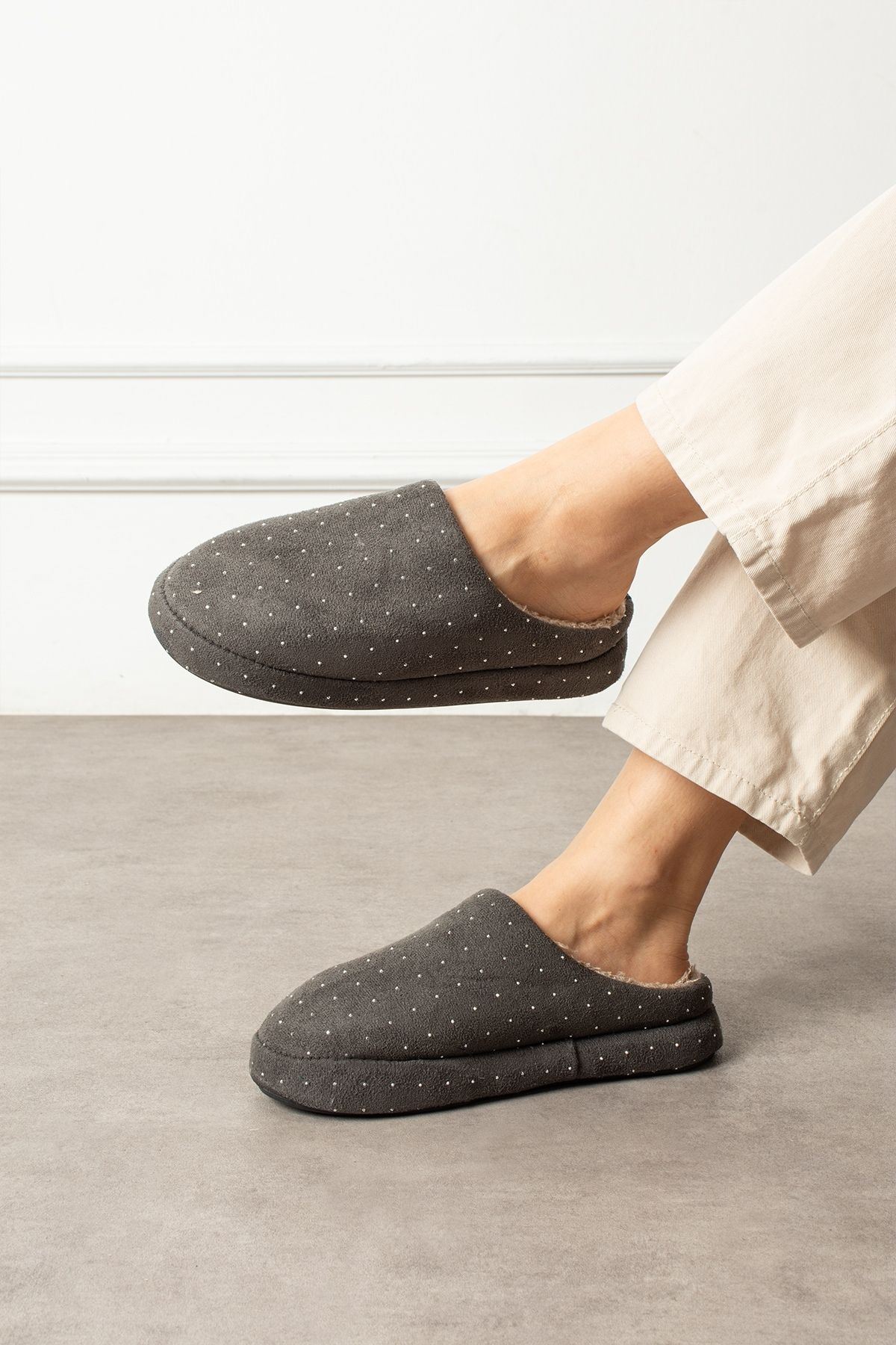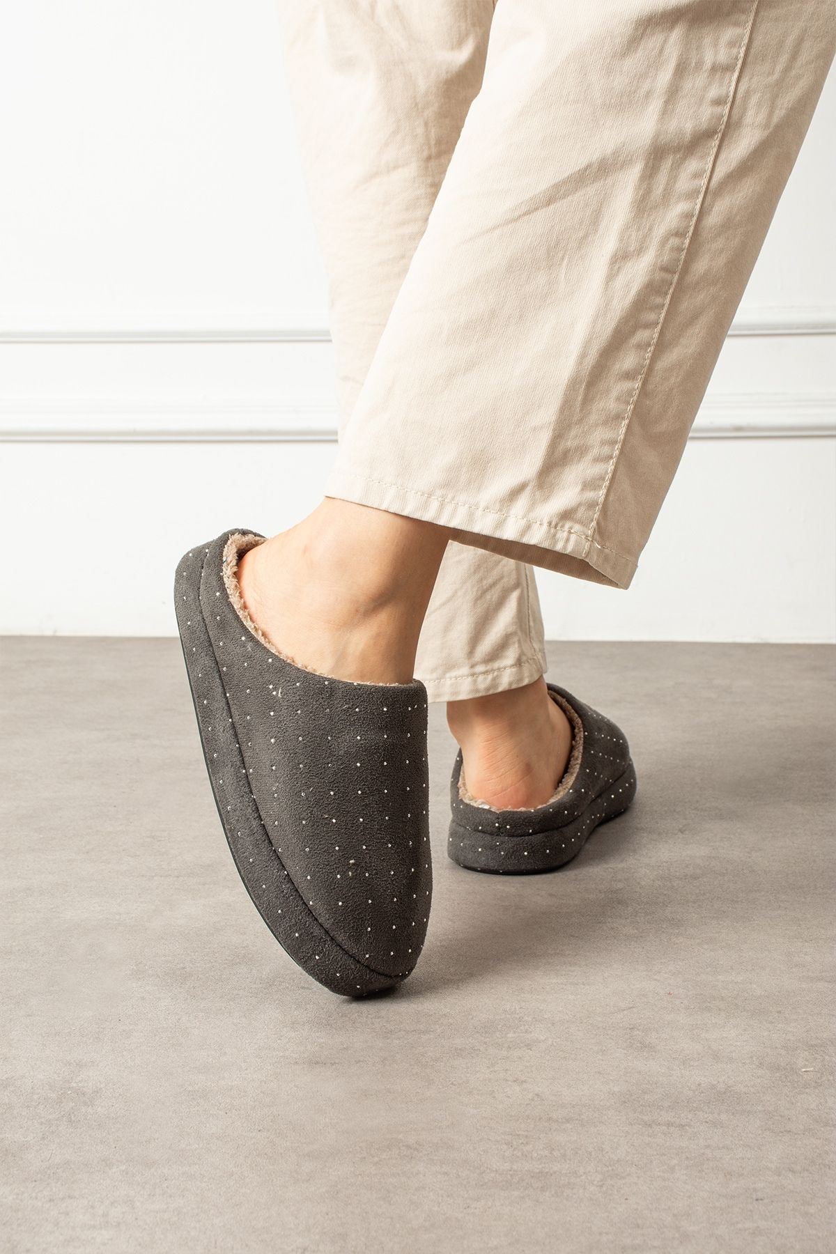 Loffy Antrasit Mini Taşlı Yarı Kapalı Sessiz Kaymaz Thermo Taban Ev Terliği