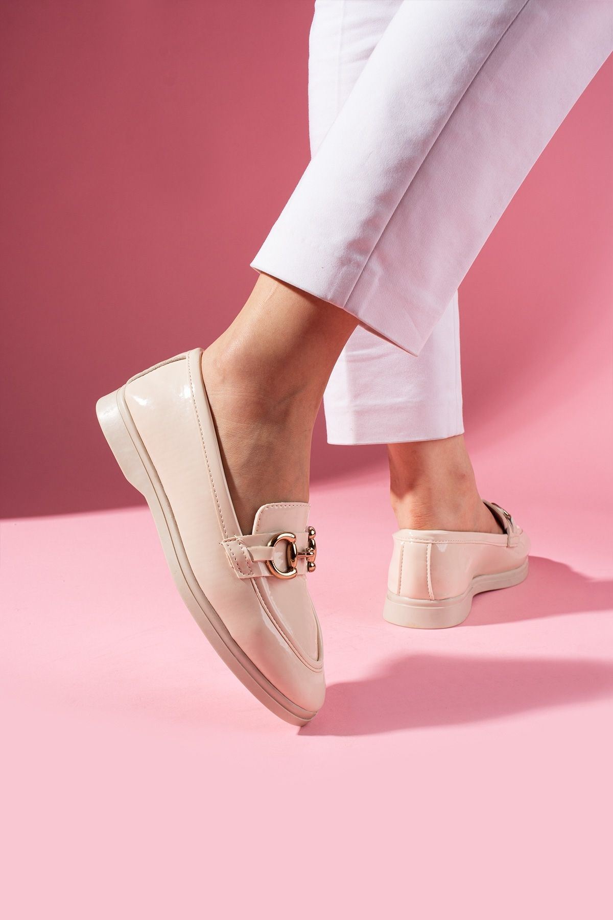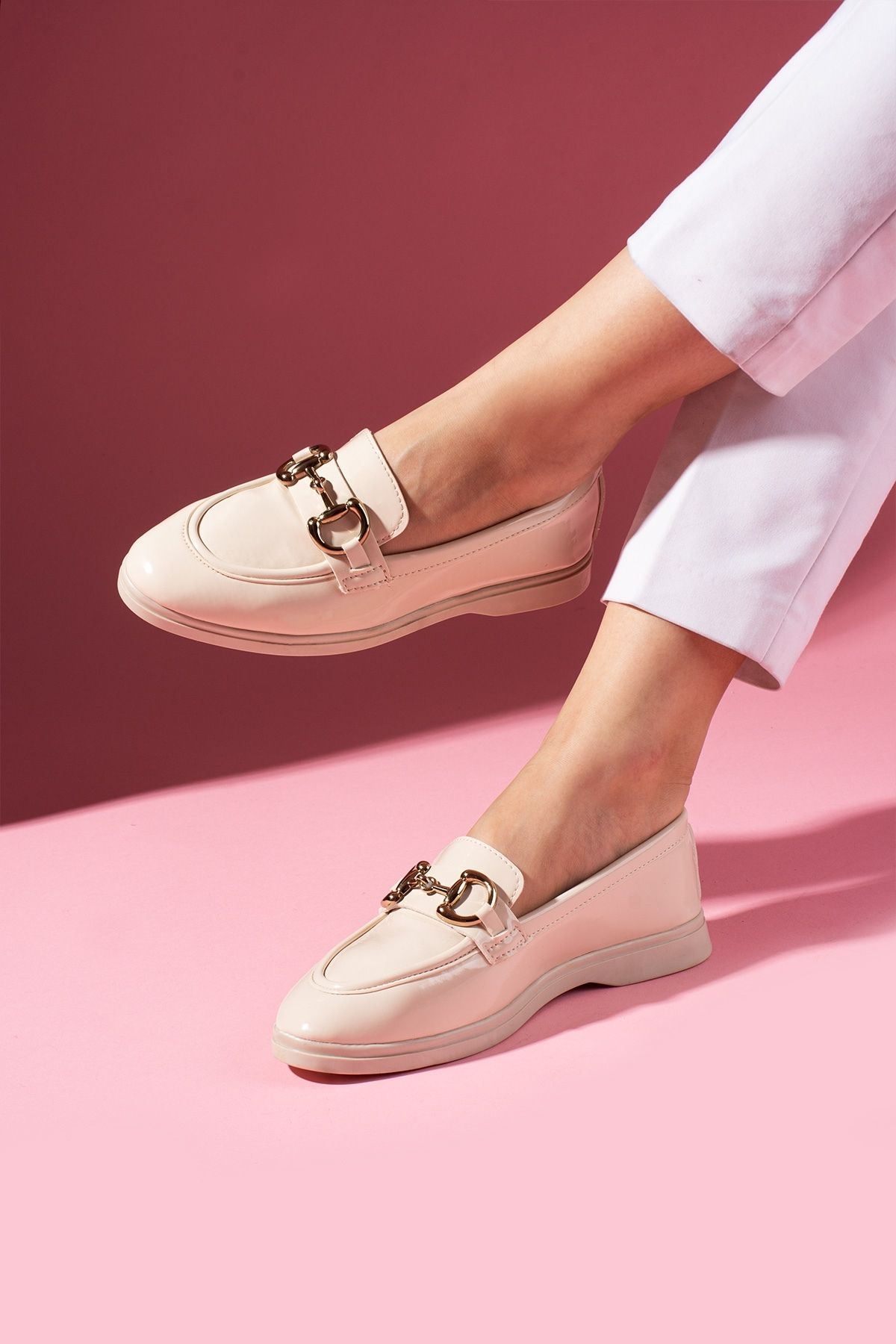 Lofita Bej Rugan Tokalı Loafer Babet Günlük Ayakkabı