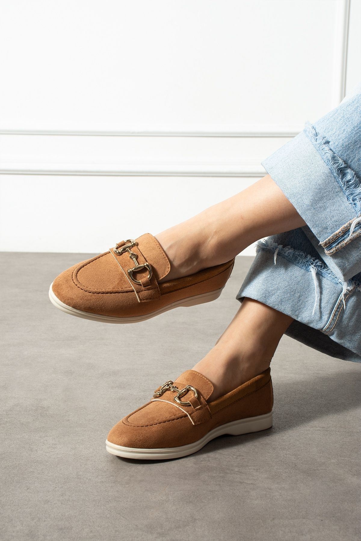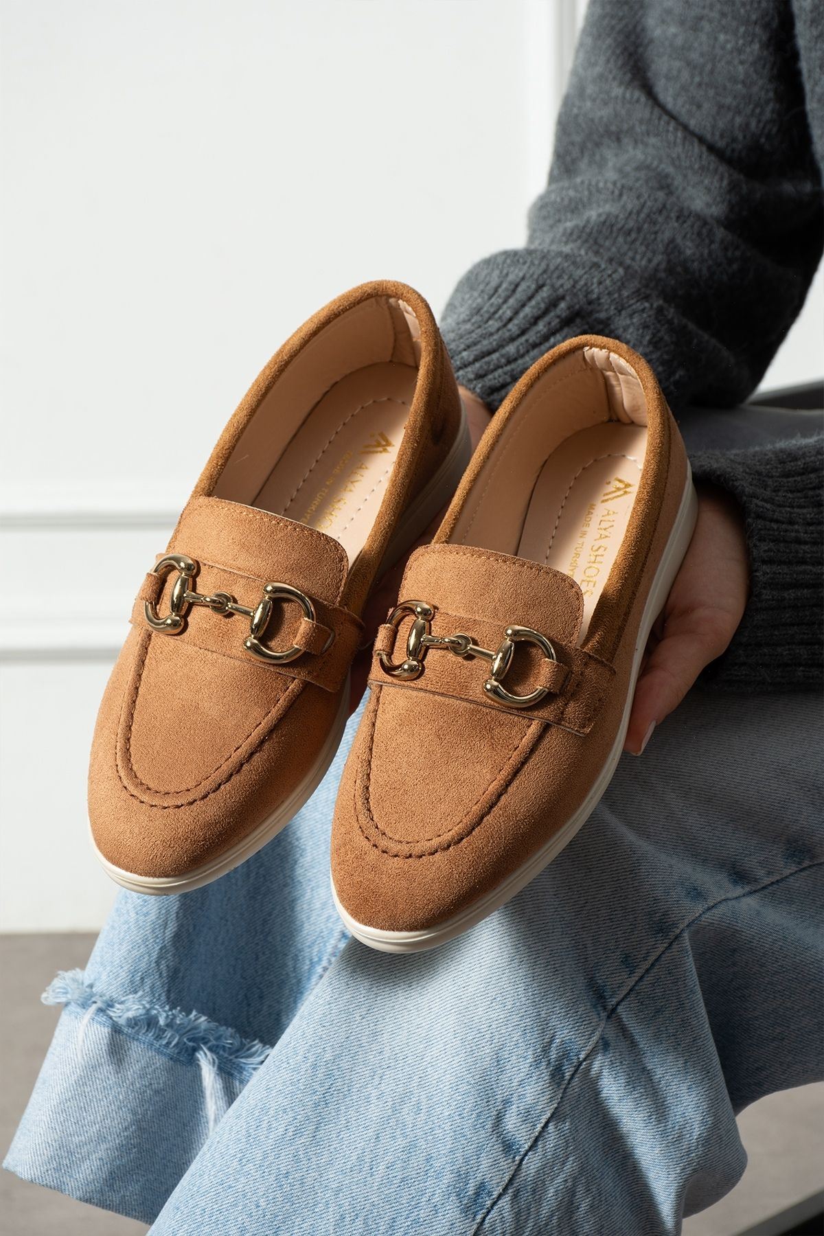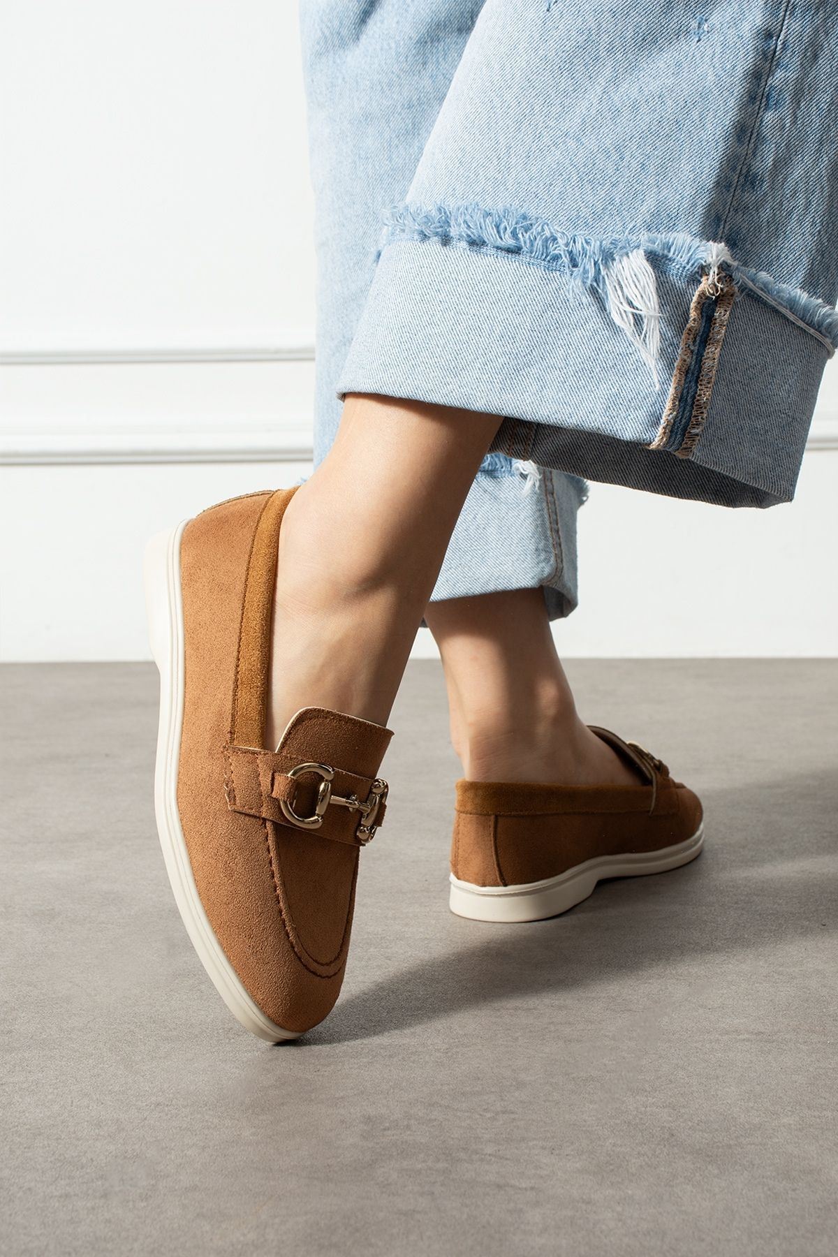 Lofita Taba Süet Tokalı Loafer Babet Günlük Ayakkabı