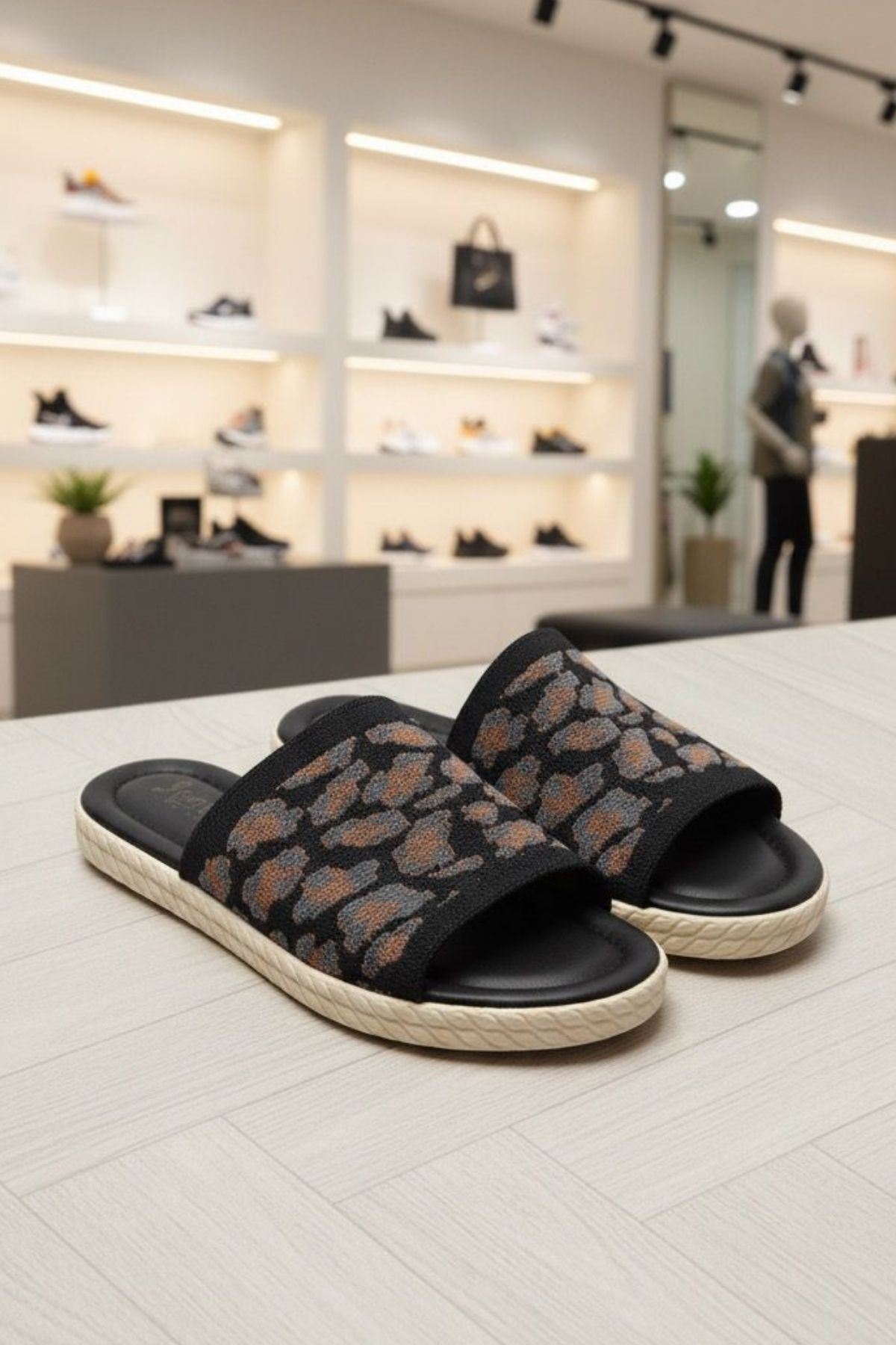 Lorenza Siyah Zeminli Leopar Desenli Triko Terlik