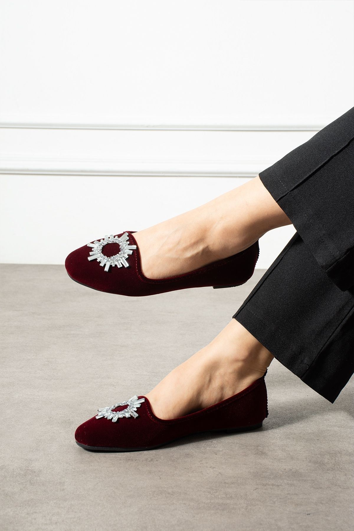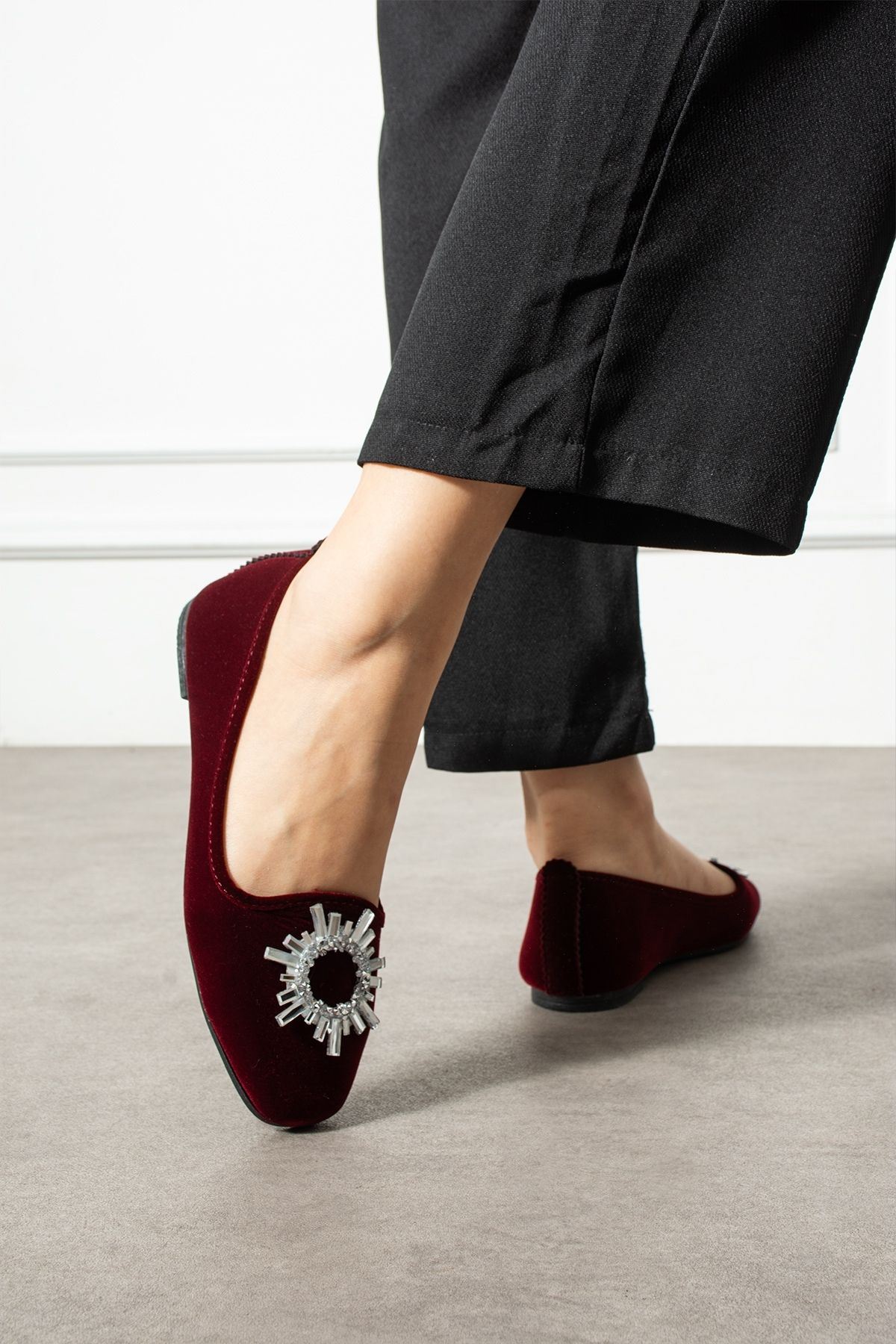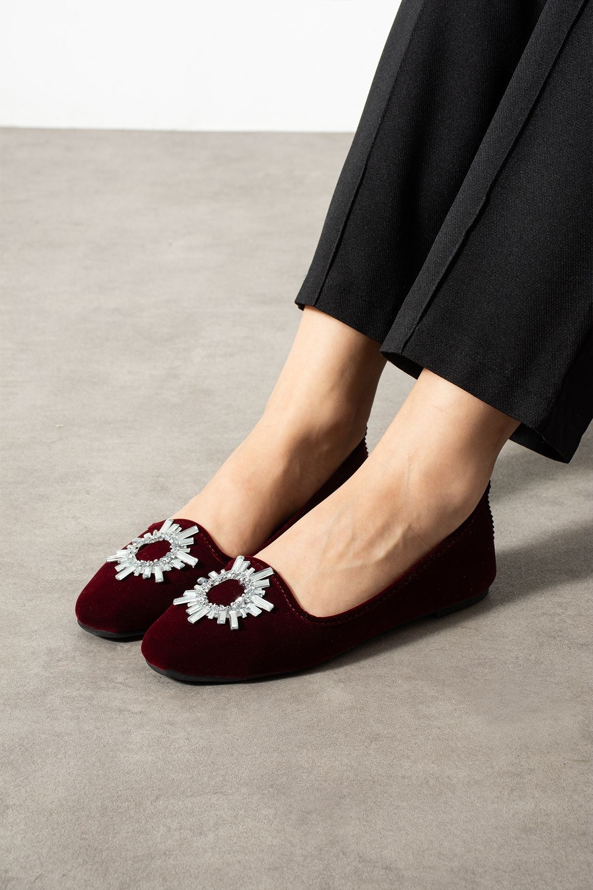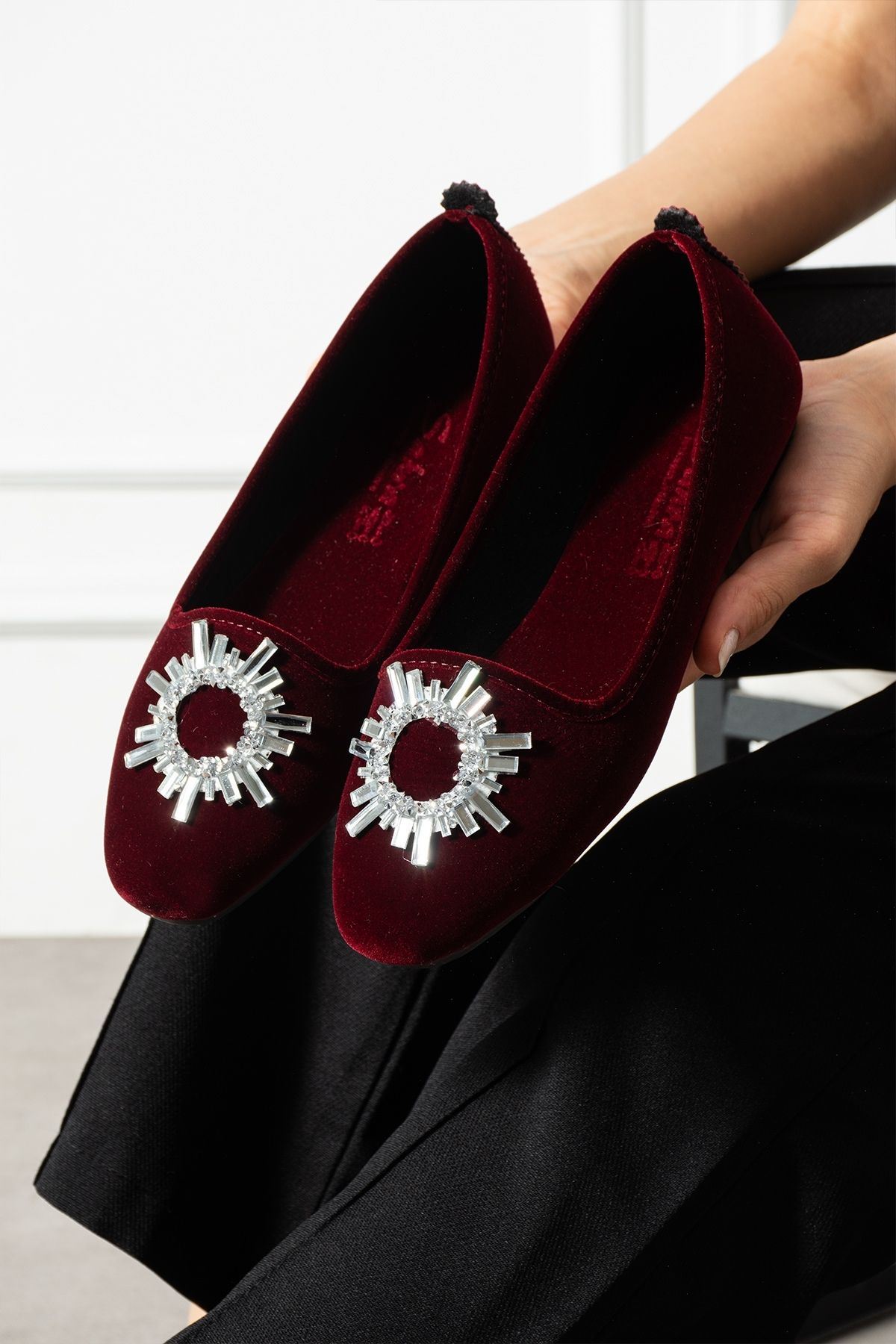 Nera Bordo Kristal Taşlı Tokalı Kadife Dokulu Elegant Nişan Çeyiz Bohça Misafir Ev Babeti
