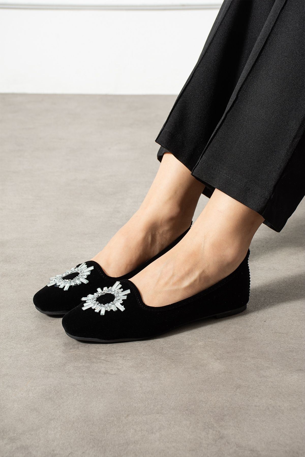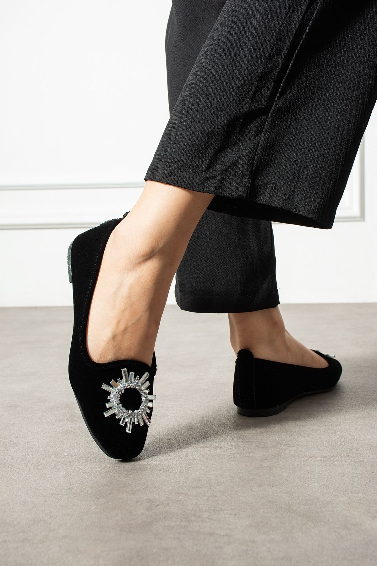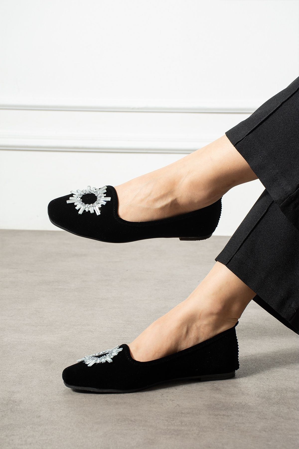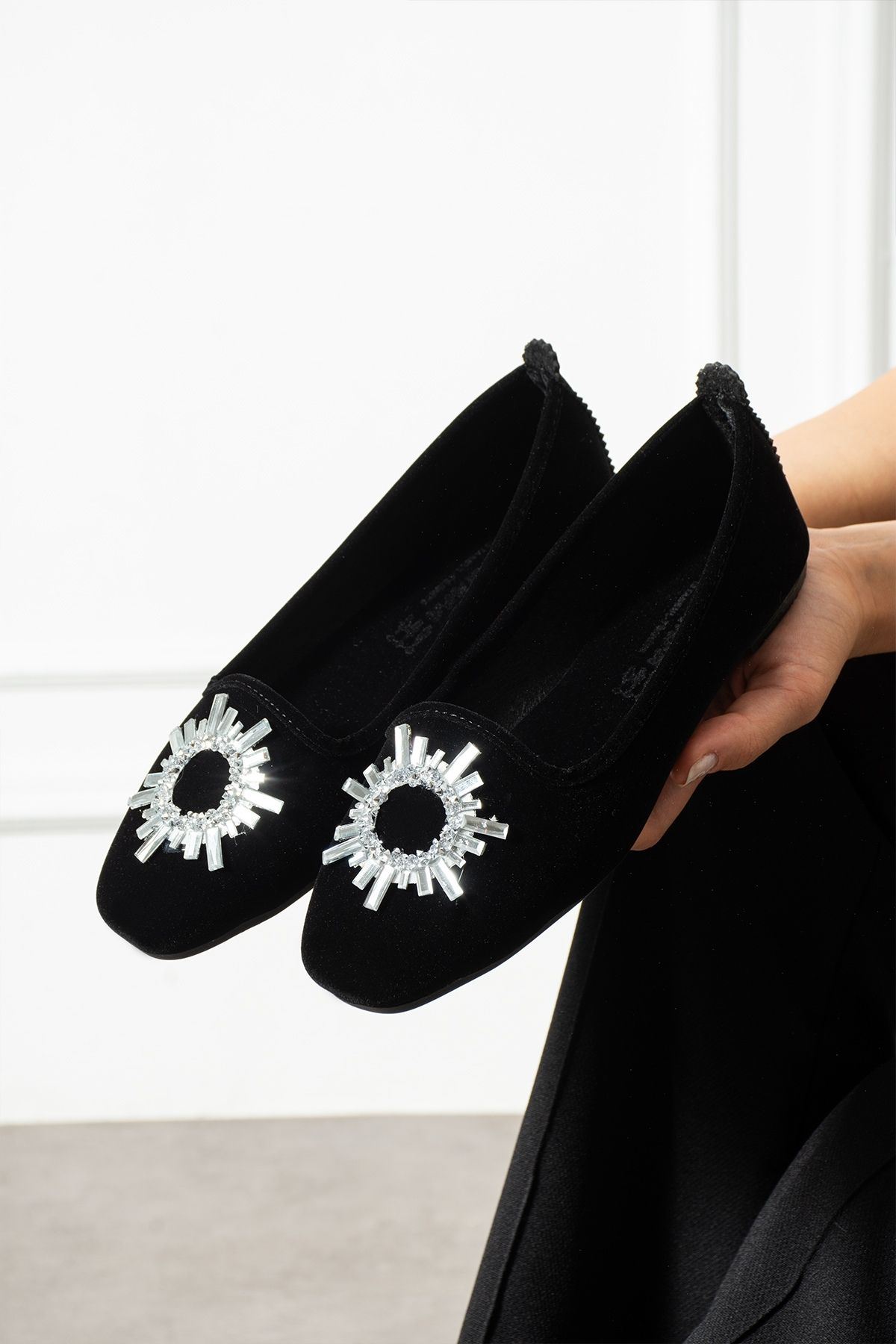 Nera Siyah Kristal Taşlı Tokalı Kadife Dokulu Elegant Nişan Çeyiz Bohça Misafir Ev Babeti
