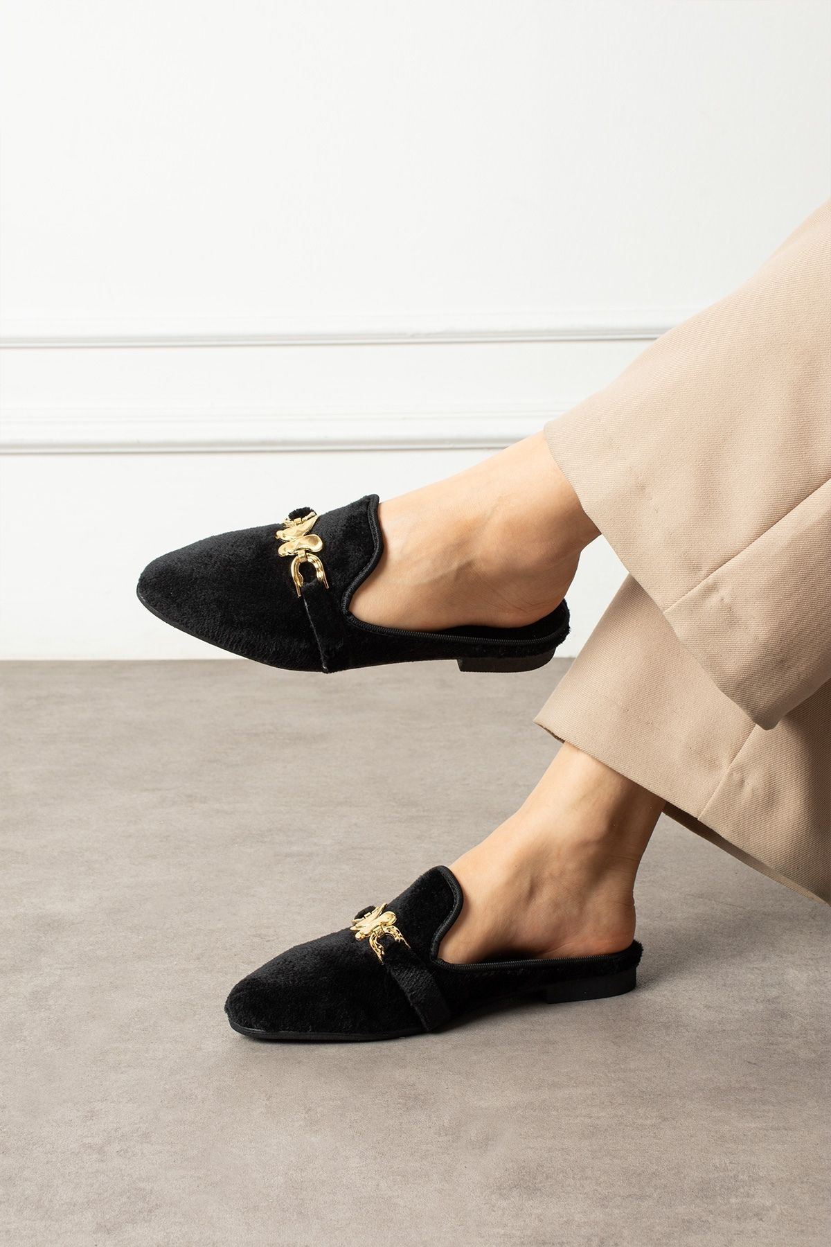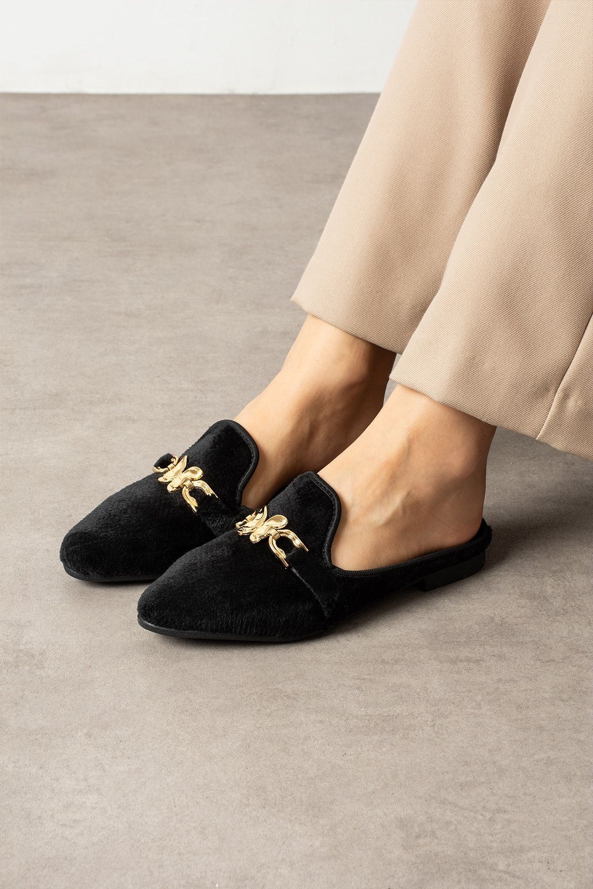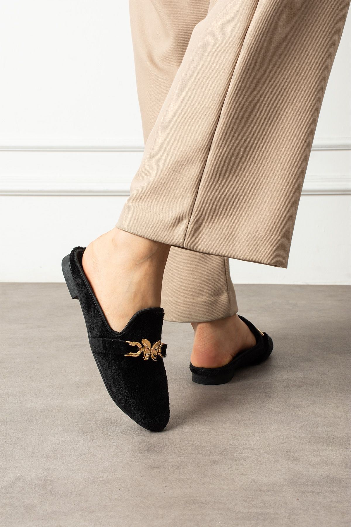 Noira Siyah Kısa Tüylü Elegant Nişan Çeyiz Bohça Misafir Ev Terliği