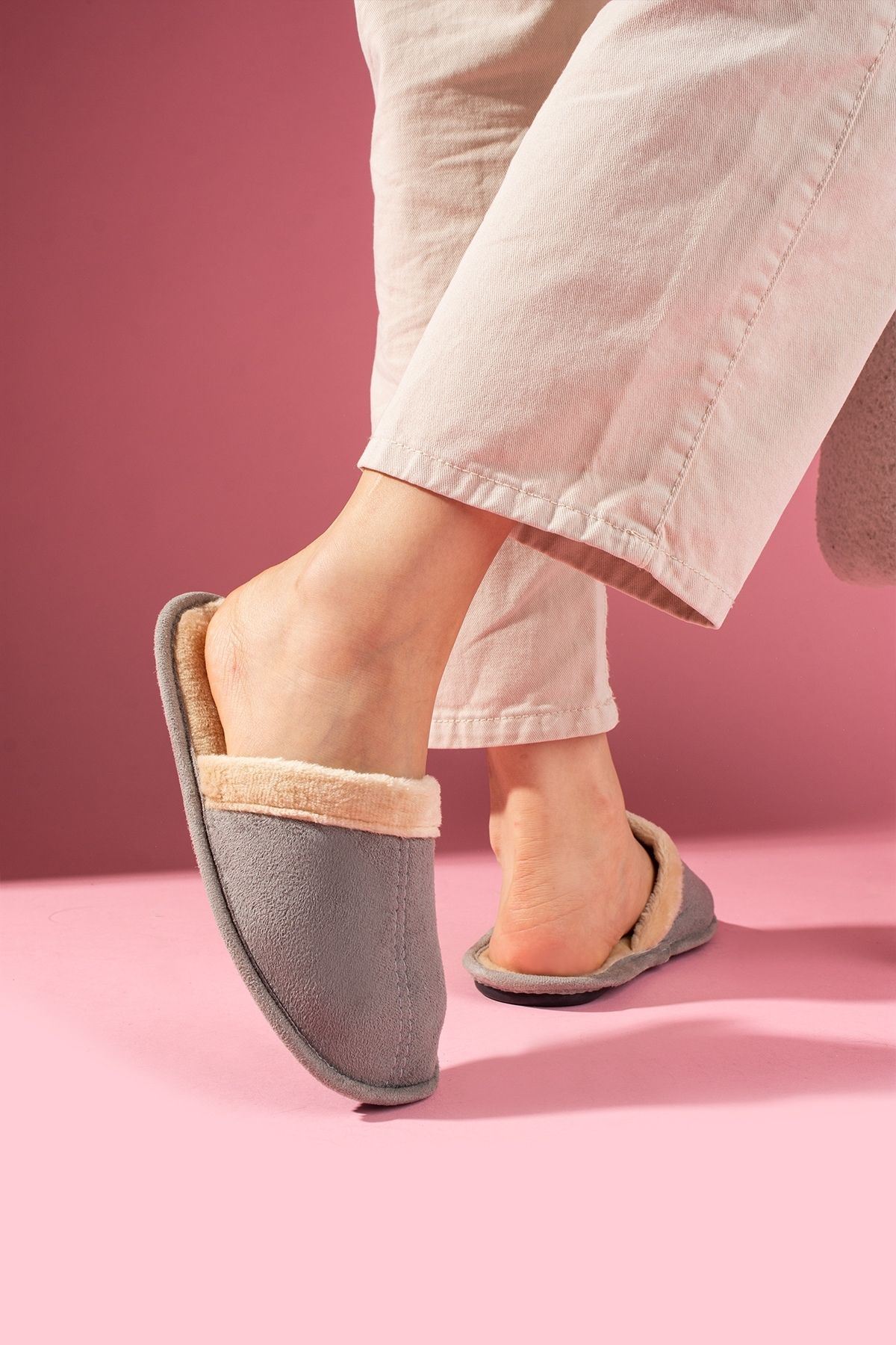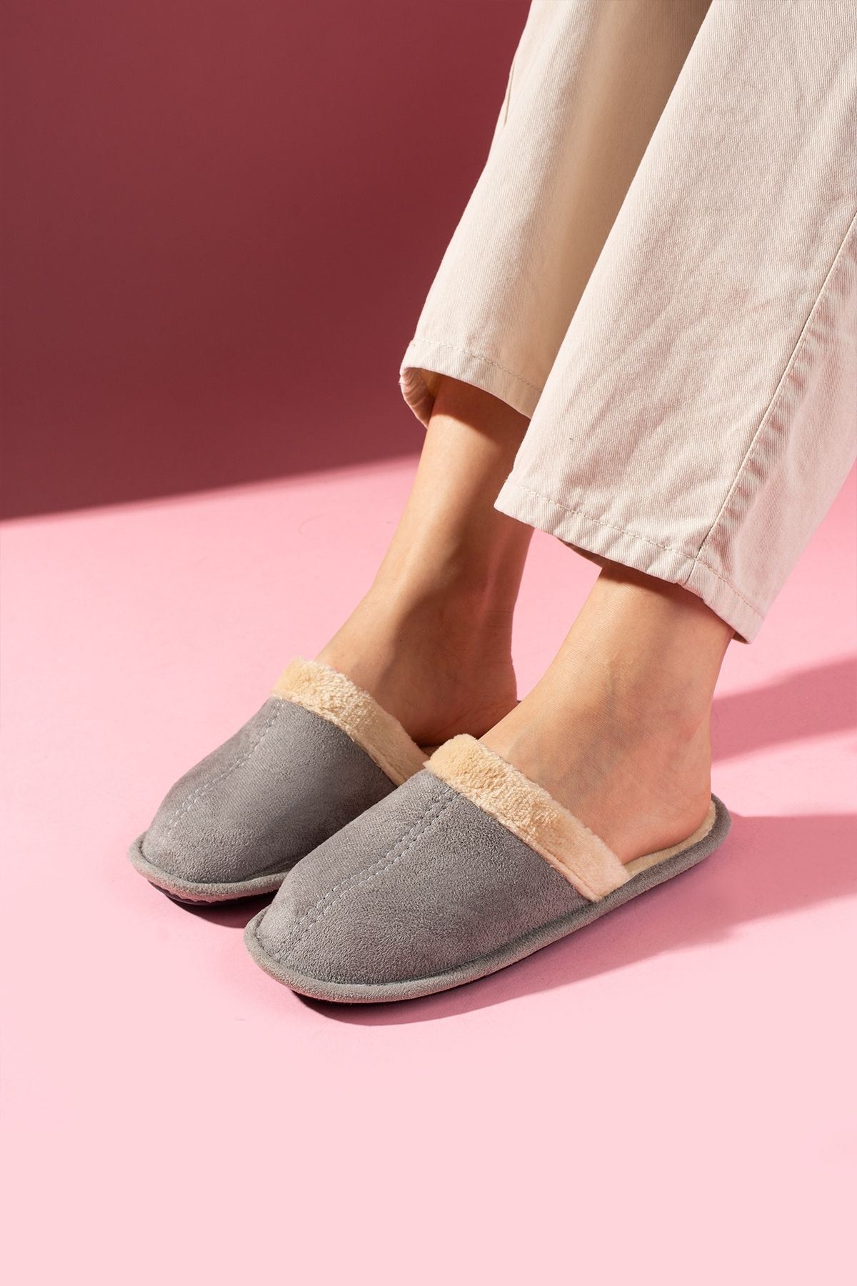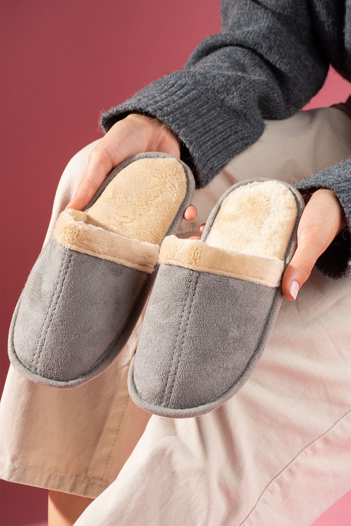Nuvia Gri İçi Tüylü Önü Kapalı Ev Terliği