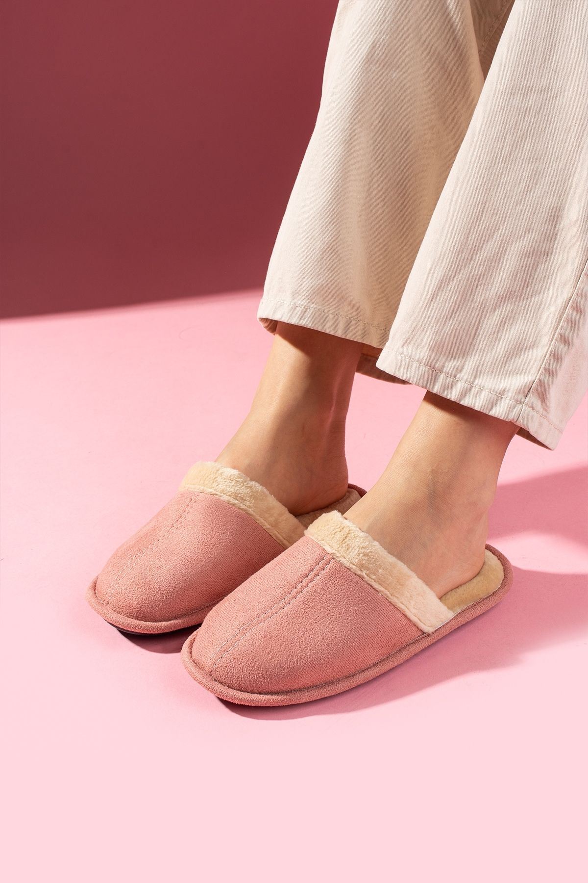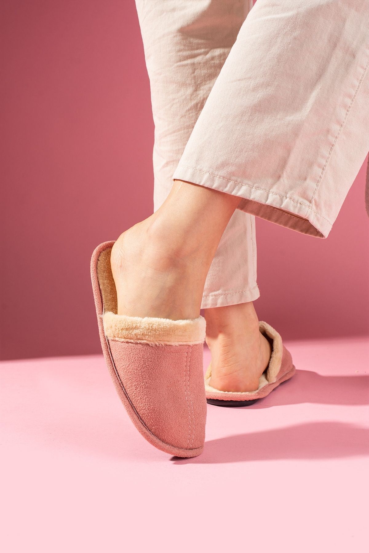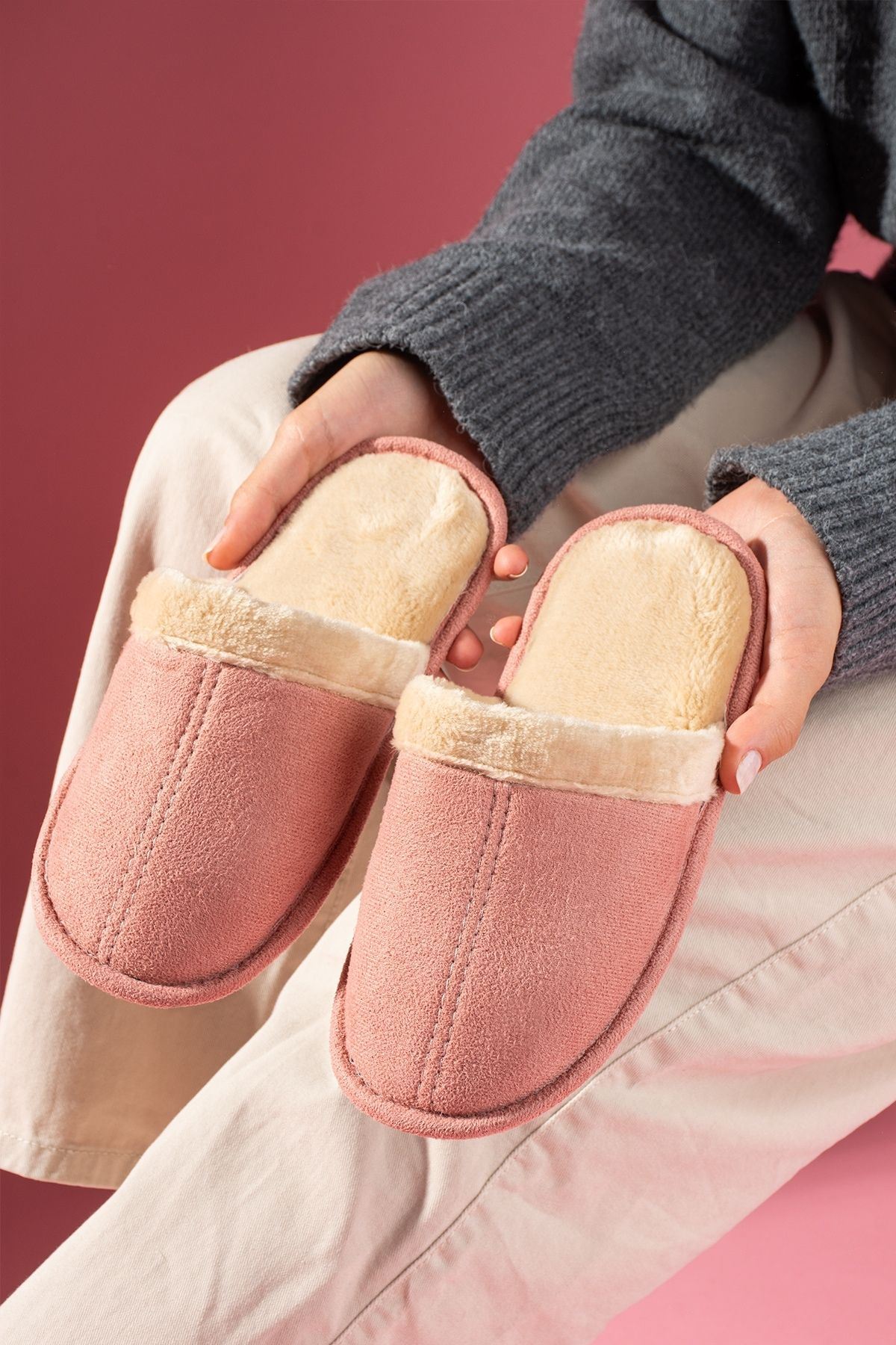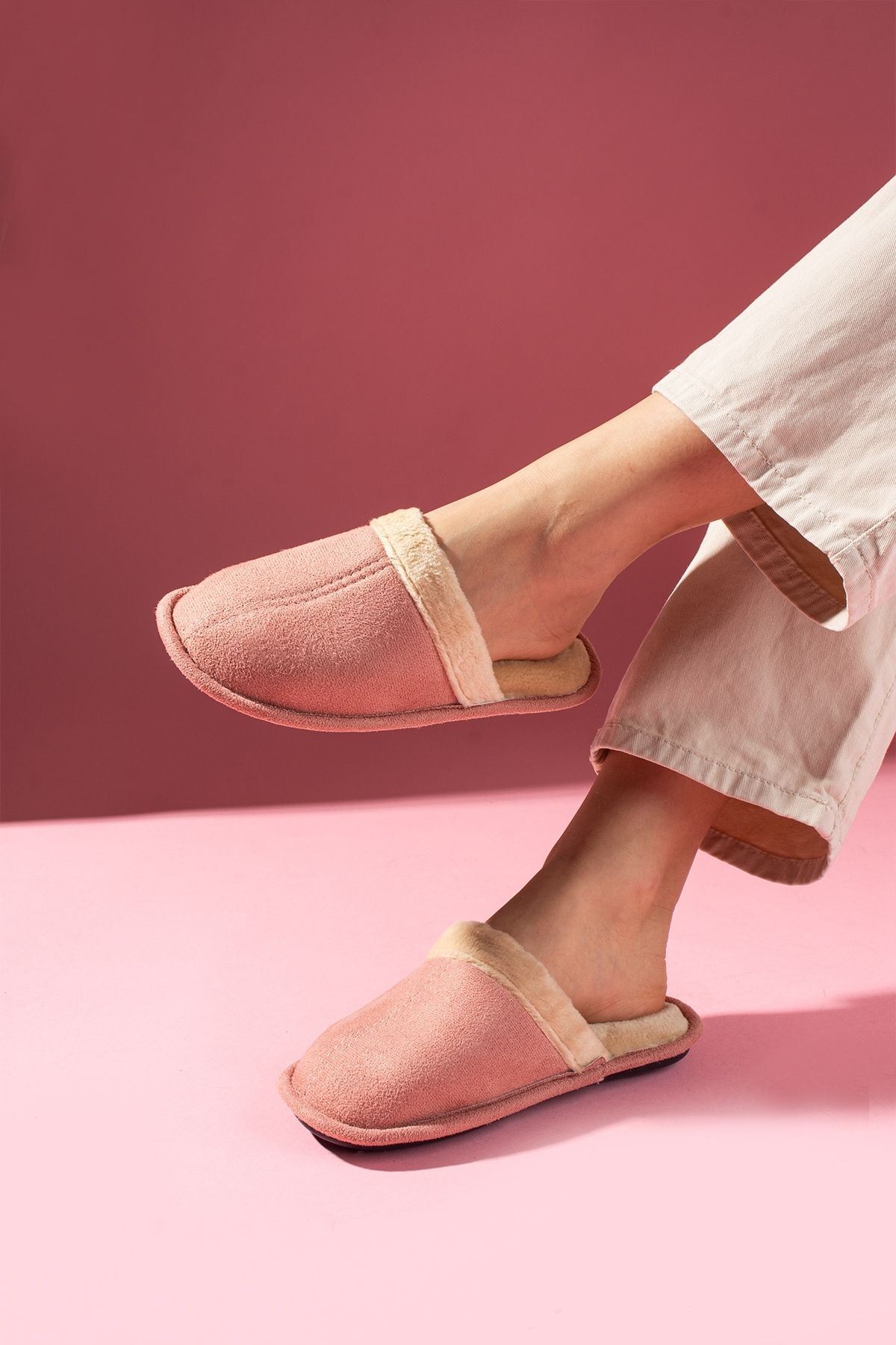 Nuvia Pudra İçi Tüylü Önü Kapalı Ev Terliği
