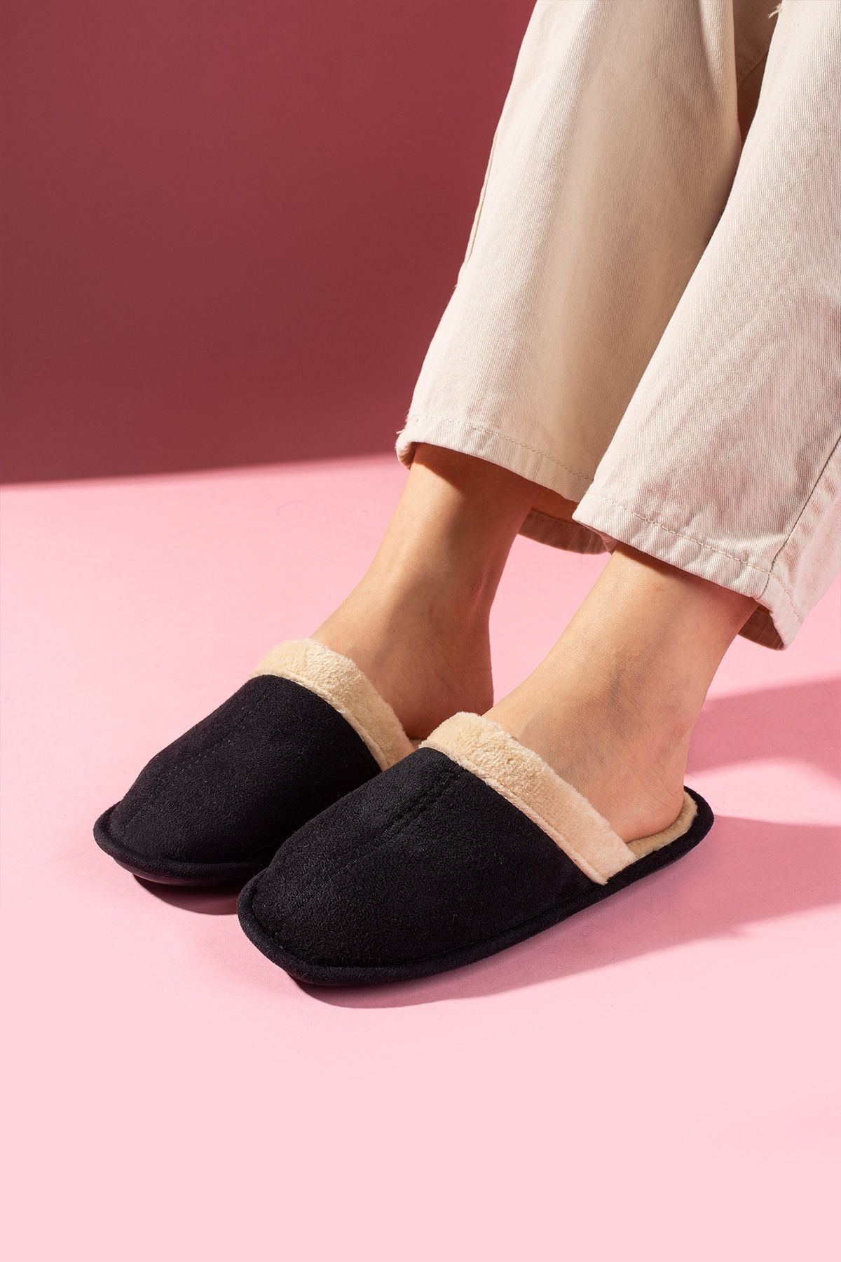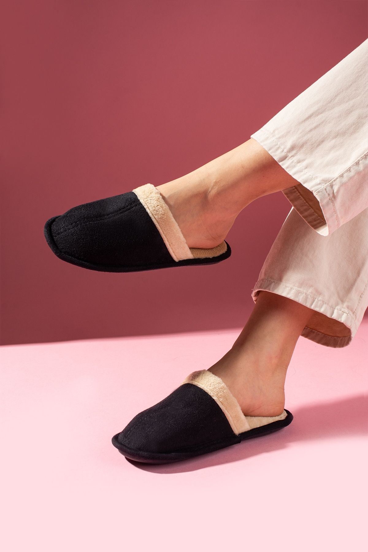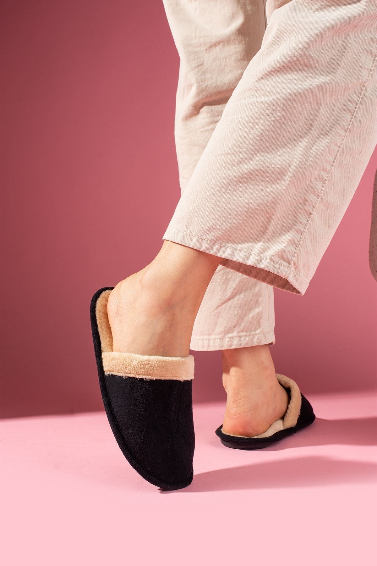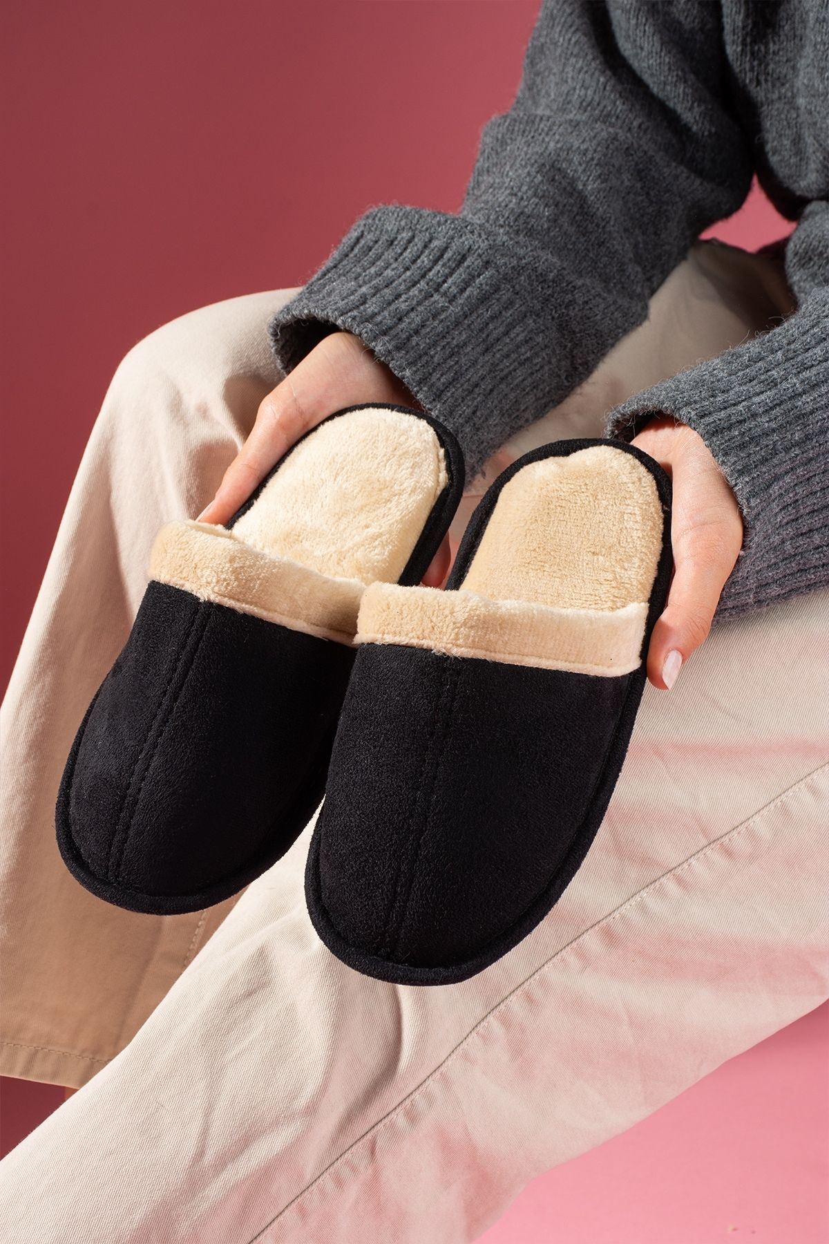 Nuvia Siyah İçi Tüylü Önü Kapalı Ev Terliği