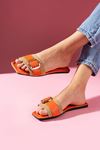 Orsato Taba Hasır Kemerli Gold Toka Detaylı Terlik