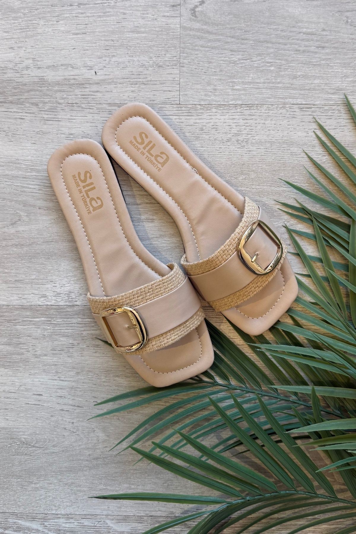 Orsato Vizon Hasır Kemerli Gold Toka Detaylı Terlik