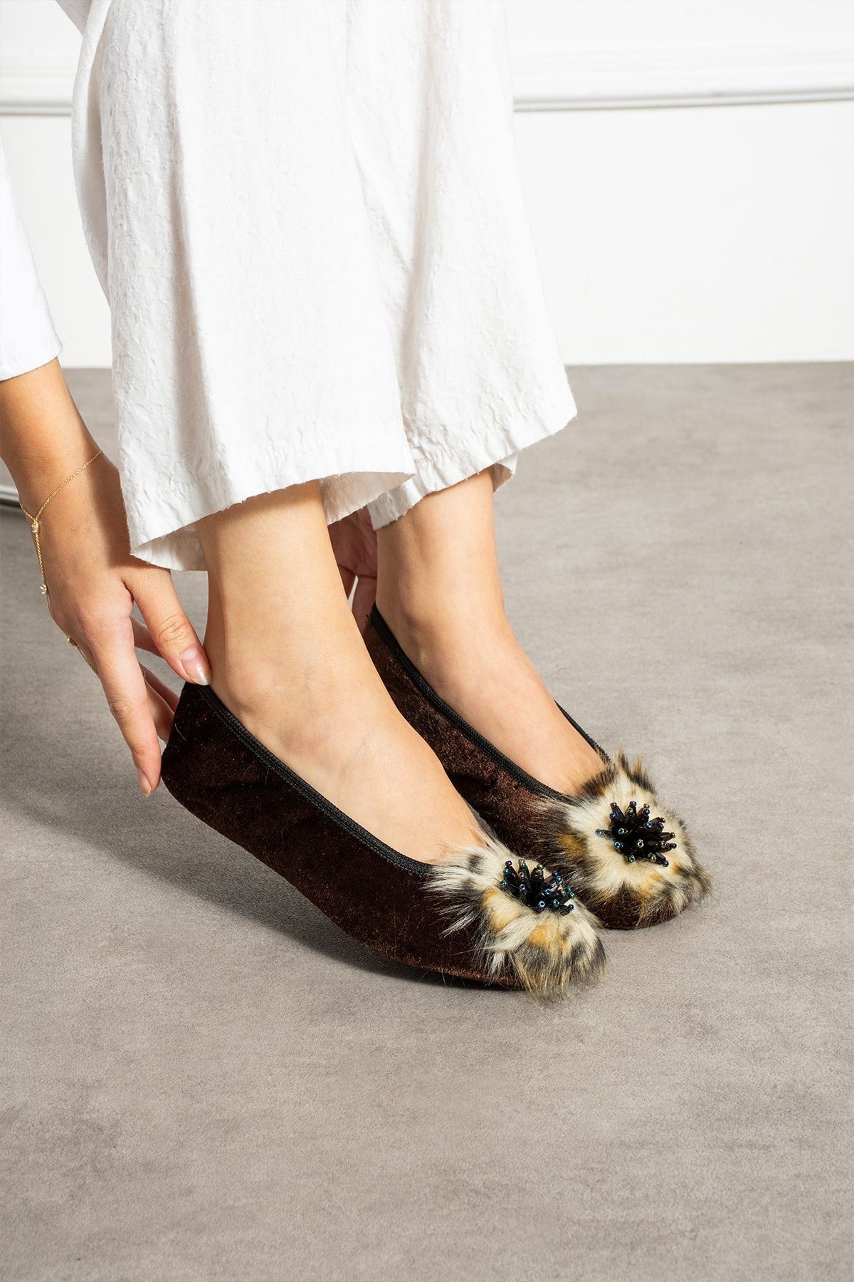 PİKY, çantanıza kolayca sığacak kadar hafif ve katlanabilir yapısıyla, her an yanınızda taşıyabileceğiniz şık bir pisi pisi modelidir. Gösterişli taş detayı ve yumuşak tüylü süslemesiyle evde ya da seyahatte stilinizi tamamlar. Yumuşak kumaş yapısı sayesinde gün boyu konfor sağlar. Özellikle misafirlikte, iş yerinde ya da seyahatlerde kurtarıcı bir parça!