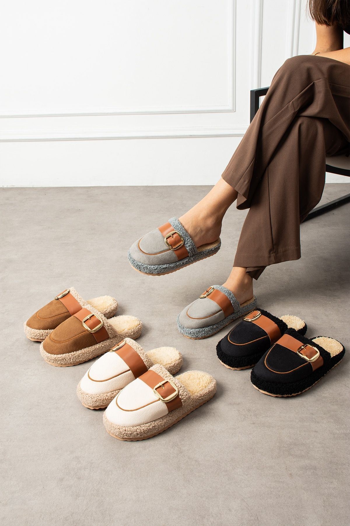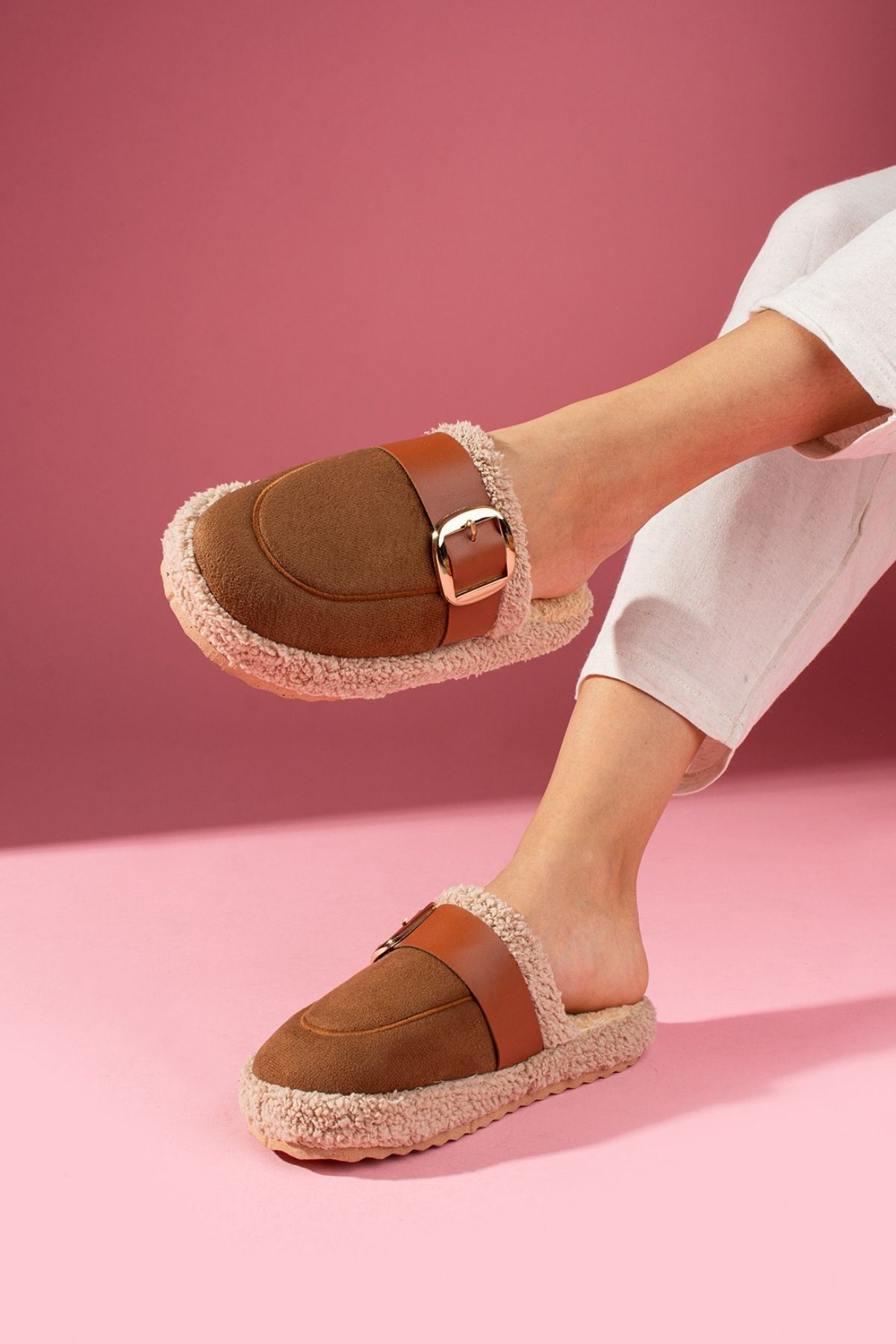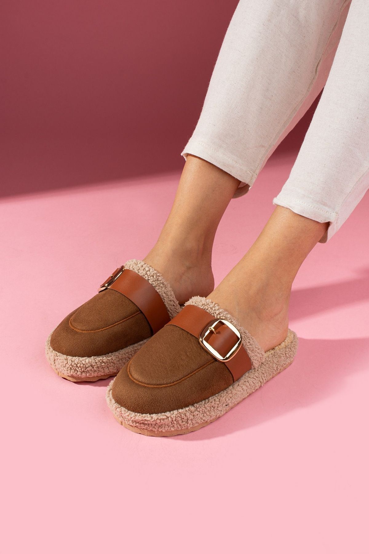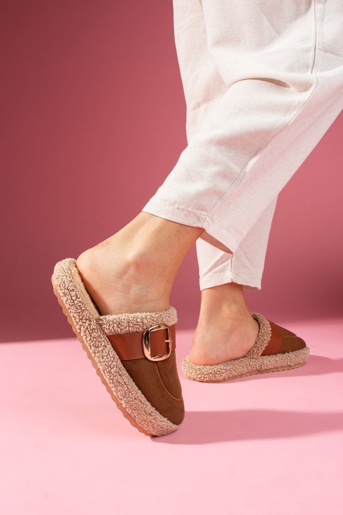 Puffita Taba Gold Tokalı Kemerli Saraç Detaylı Sessiz Taban Ev Terliği