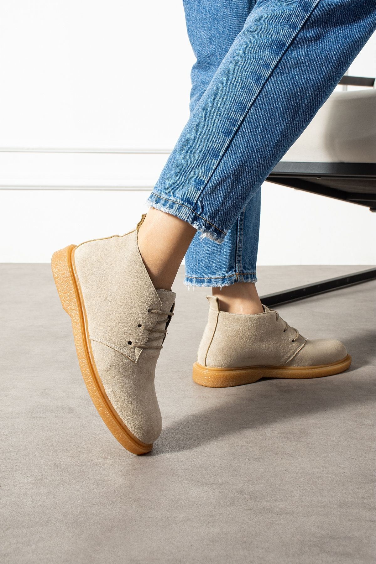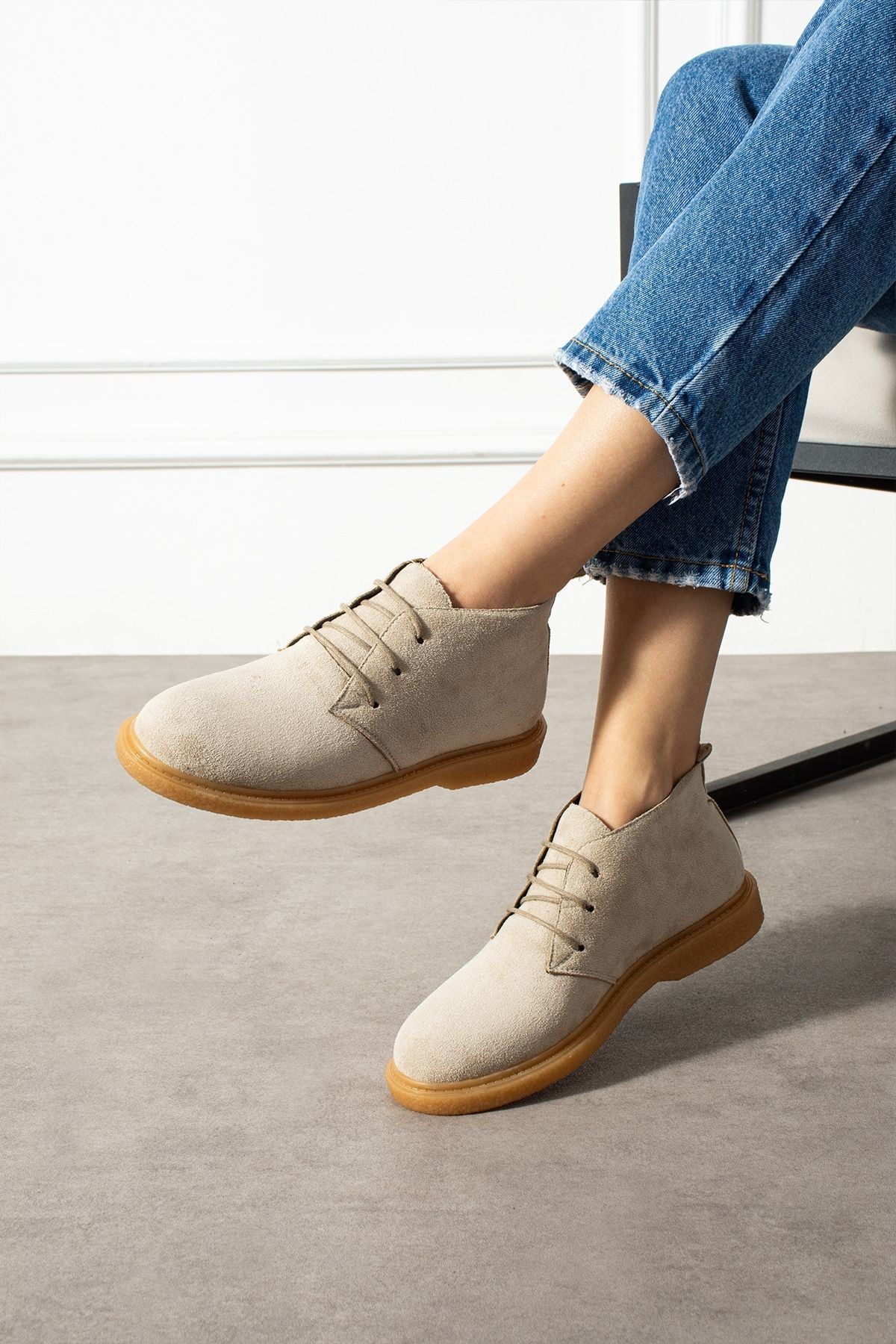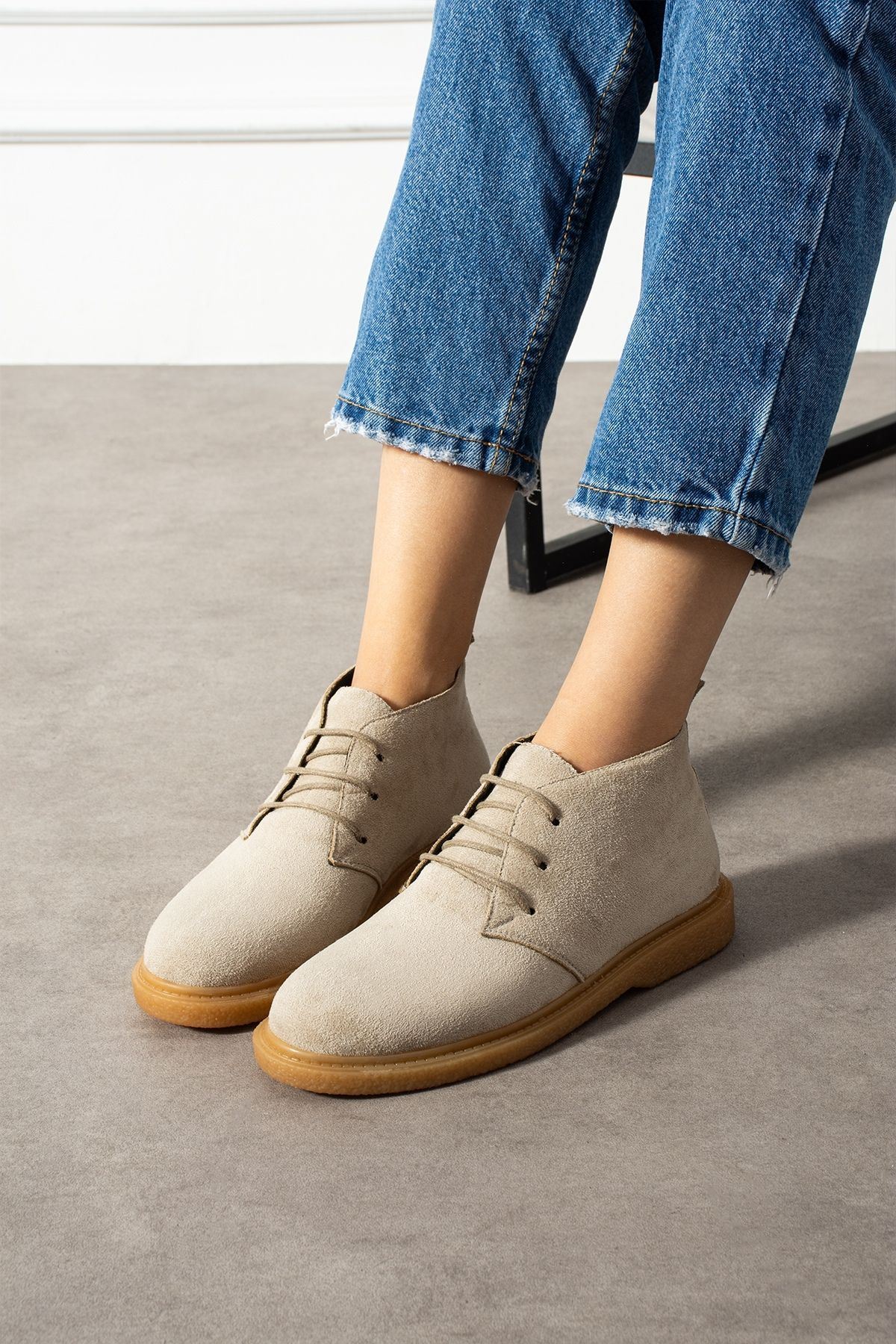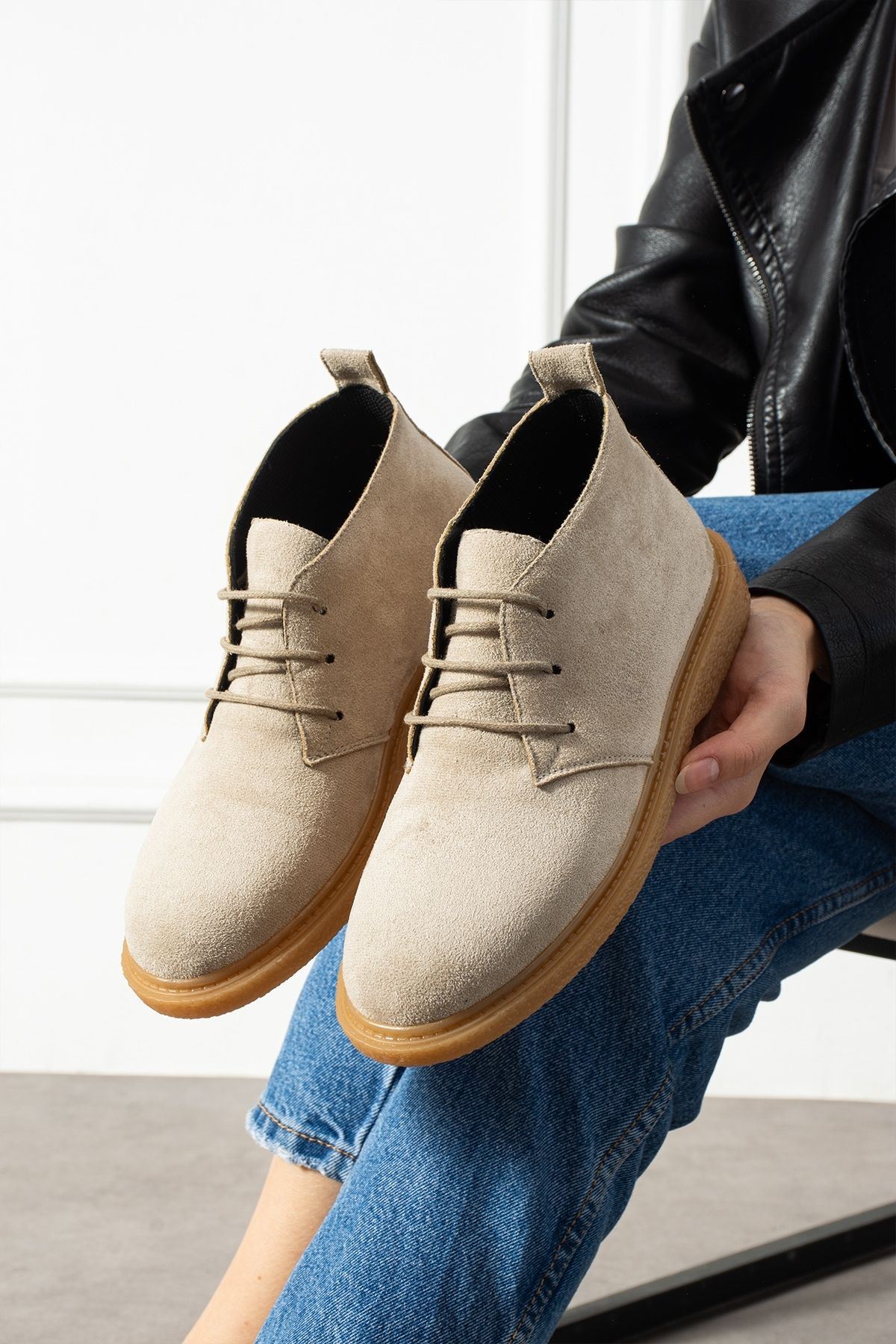 Pumpy Bej Süet Bağcıklı Kadın Bot