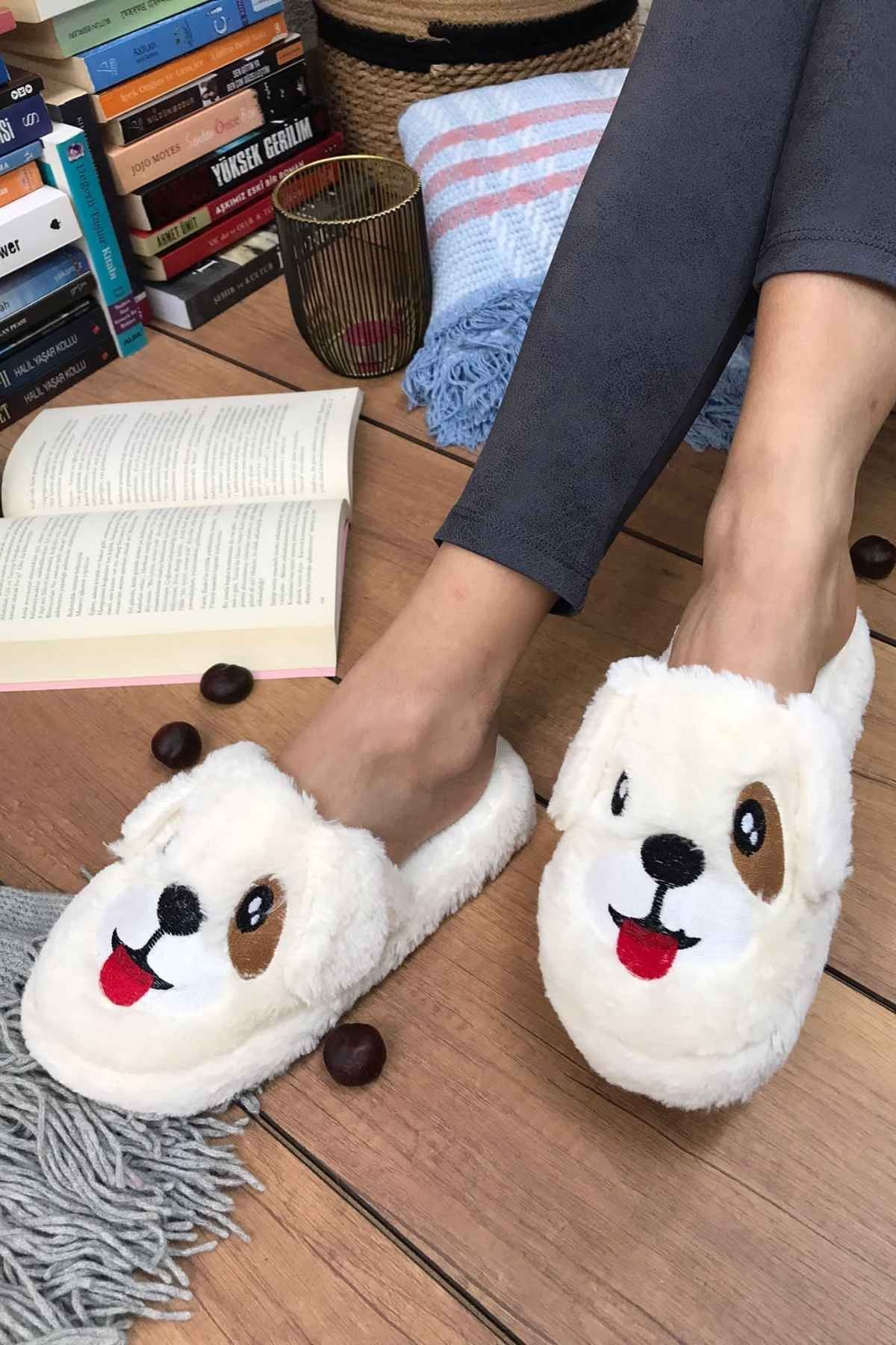 Ramires Çocuk Beyaz Köpek Figürlü Önü Kapalı Ev Terliği
