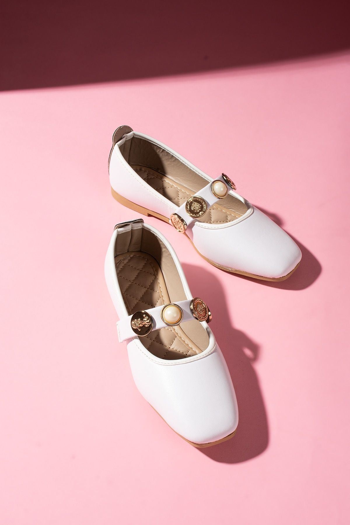 Stamp Beyaz Cilt İnci ve Mühür Aksesuar Bantlı Babet