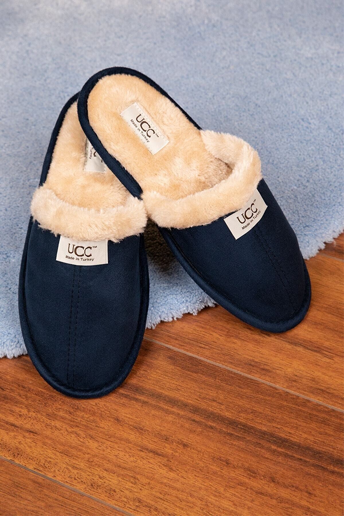 Tuckon Erkek Lacivert Kürk Astarlı Ev Terliği
