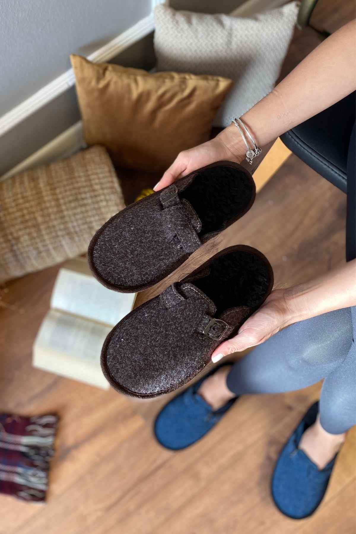 Vaduz Kadın Kahverengi Kemer Tokalı Önü Kapalı Ev Terliği