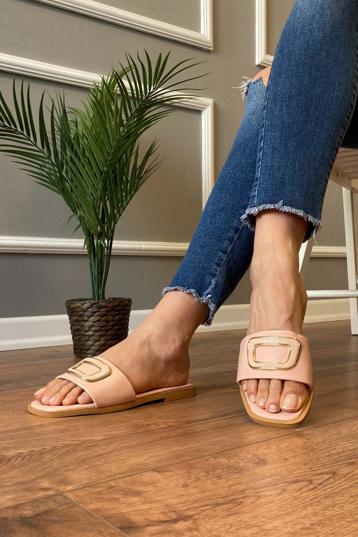 Valentin Pudra Kare Gold Renkli Tokalı Terlik