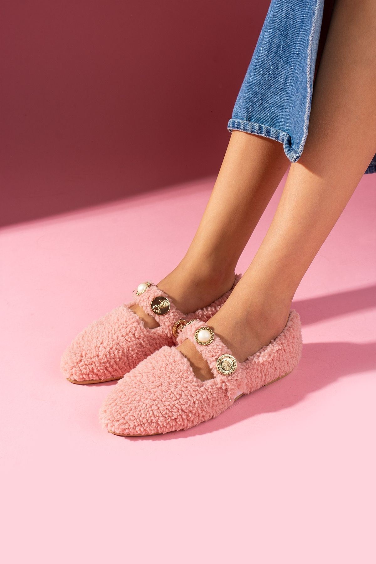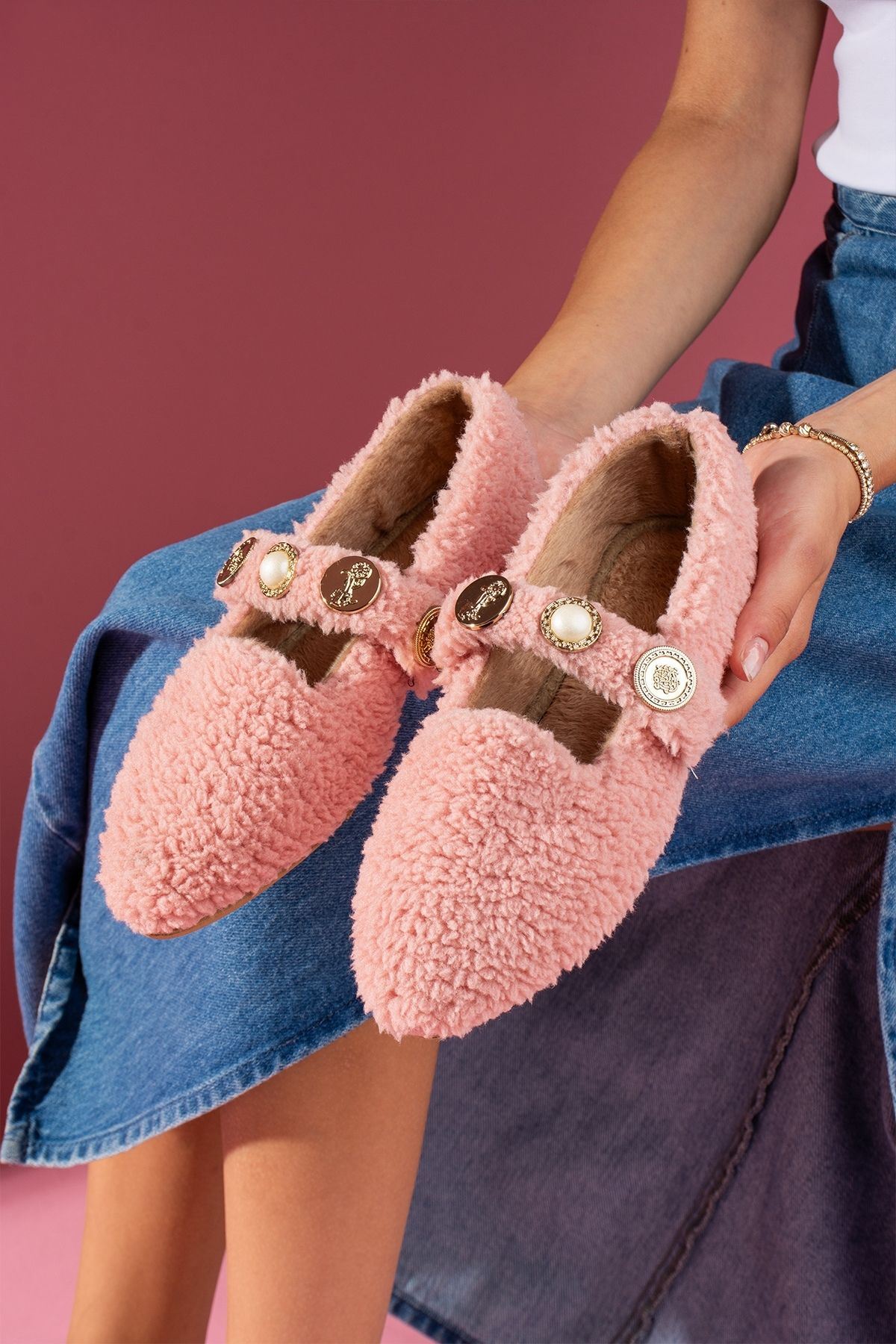 Valoria Pudra Havlu Dokulu İnci ve Mühür Aksesuarlı Kemerli Ev Babeti