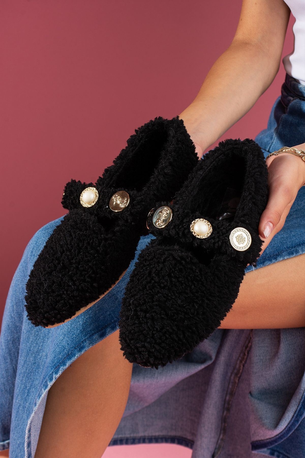 Valoria Siyah Havlu Dokulu İnci ve Mühür Aksesuarlı Kemerli Ev Babeti