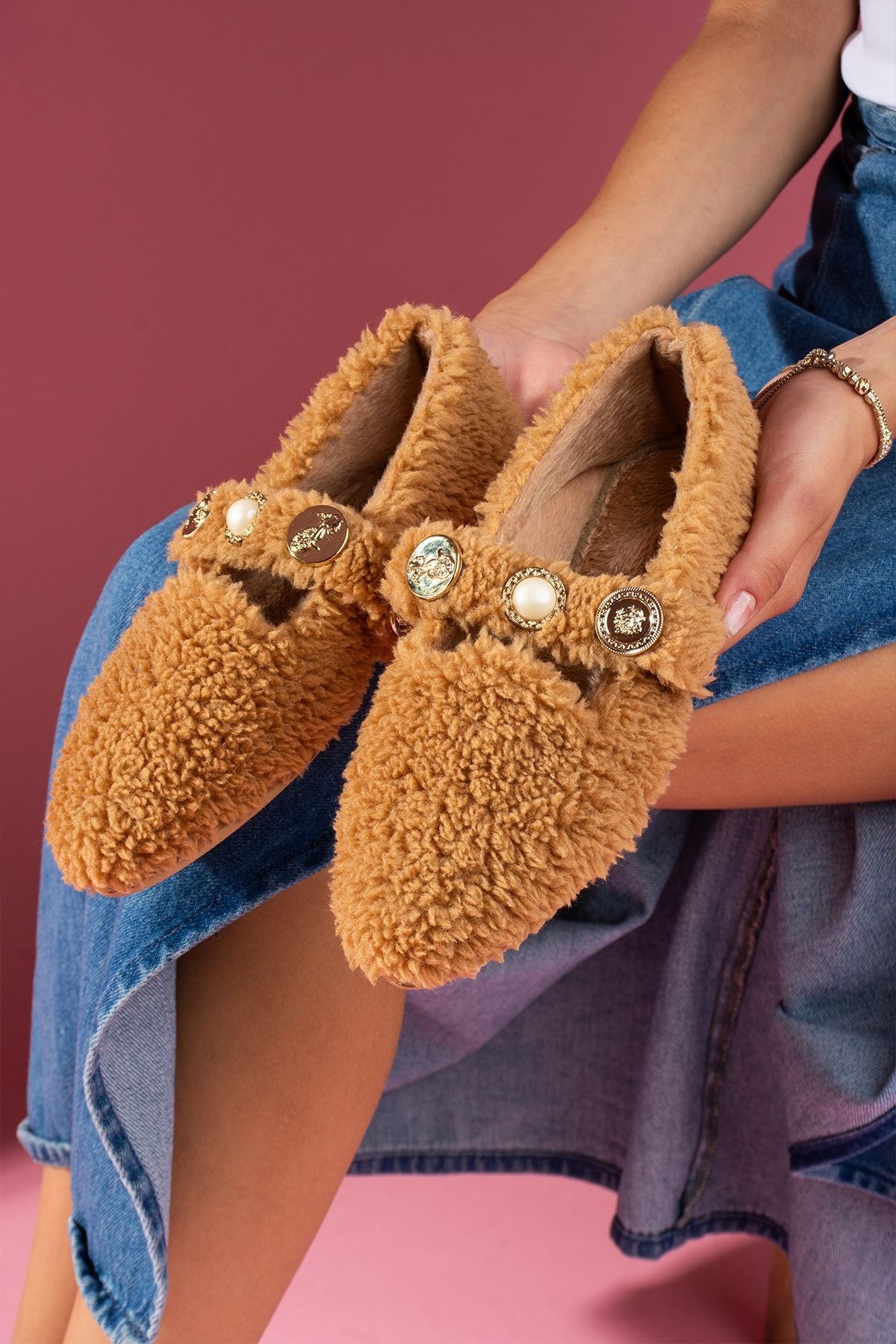 Valoria Vizon Havlu Dokulu İnci ve Mühür Aksesuarlı Kemerli Ev Babeti
